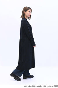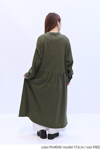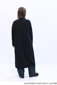 ゆったりとしたシルエットで体のラインを拾わず、リラックスした着心地。