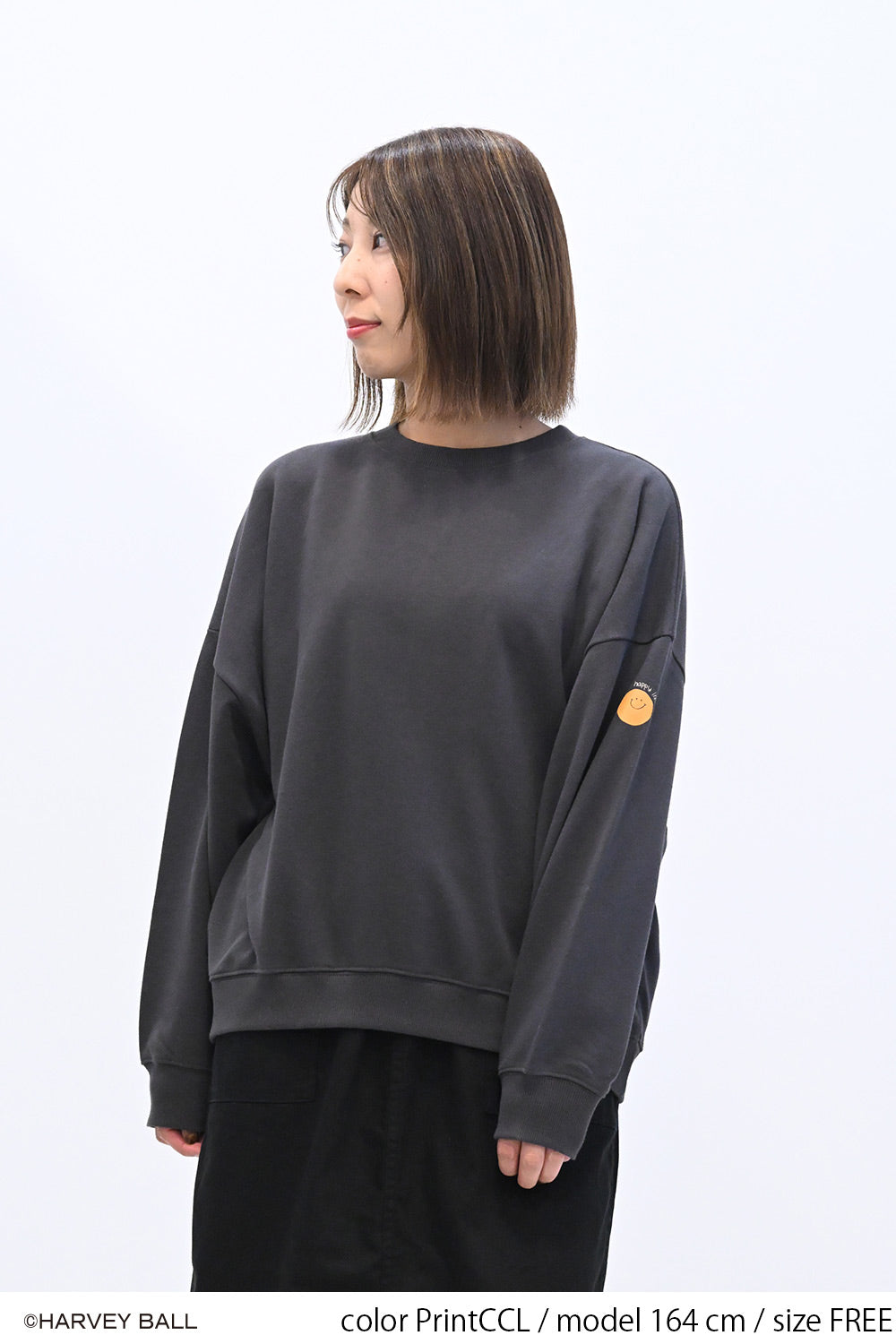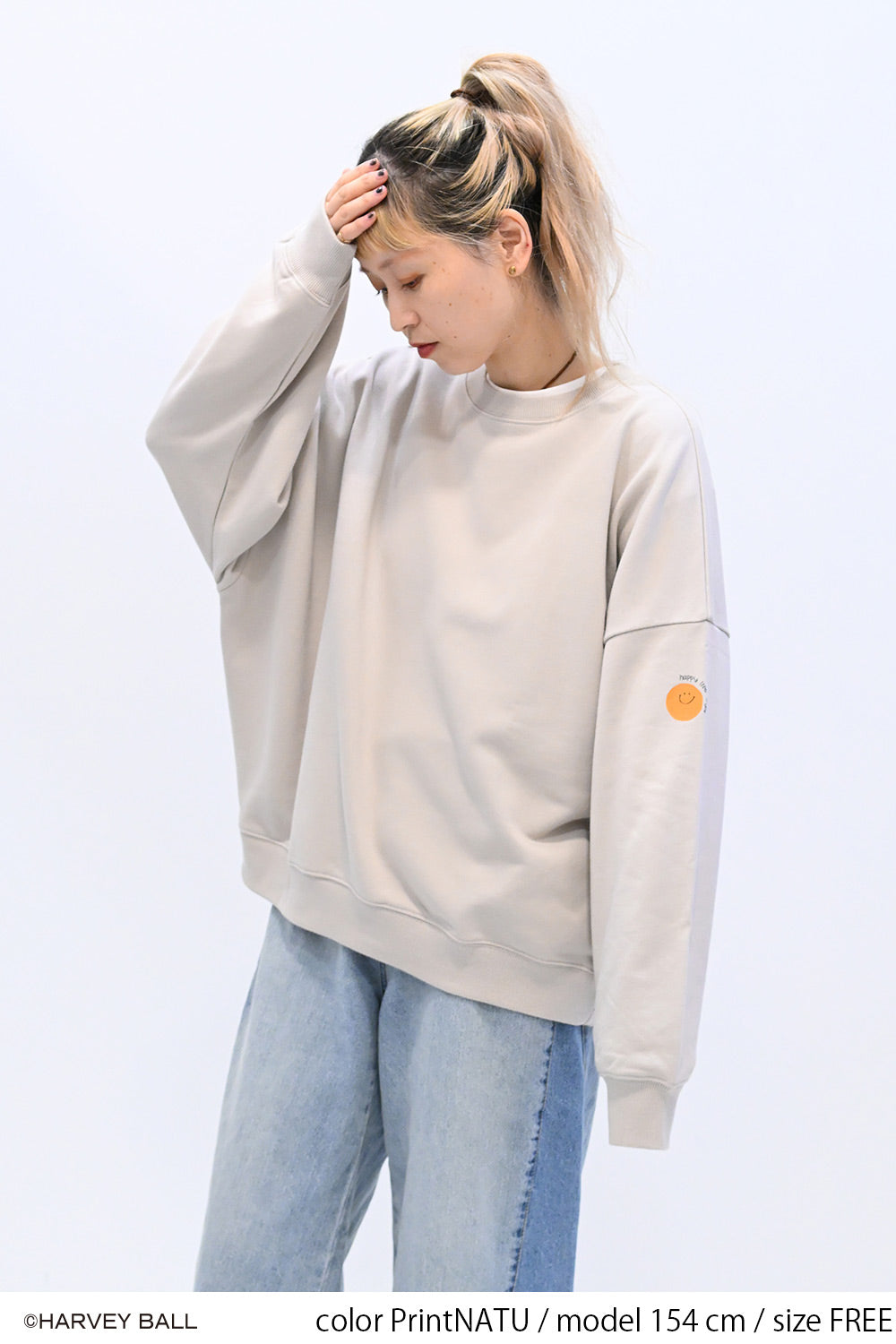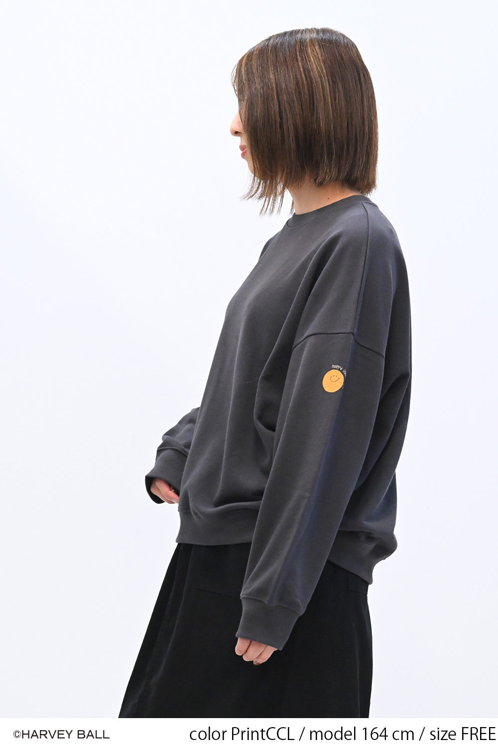 右肩後ろにあしらわれたステッカー風のスマイルデザインが、さりげなく目を惹くポイントに。