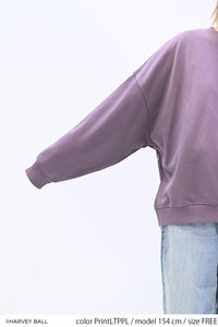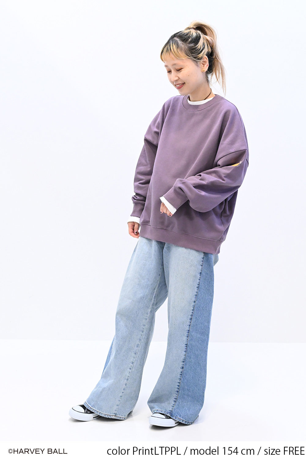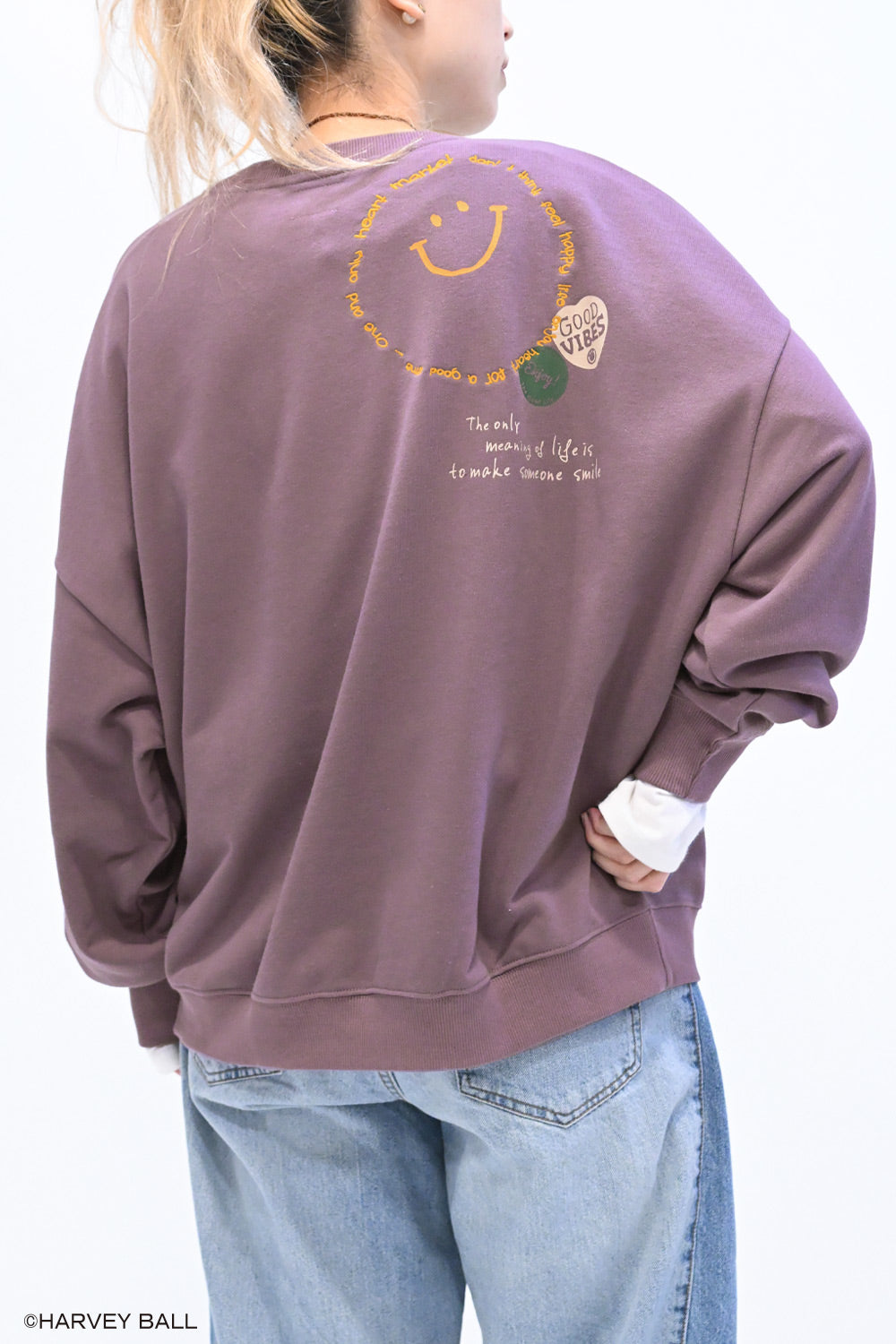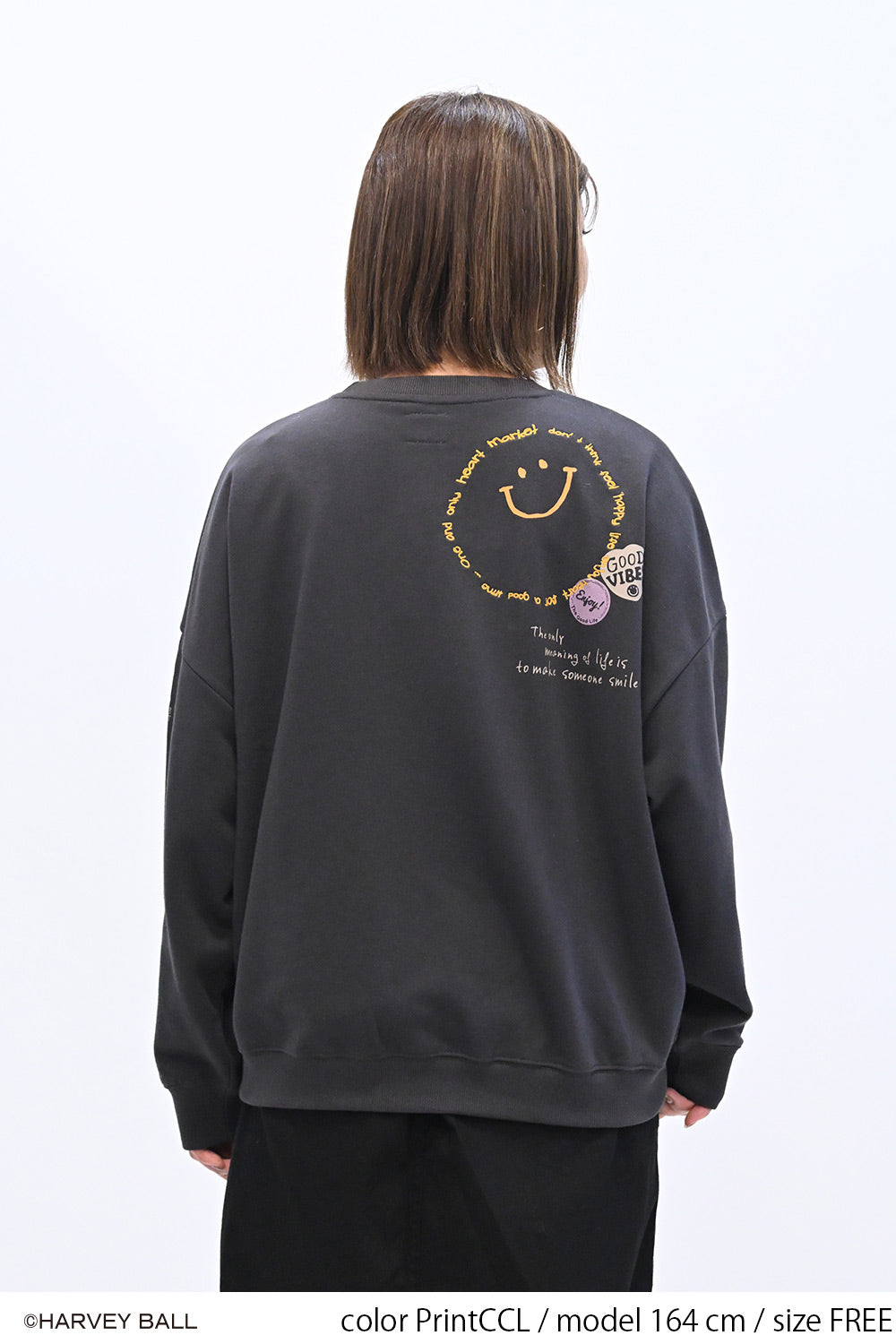 右肩後ろにあしらわれたステッカー風のスマイルデザインが、さりげなく目を惹くポイントに。