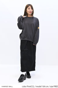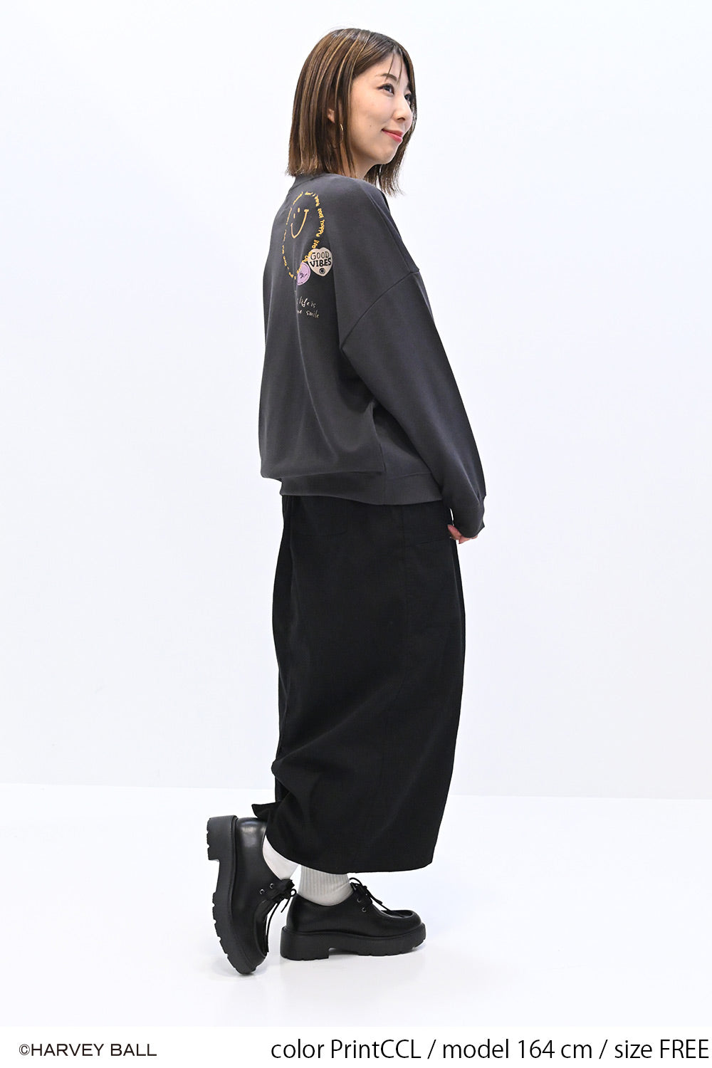 落ち着いたアースカラーで仕上げることで、ポップなモチーフながらも大人カジュアルに馴染む一枚に仕上げました。