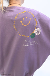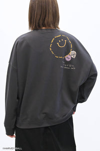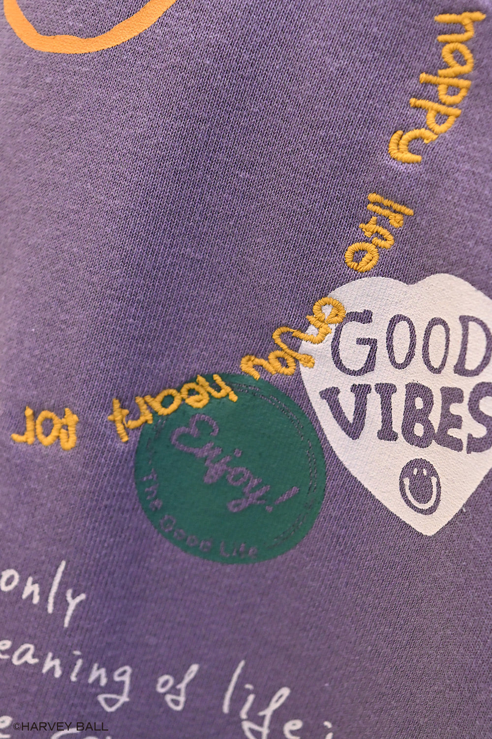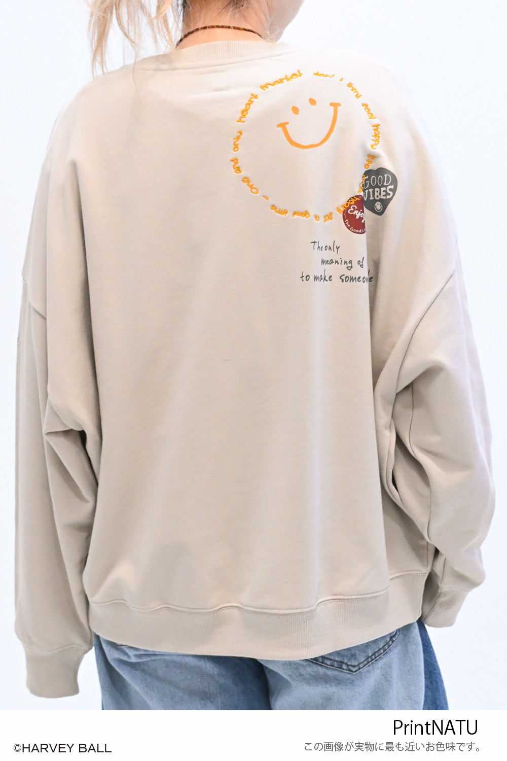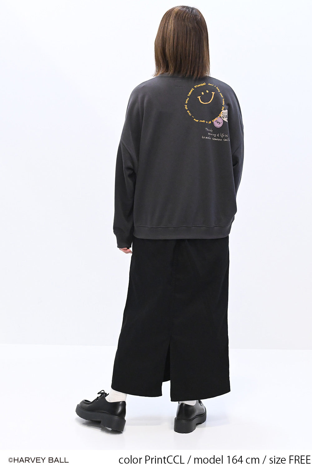 可愛いスマイルの刺繍とプリントが後ろ姿に遊び心を添えてくれます。