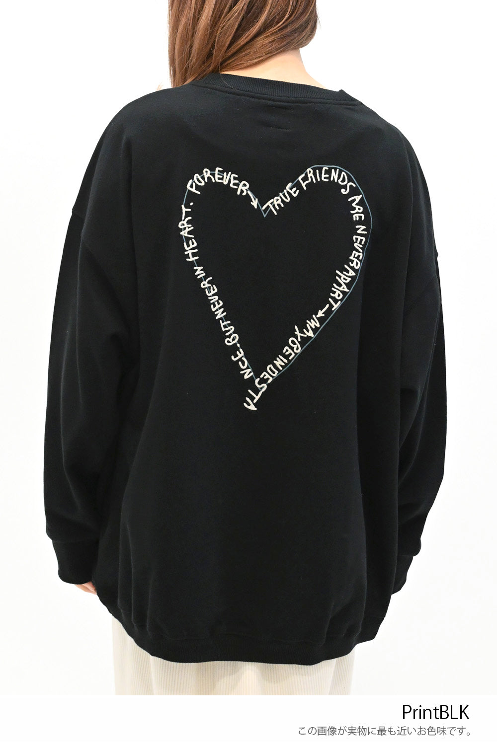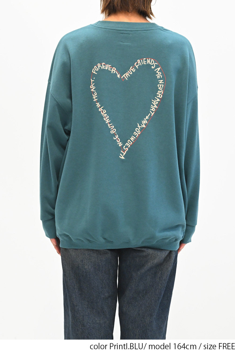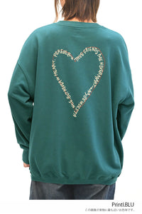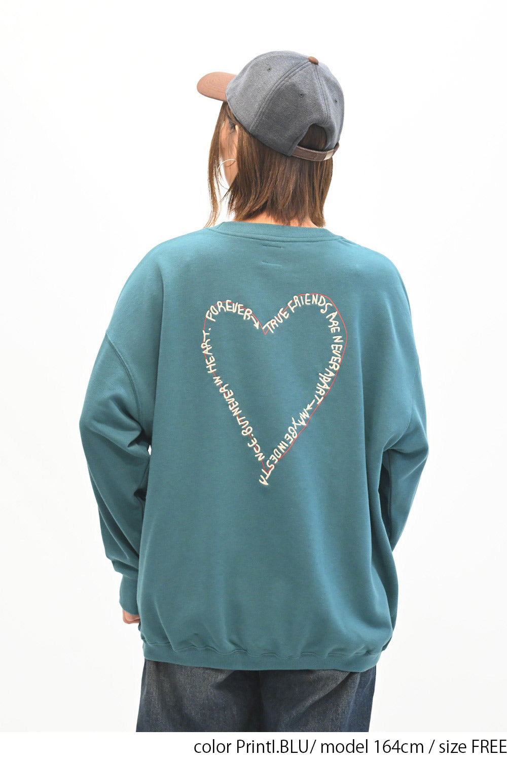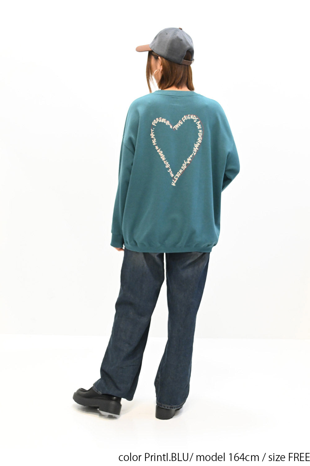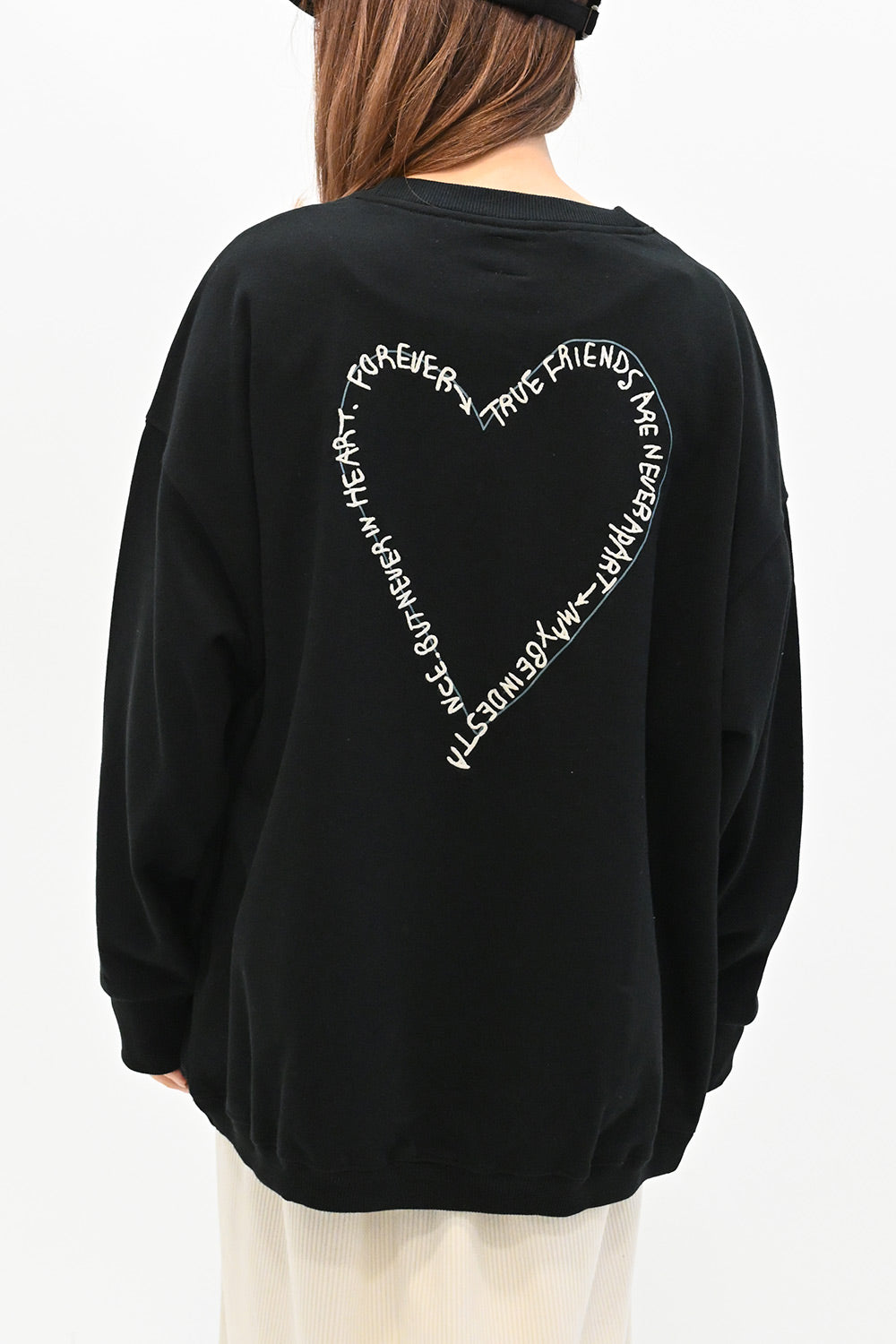 背中に大きく施されたハート刺繍が目を引くトレーナー。