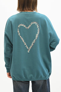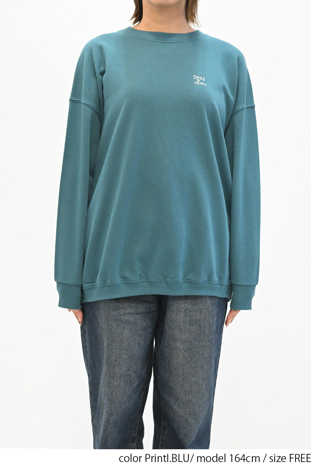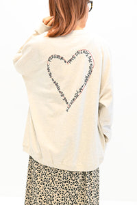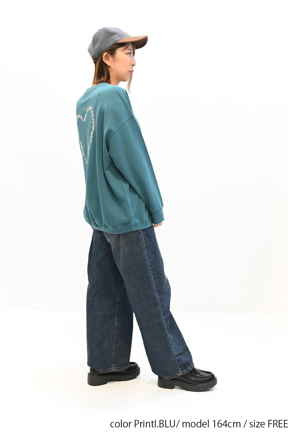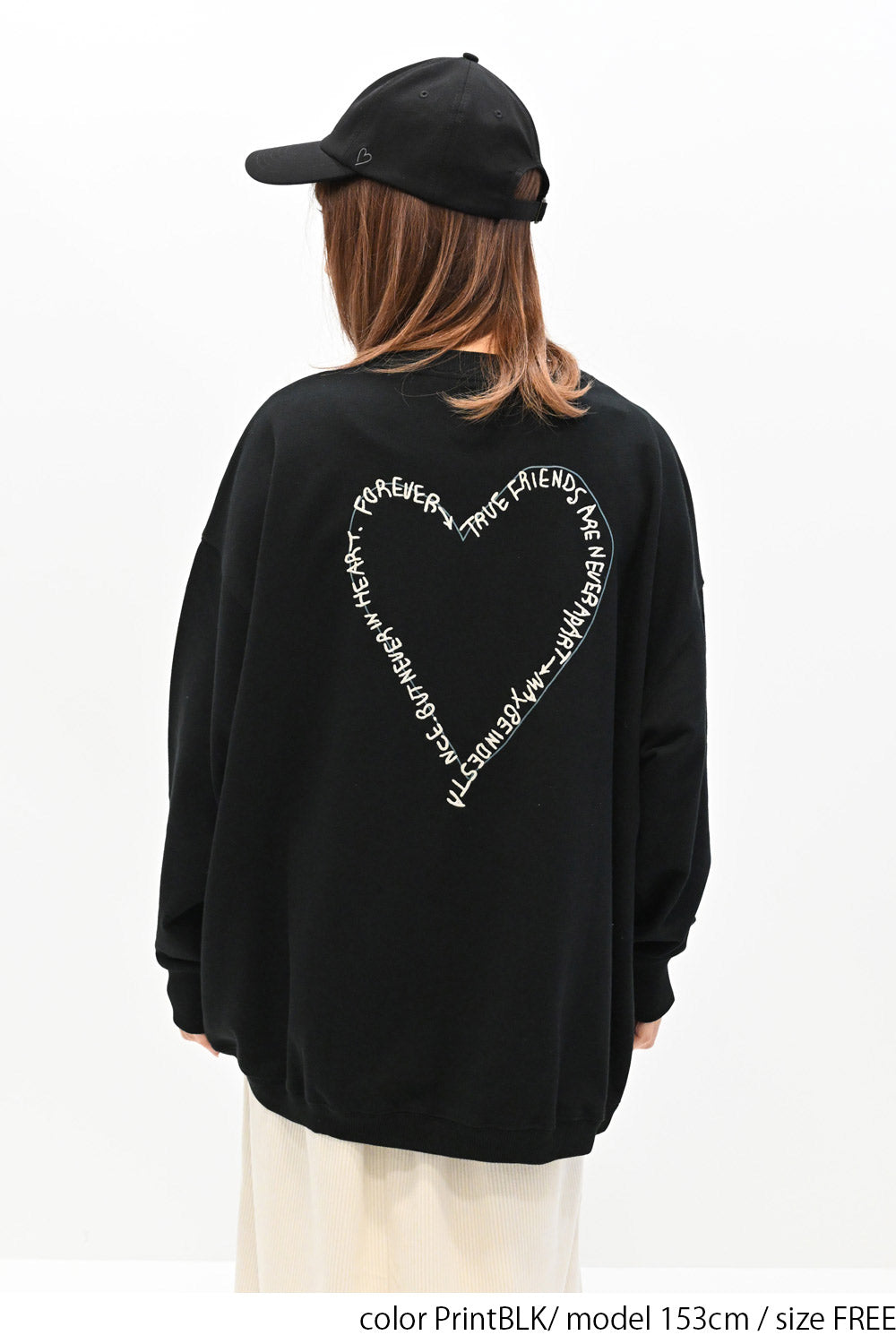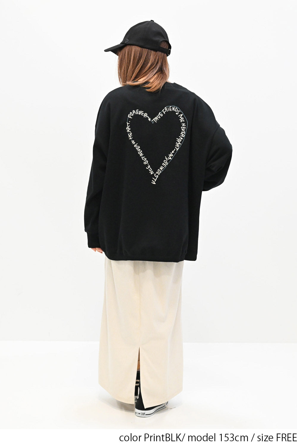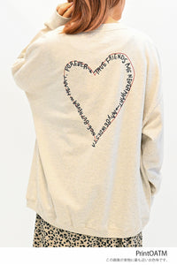 背中に大きく施されたハート刺繍が目を引くトレーナー。