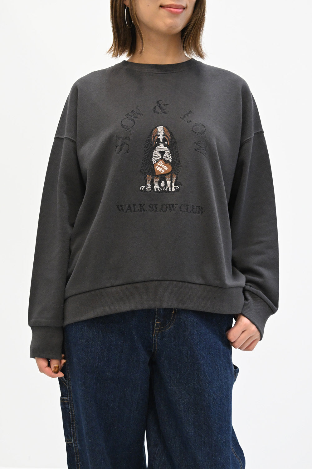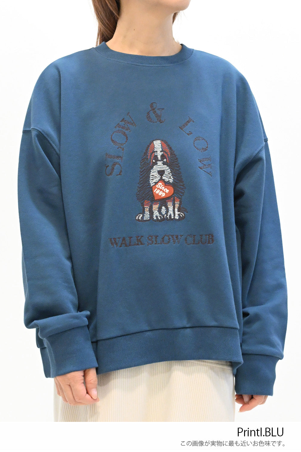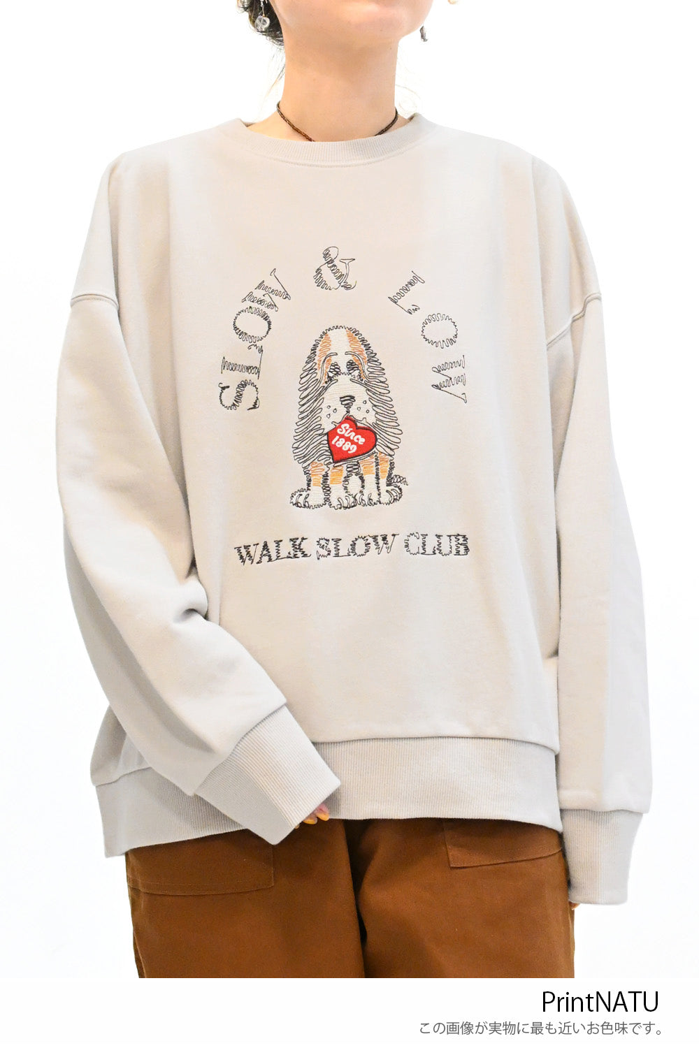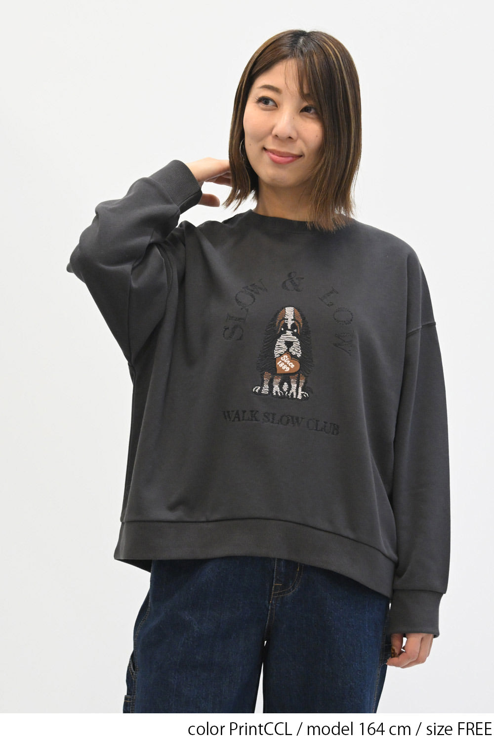 バセットハウンドの刺繍がフロントに施された、愛らしいトレーナー。