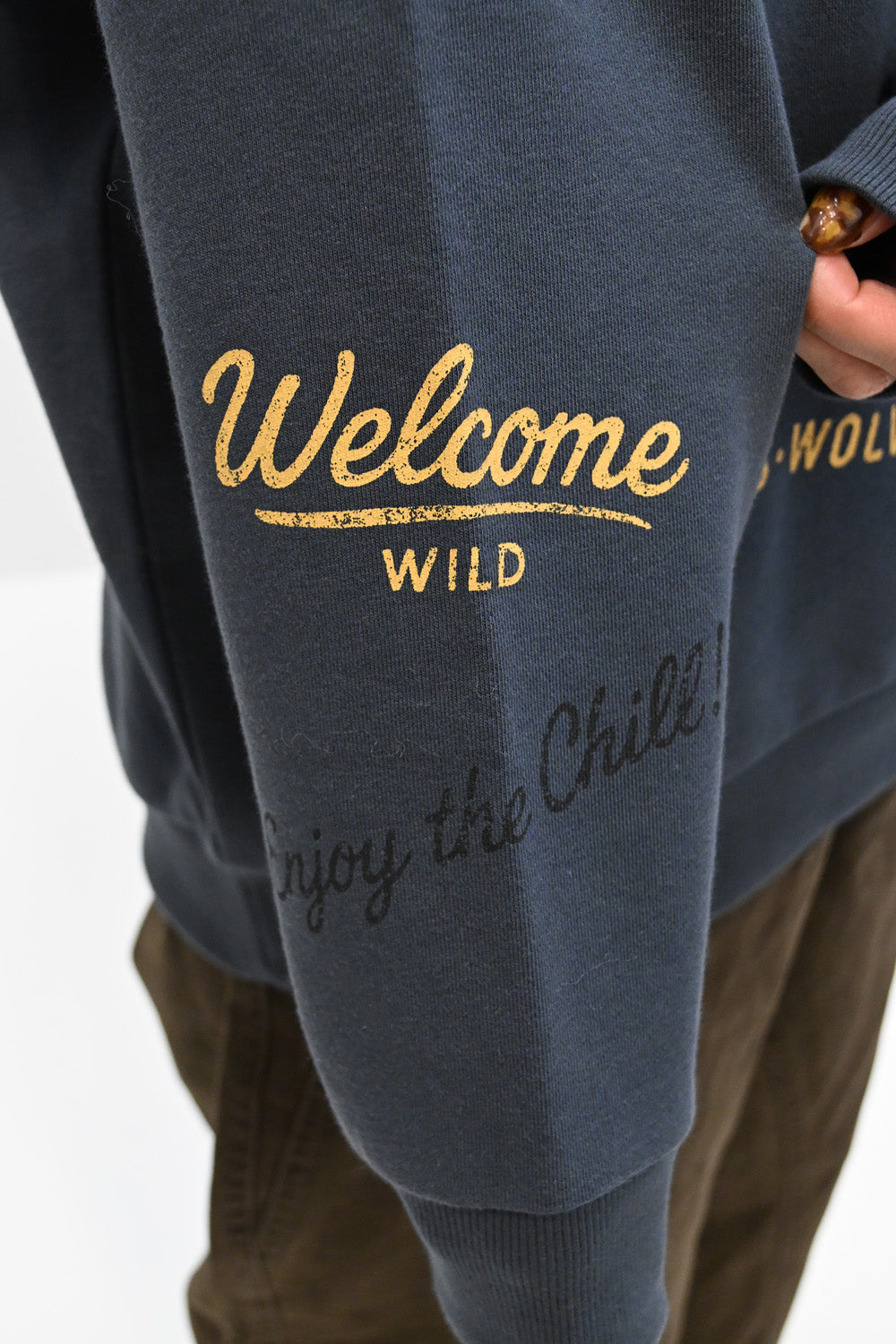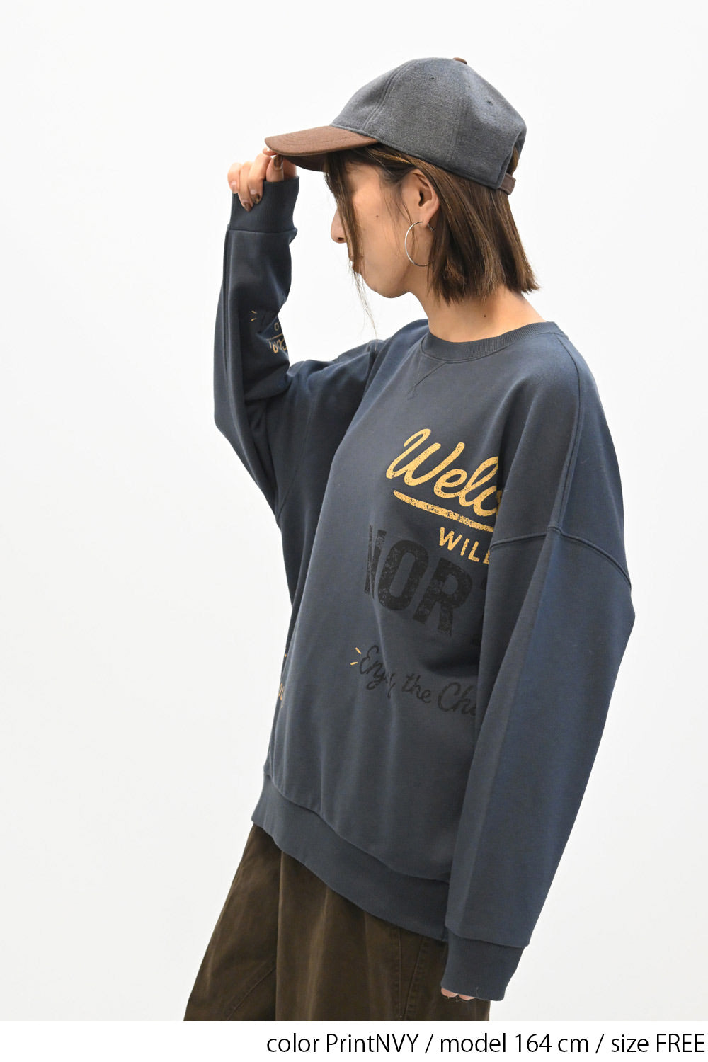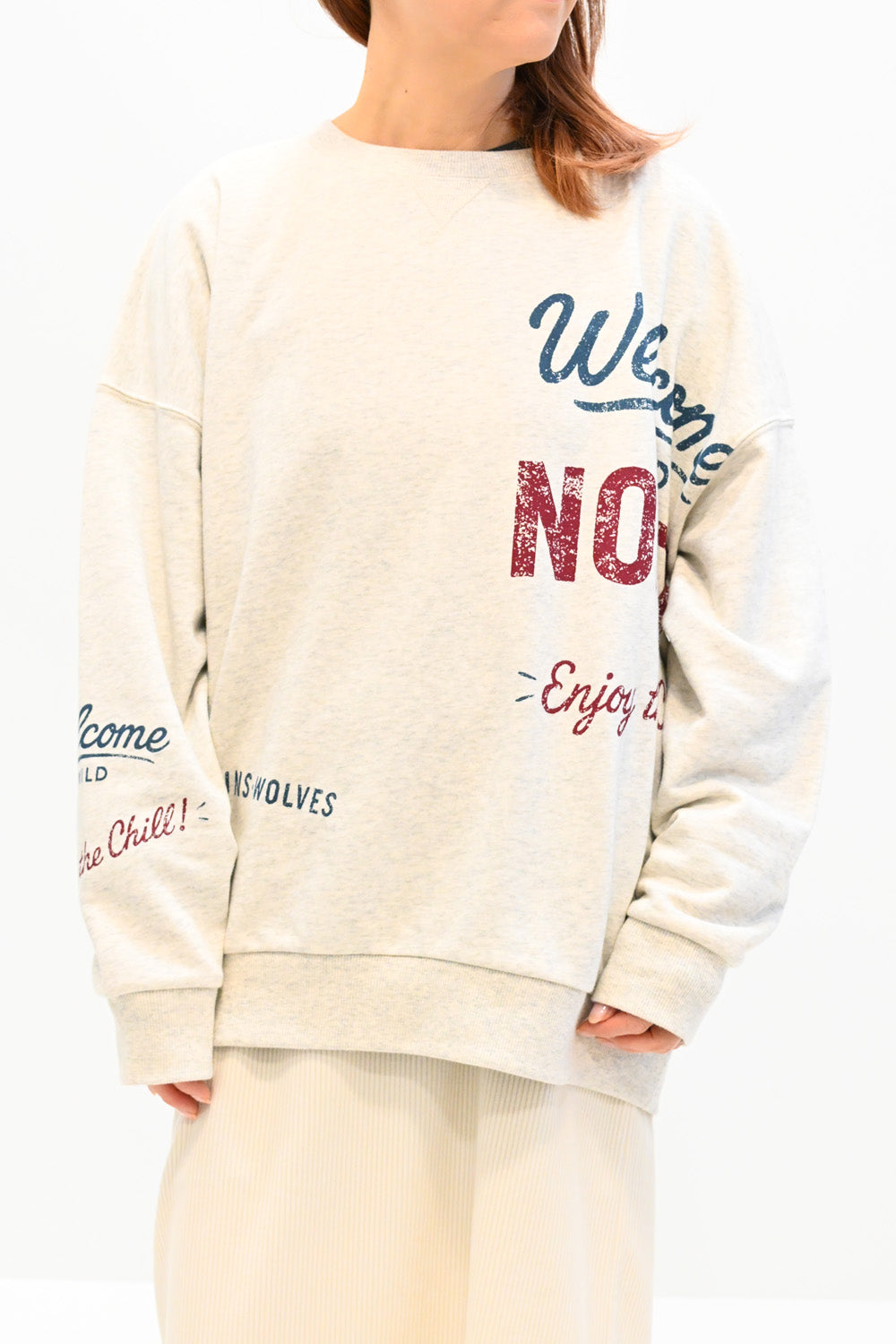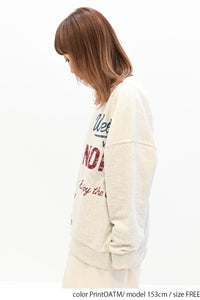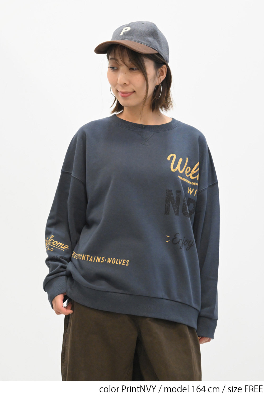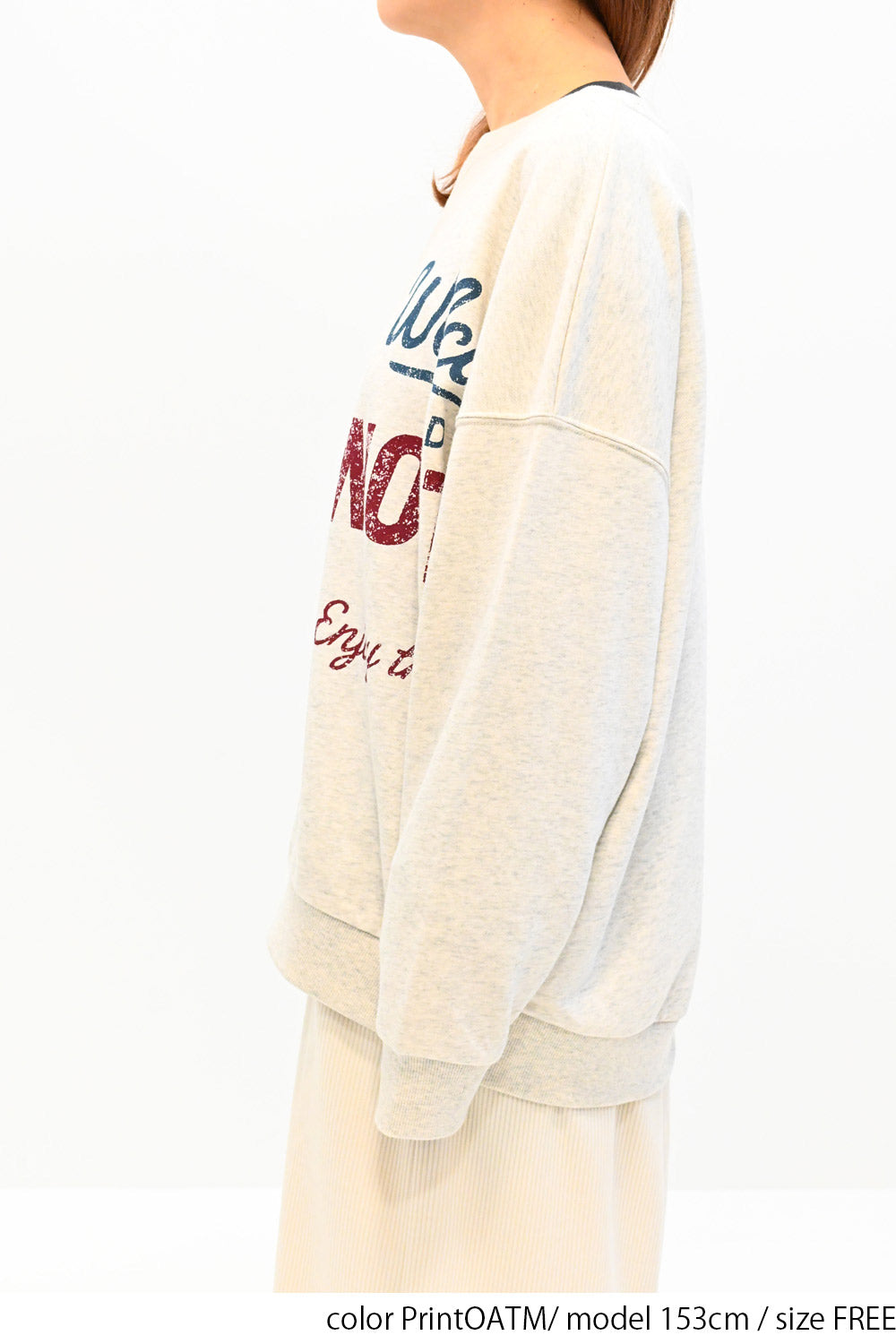かすれたロゴプリントが古着のようなこなれ感を醸し出すデザイン。