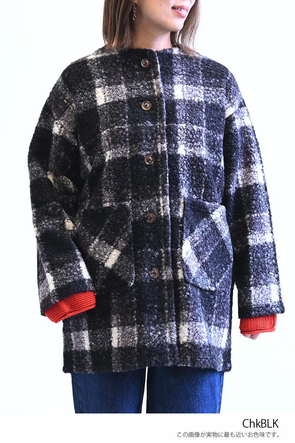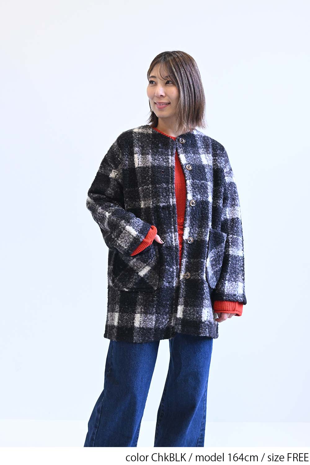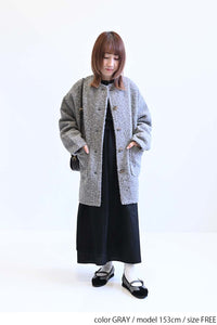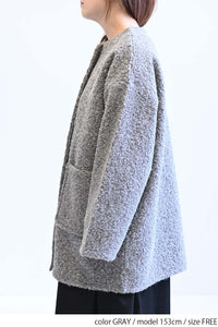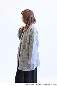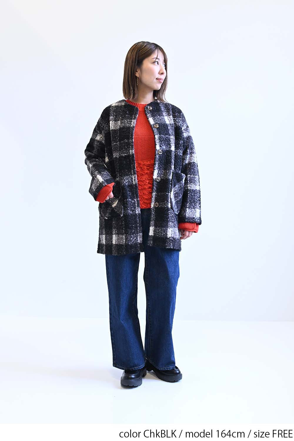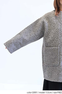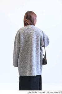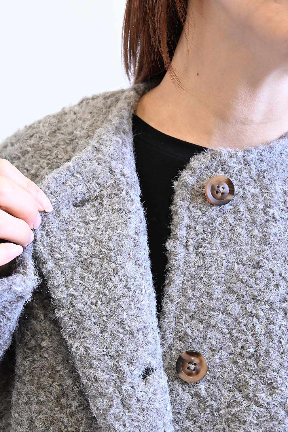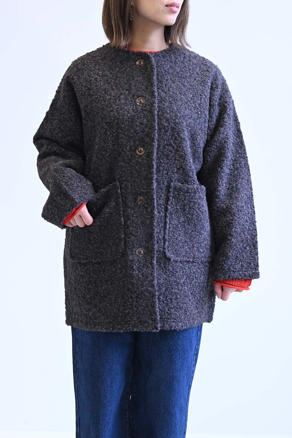 起毛感のあるウールライク素材を使用したノーカラーコートです。