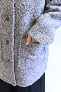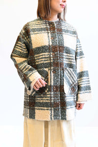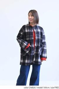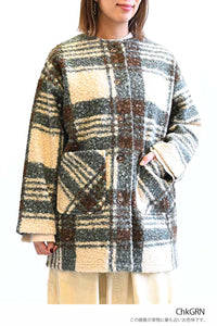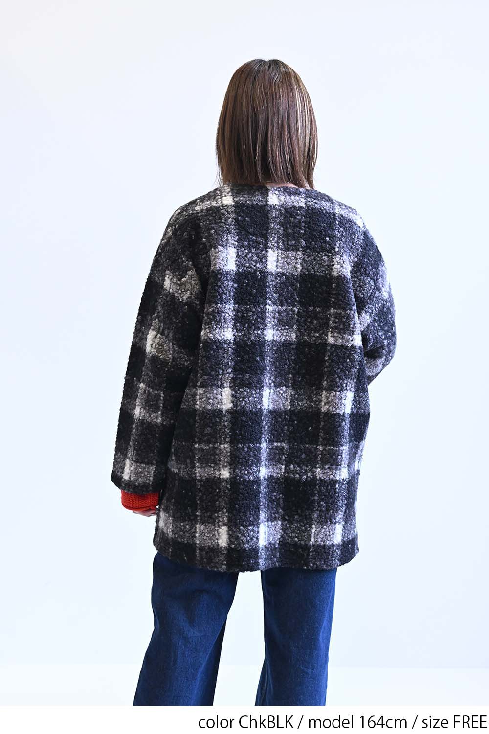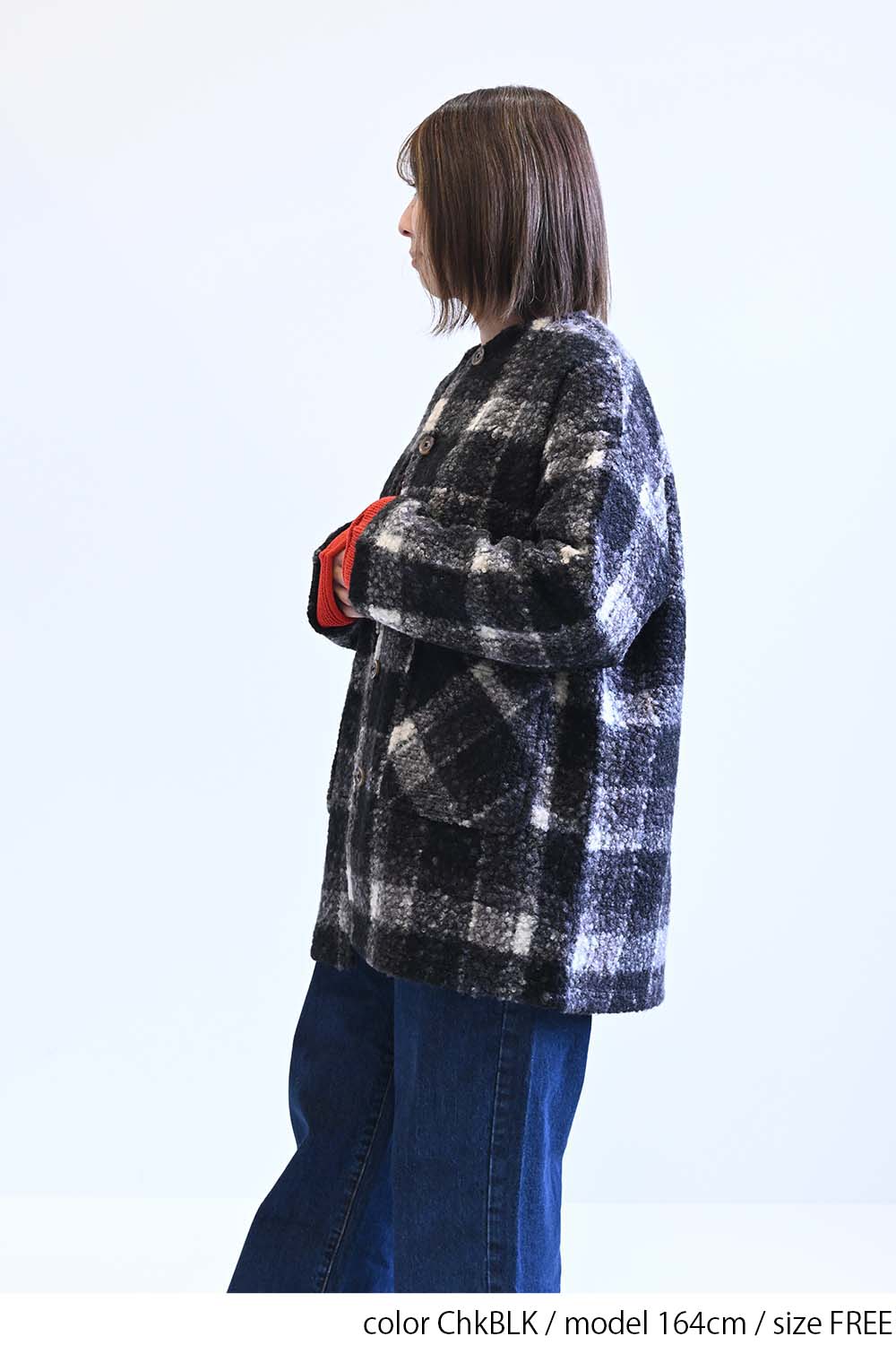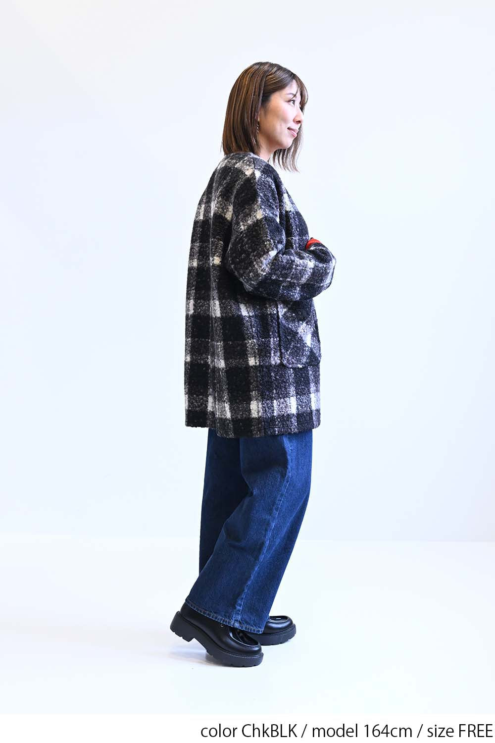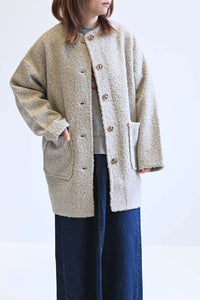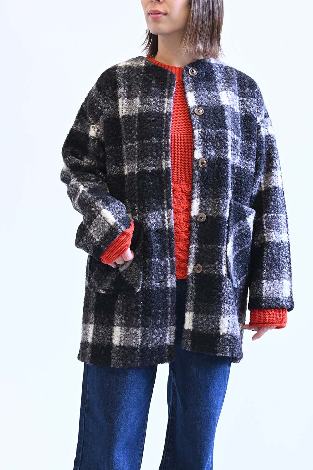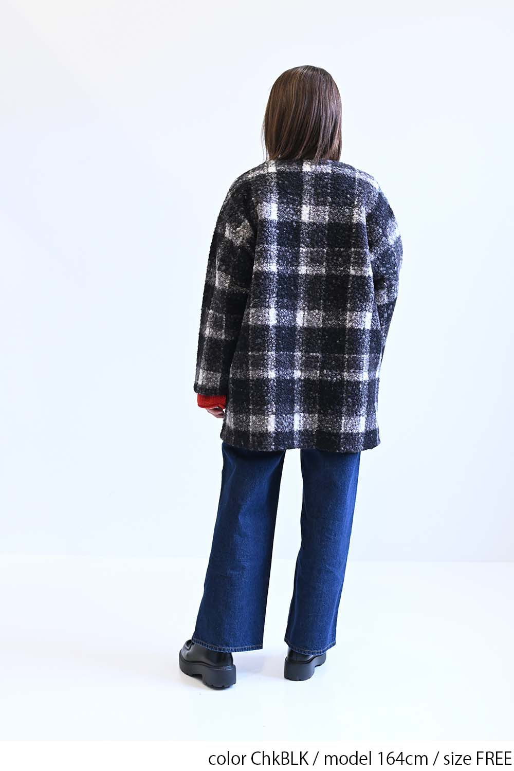 起毛感のあるウールライク素材を使用したノーカラーコートです。