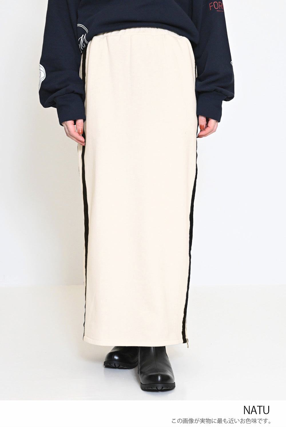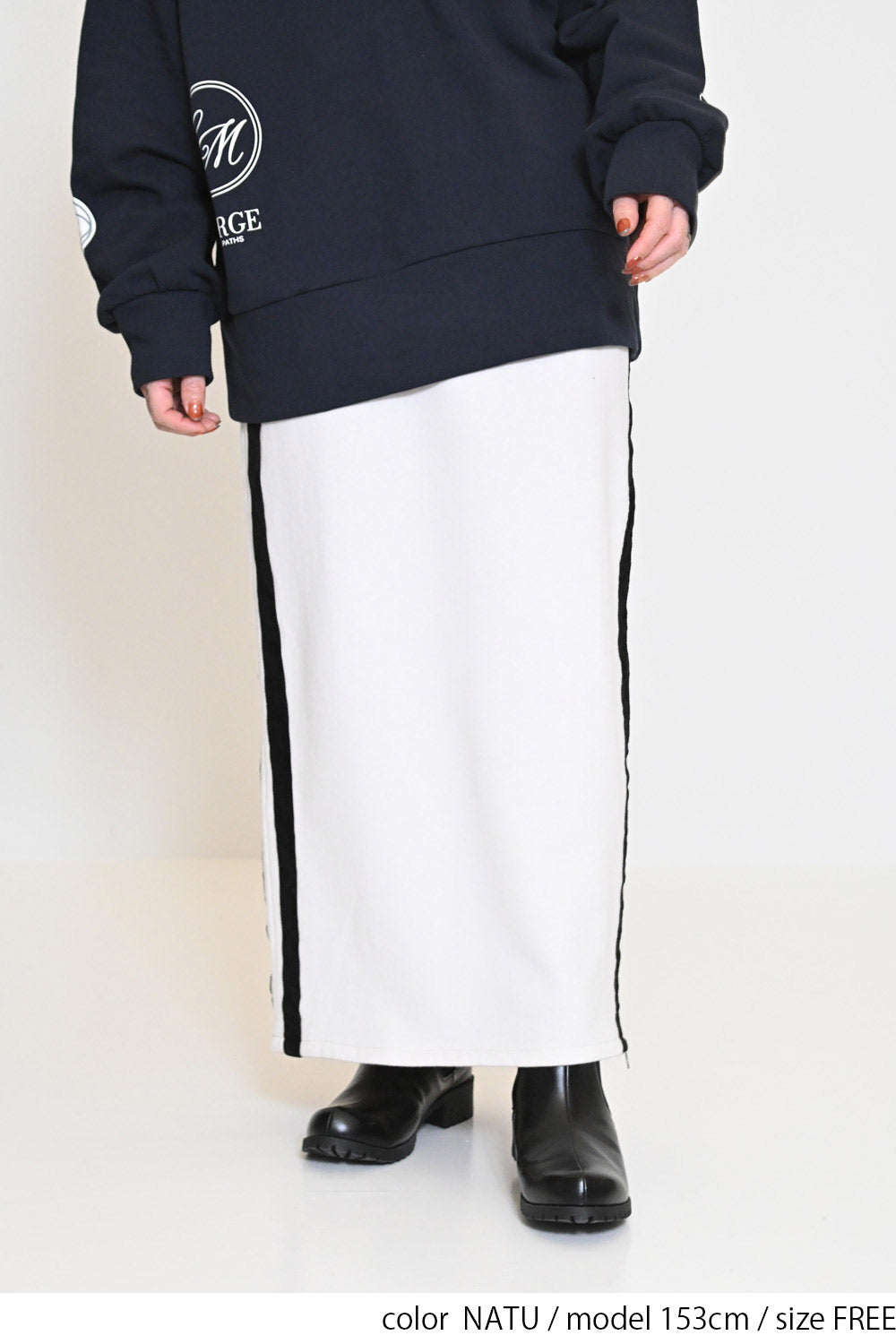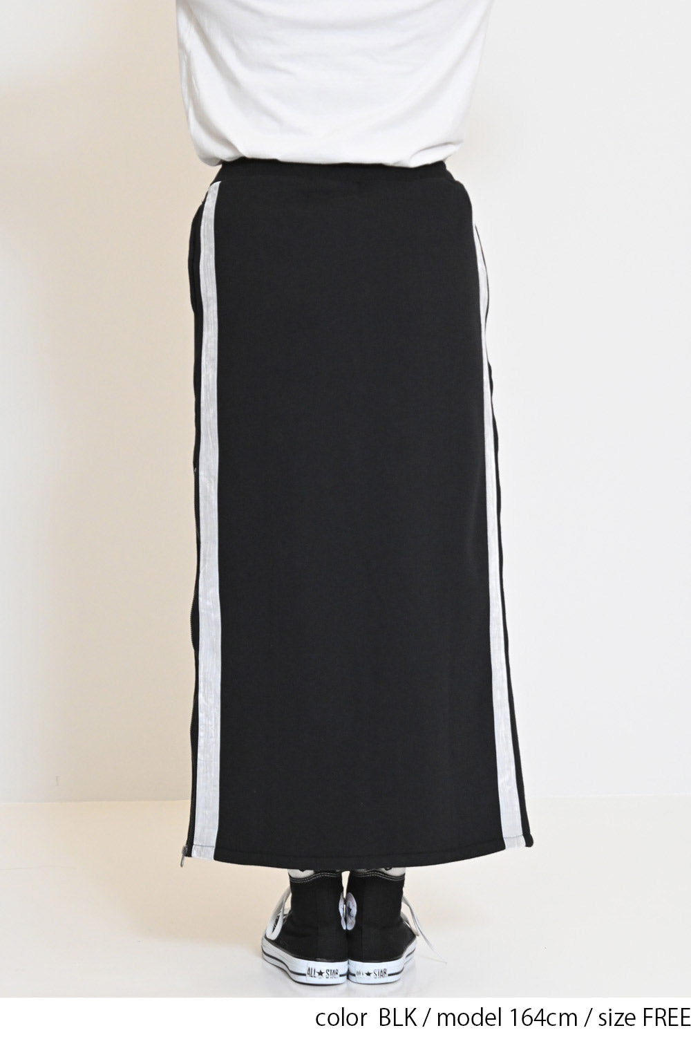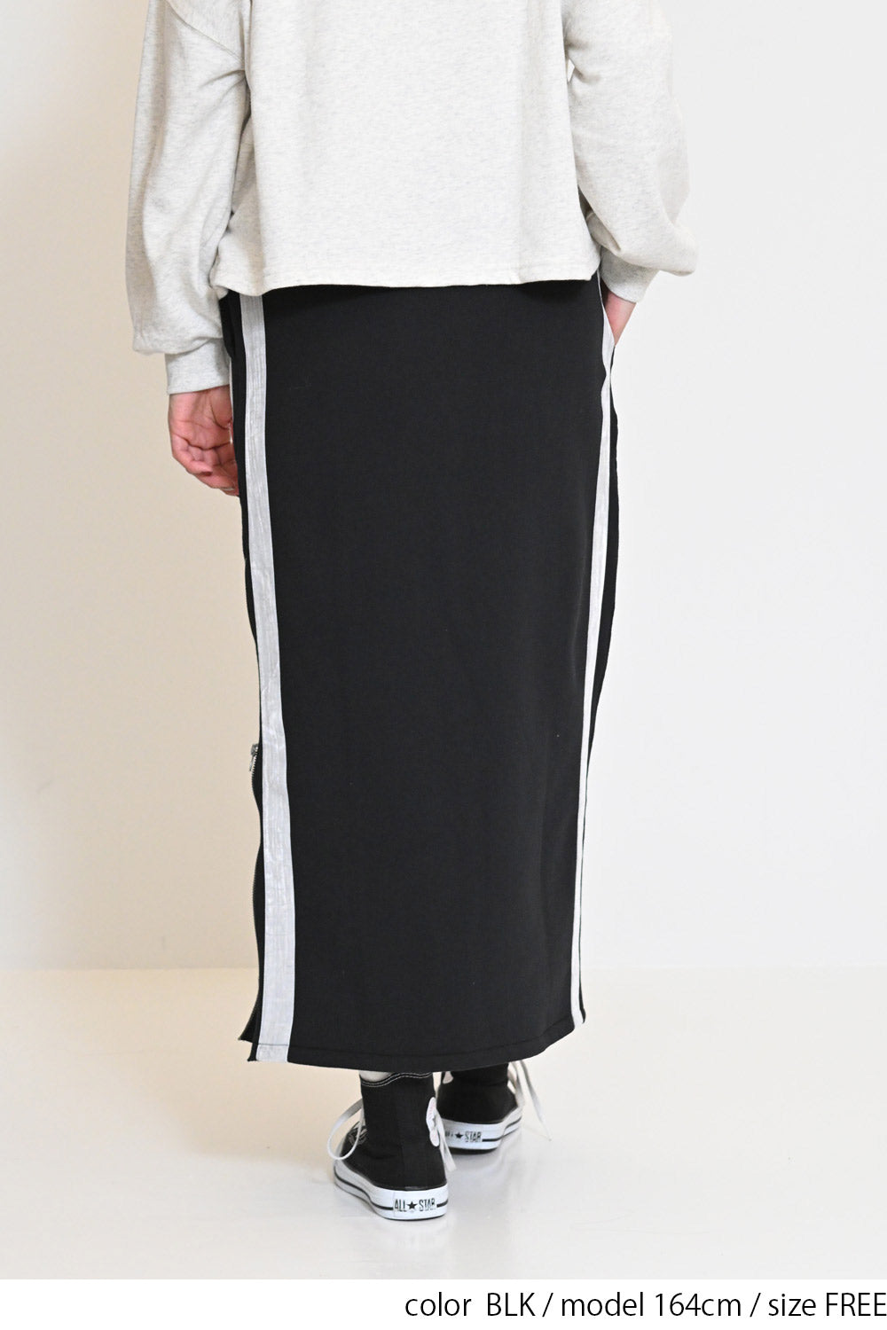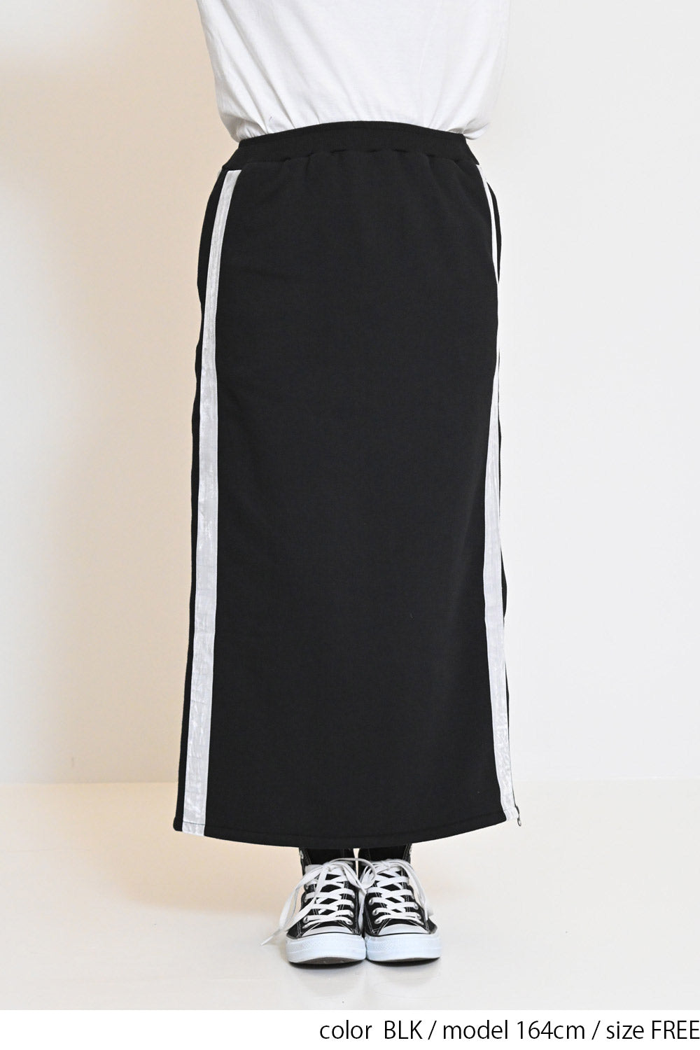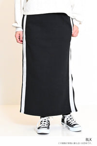 両脇にベルベットテープのラインが入ったトラック風のナロースカートです。