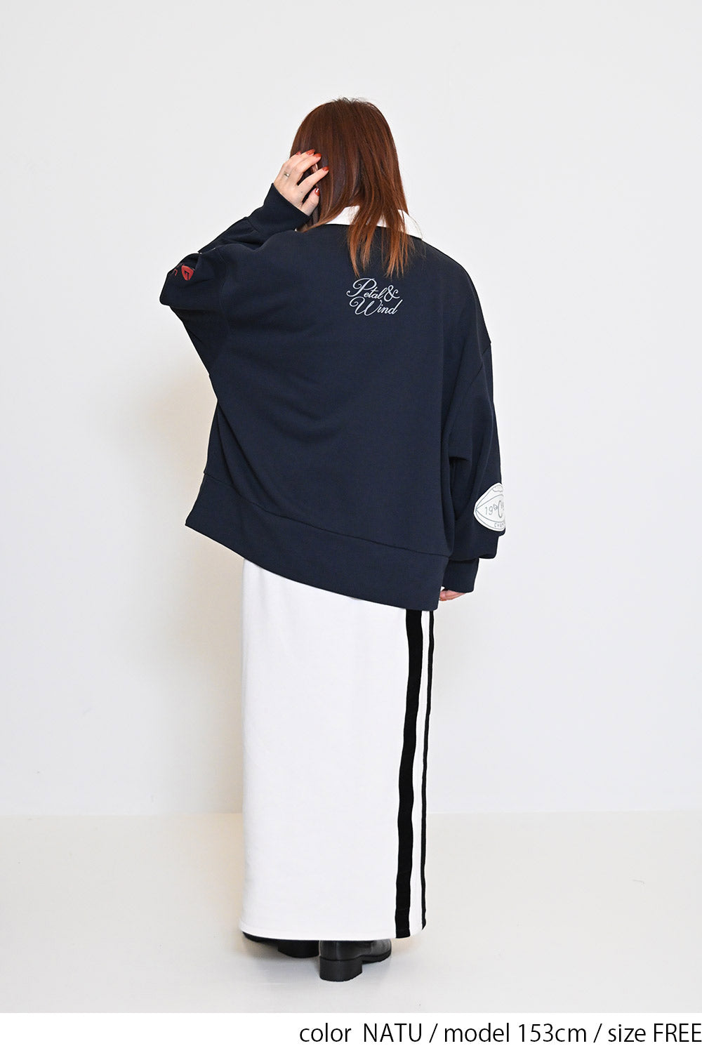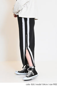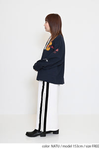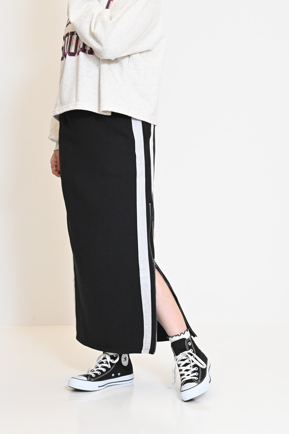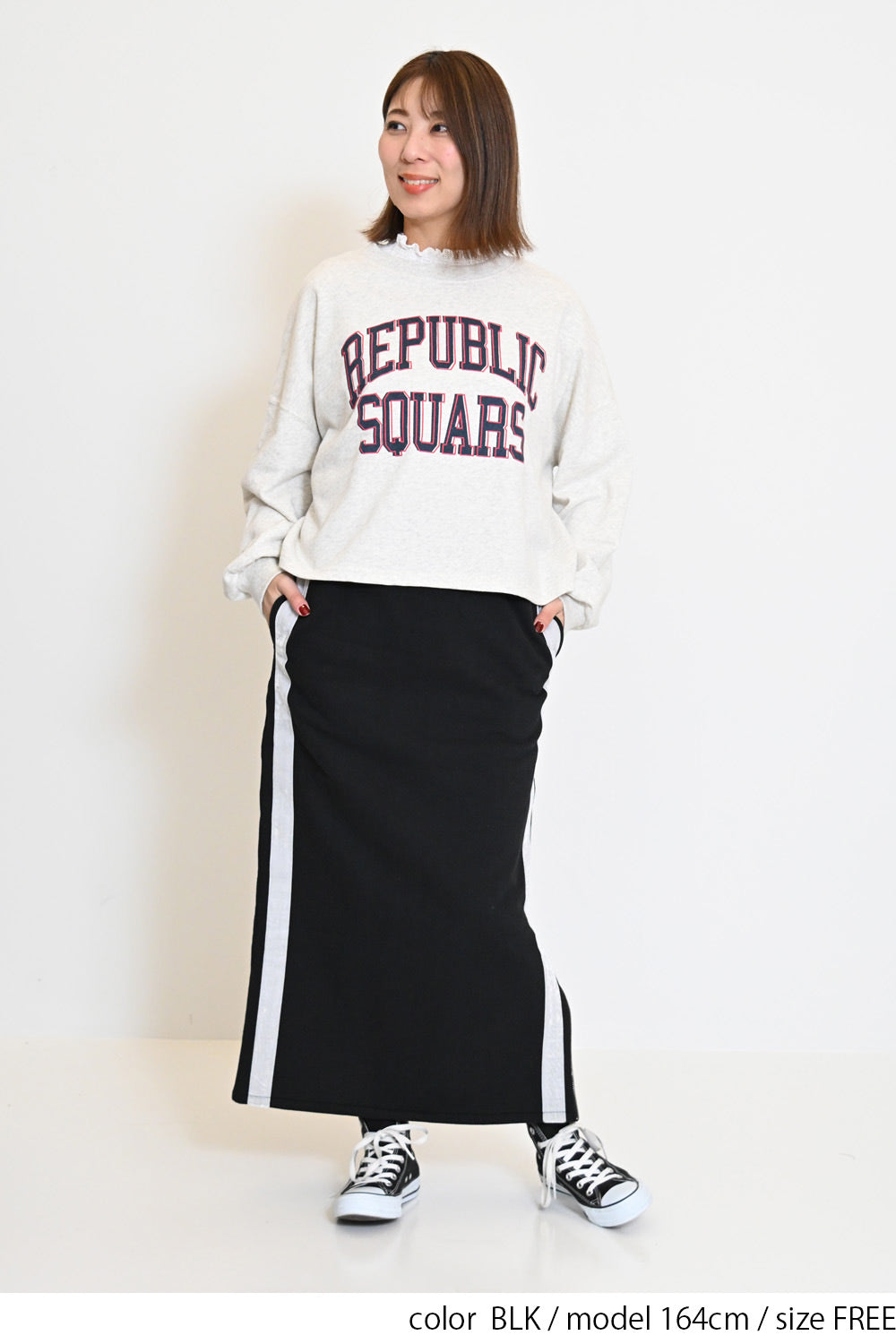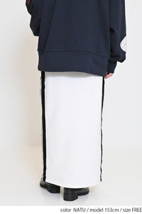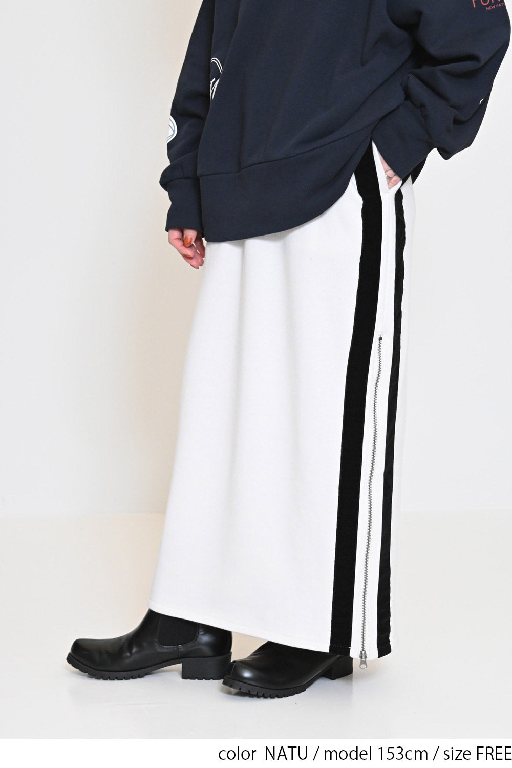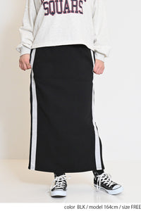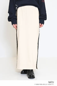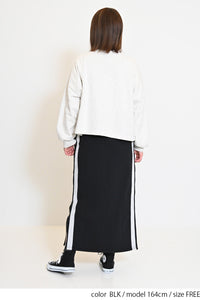両脇にベルベットテープのラインが入ったトラック風のナロースカートです。