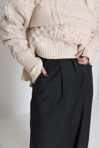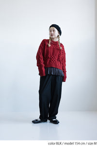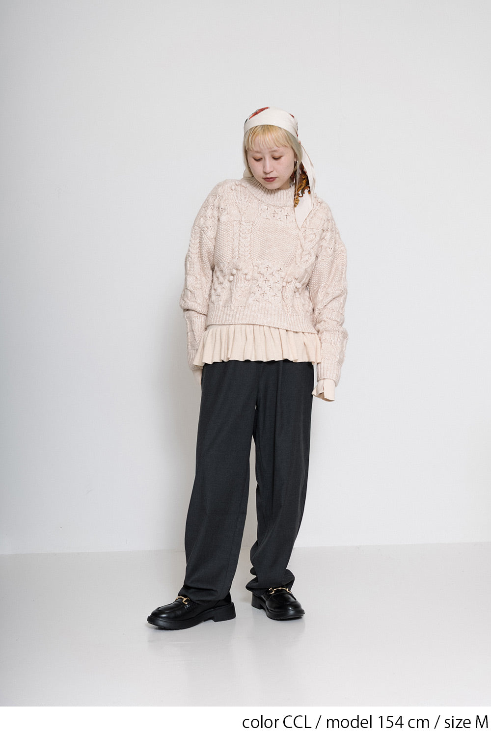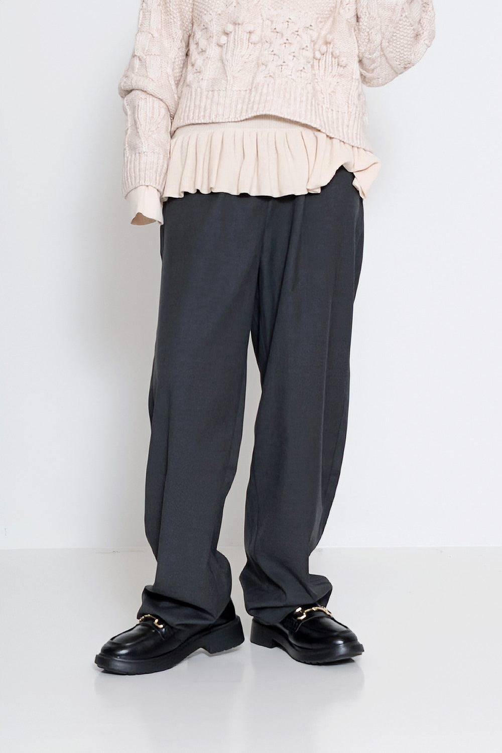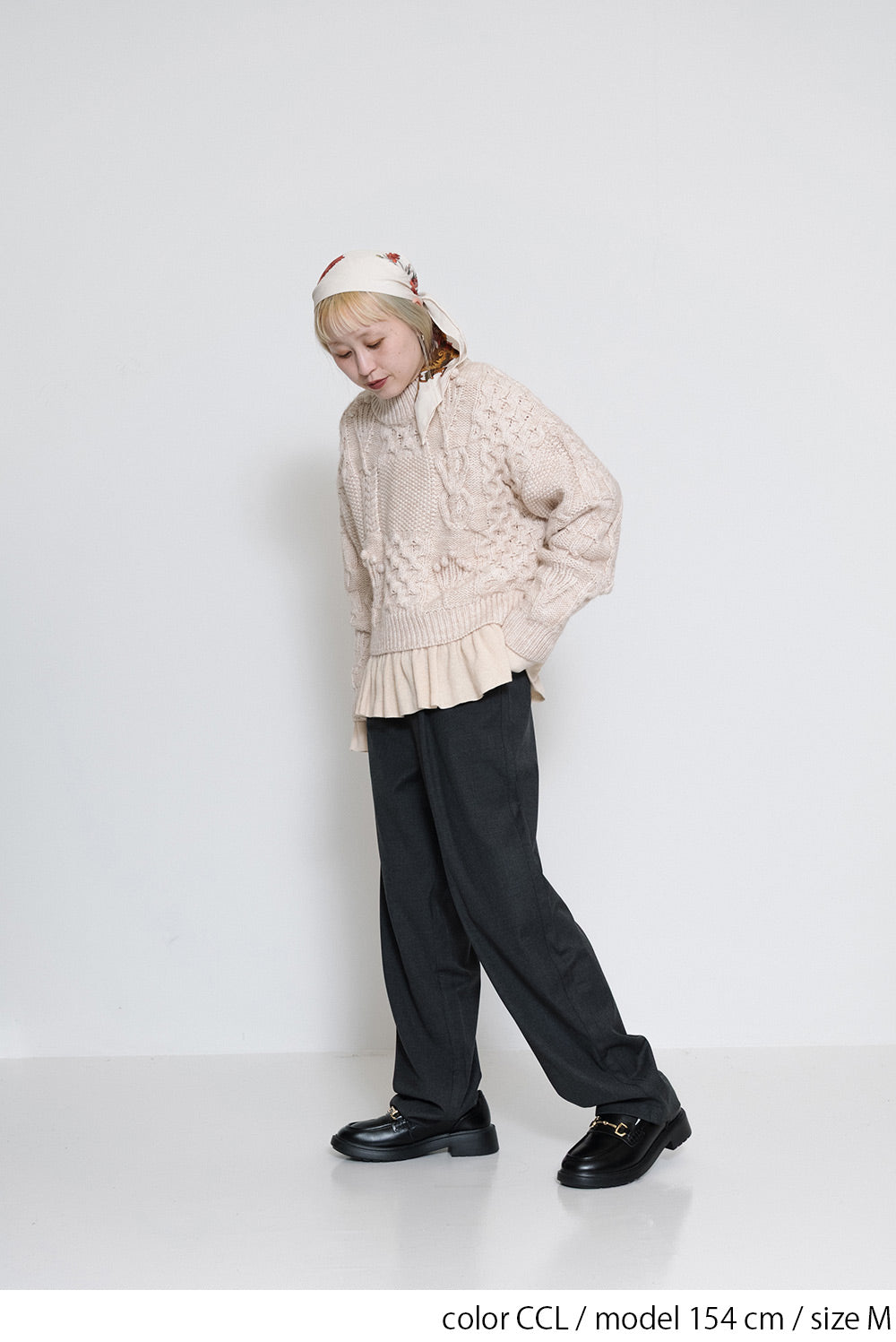 ジャケットを羽織っても、フォーマルになりすぎず、コクーンシルエットがこなれた印象に仕上げます。