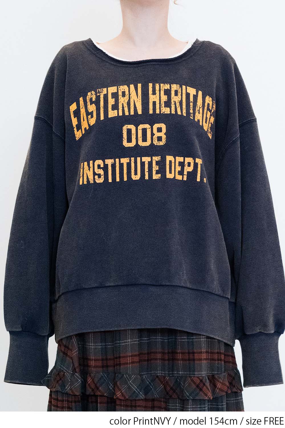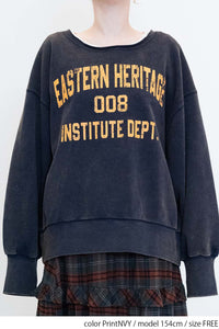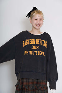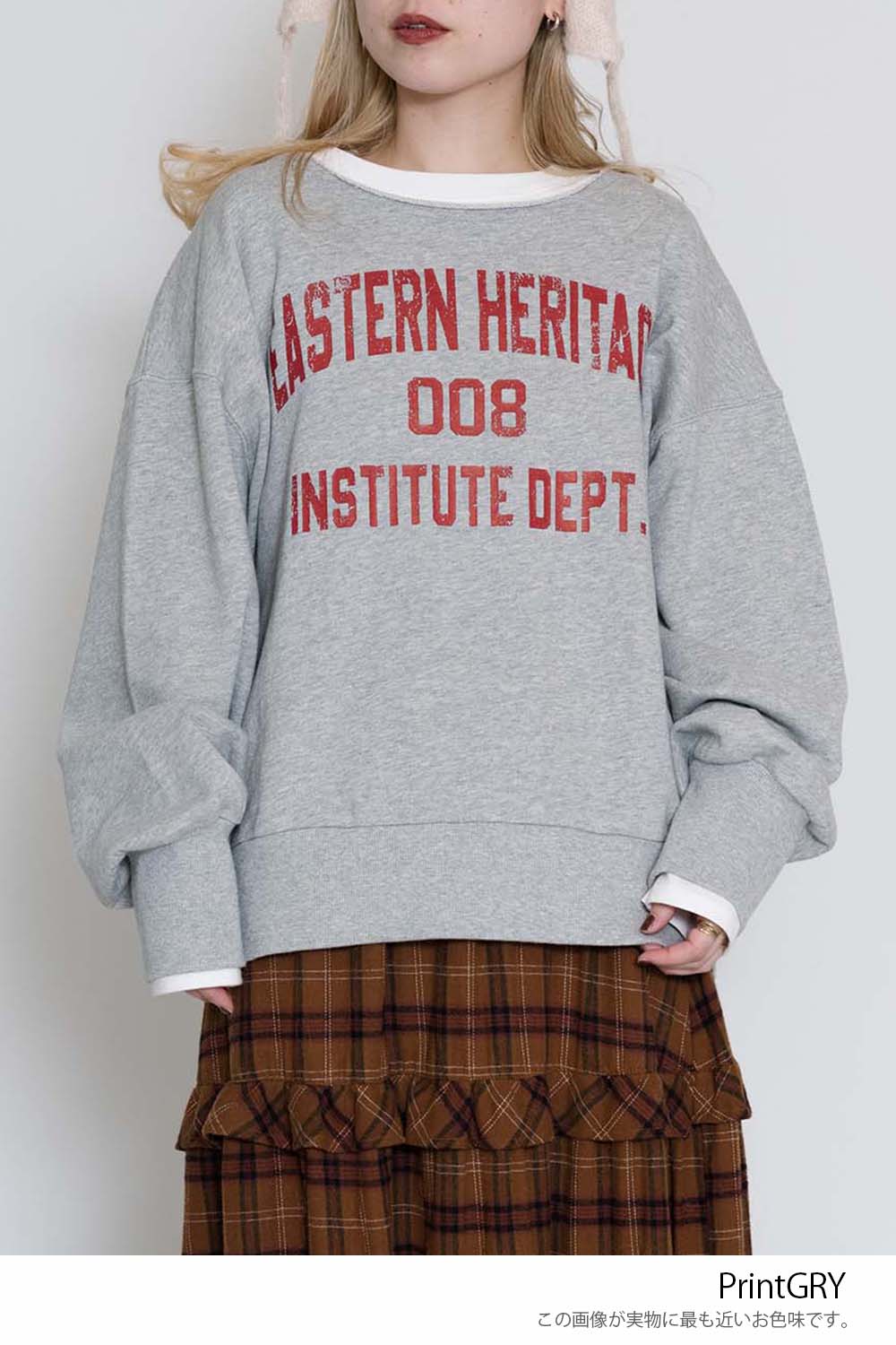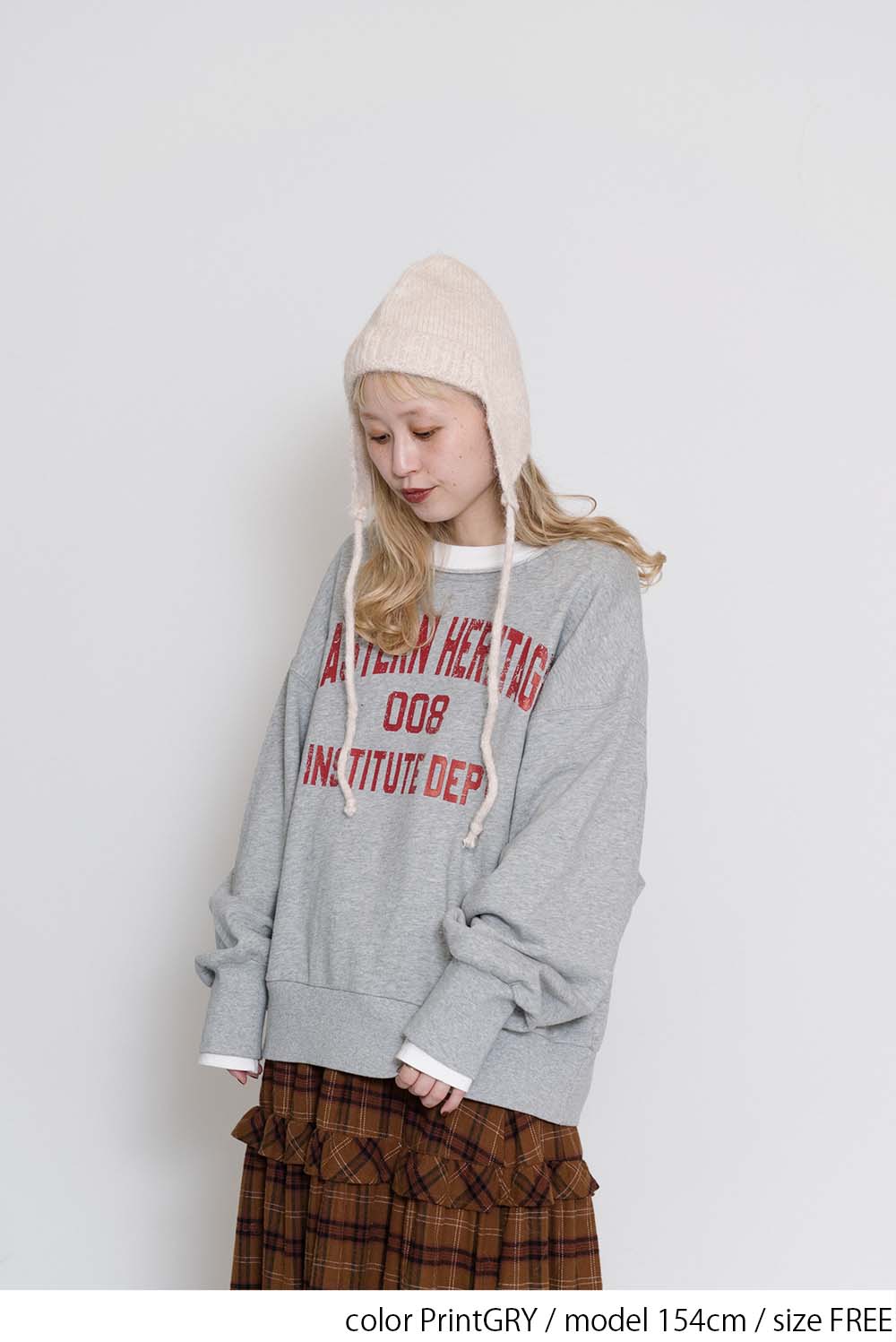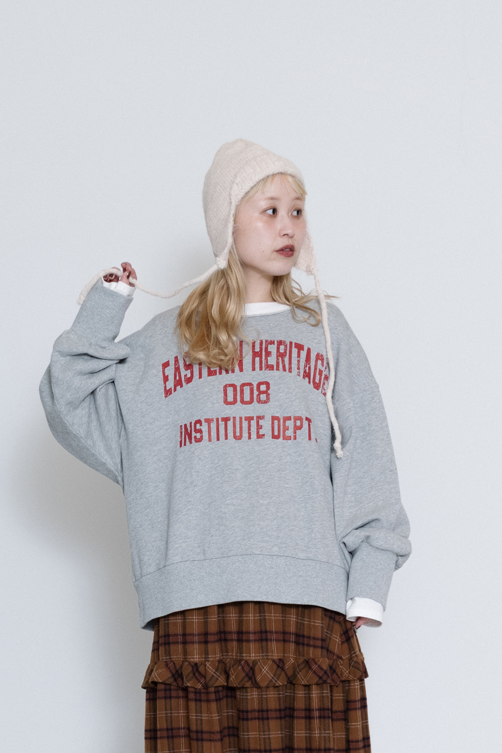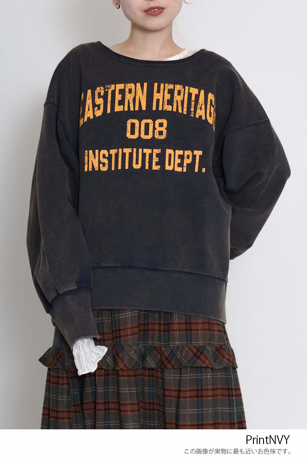 ヴィンテージライクな風合いがこなれ感を演出するカレッジロゴトレーナー。
