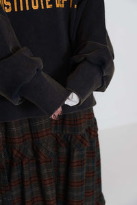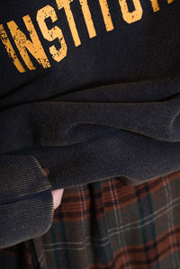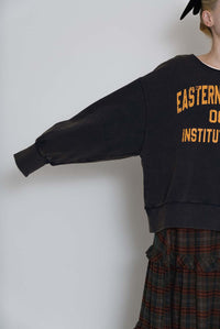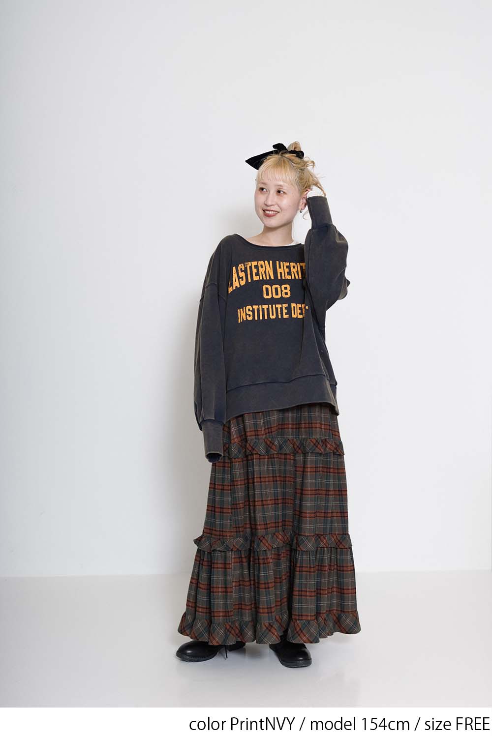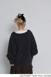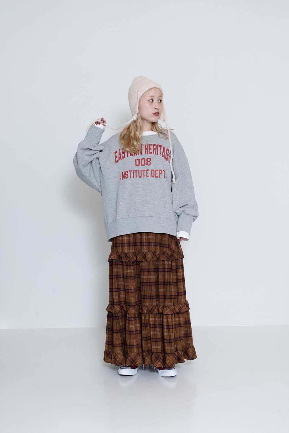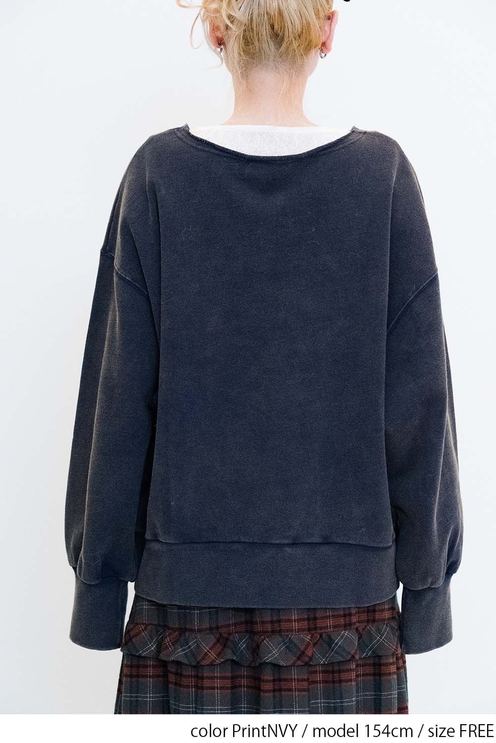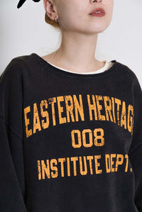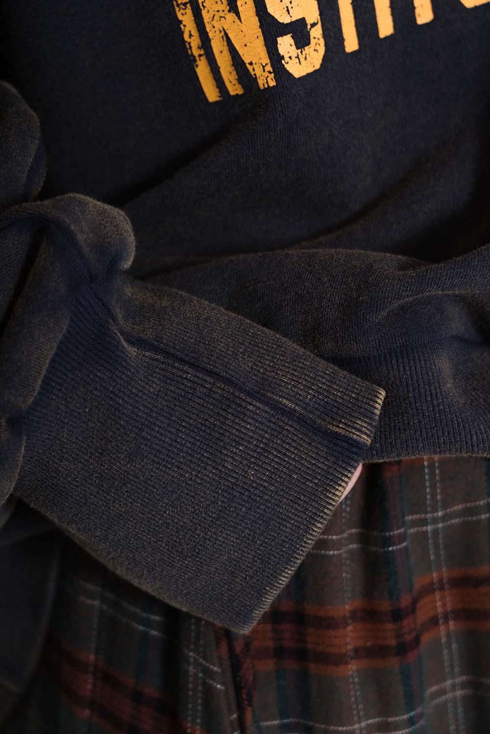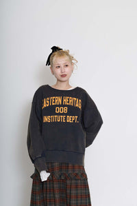 ヴィンテージライクな風合いがこなれ感を演出するカレッジロゴトレーナー。