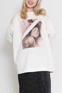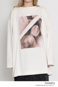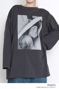 お花のフォトプリントが目を惹く、大人かわいいロングチュニックTシャツ。