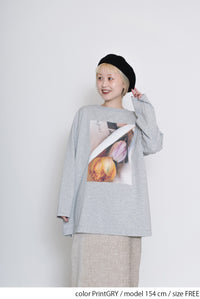 フォトプリントのシックな色合いが、幅広いアイテムに合わせやすく、コーデをおしゃれにまとめてくれます。