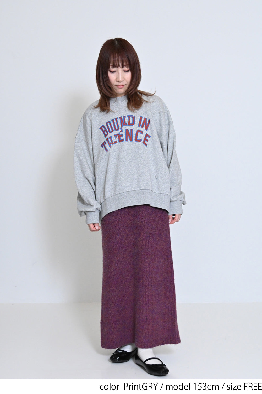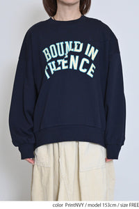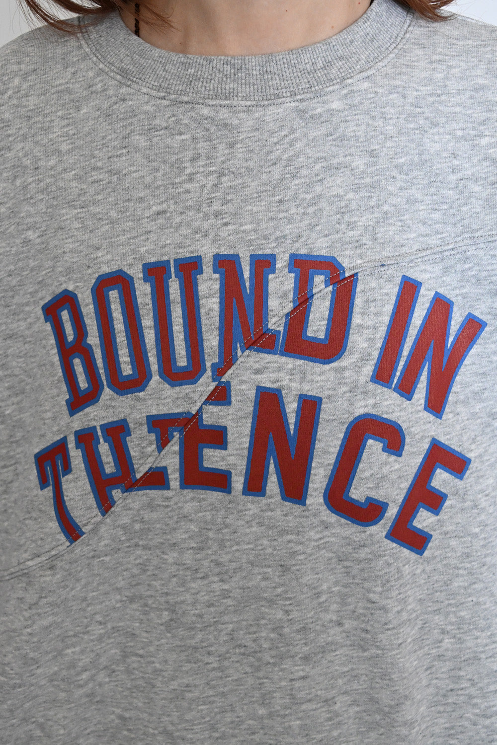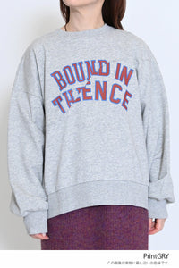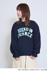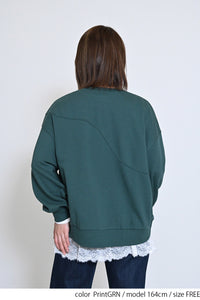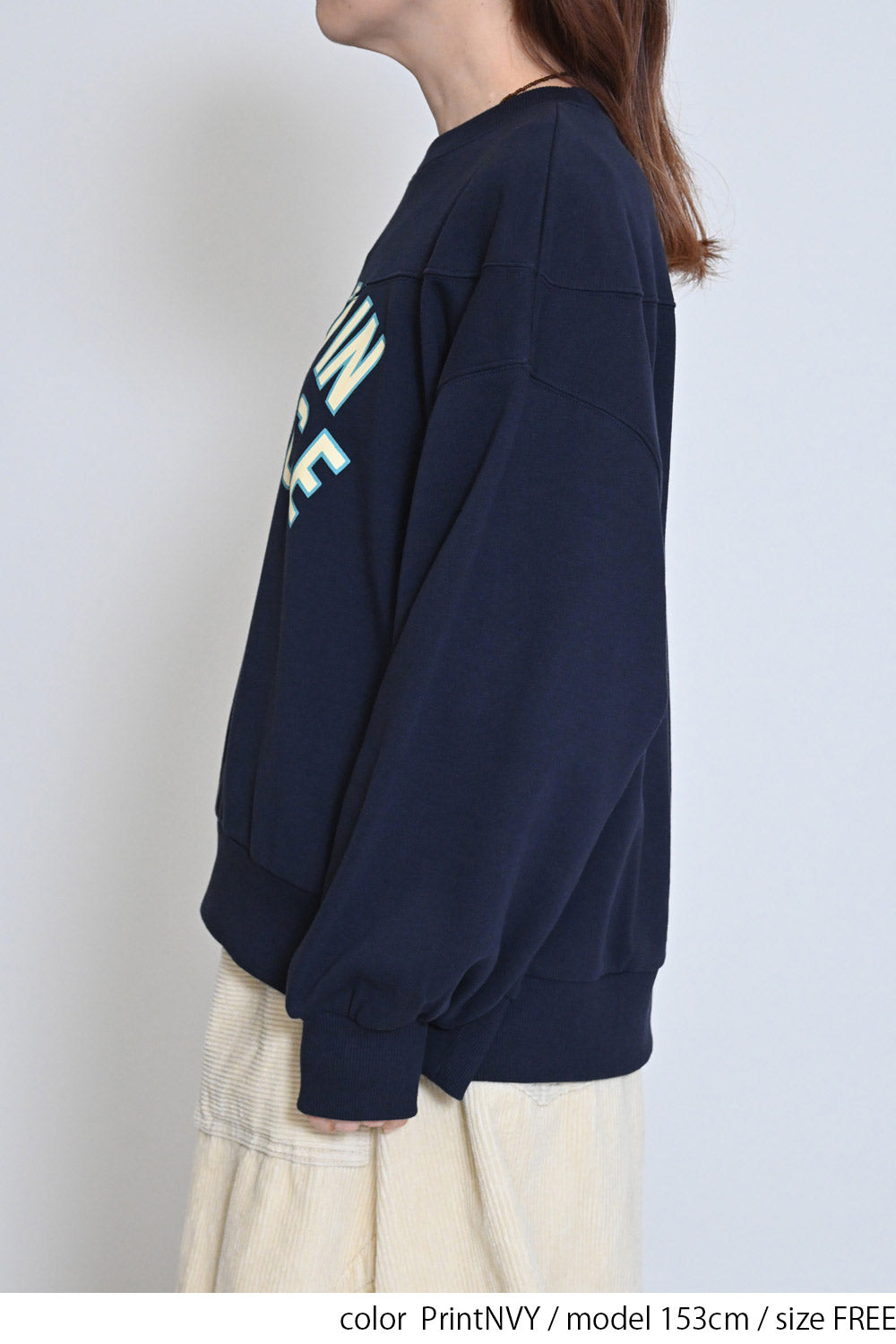 胸もとの波打つような切替デザインが印象的なロゴトレーナー。