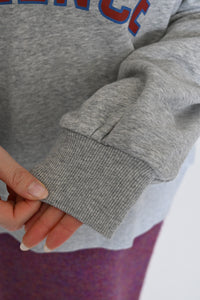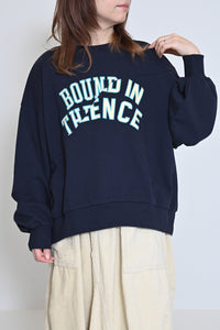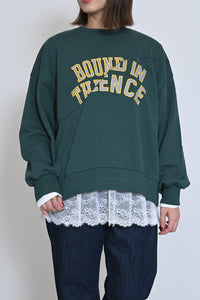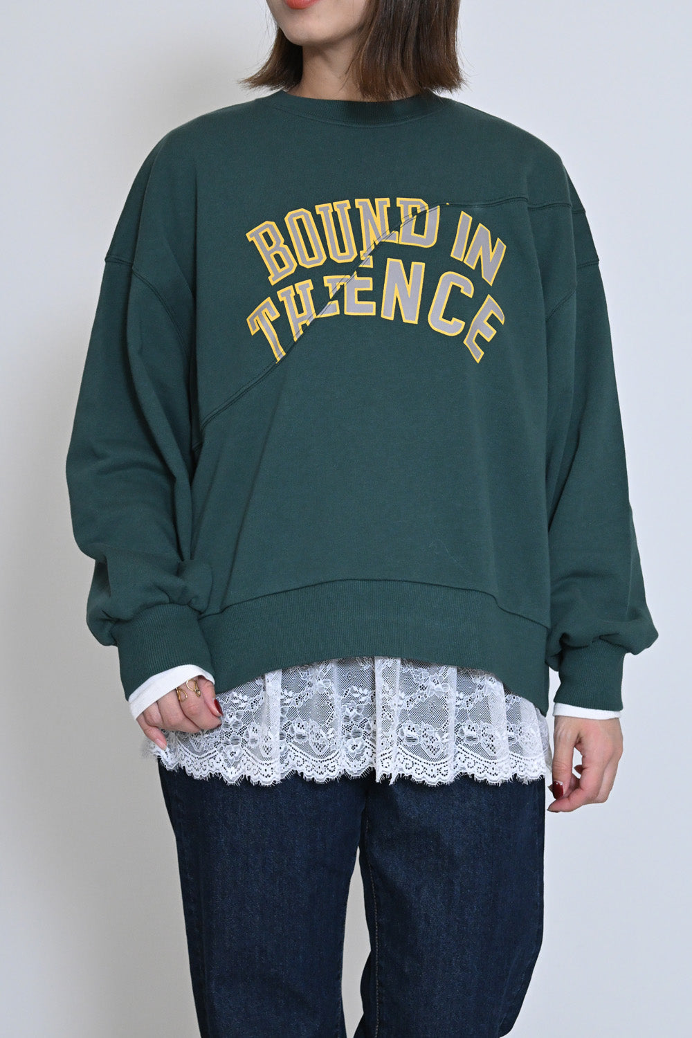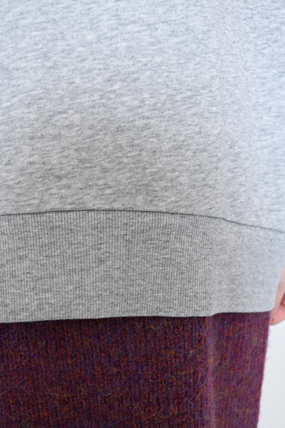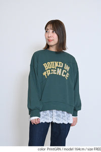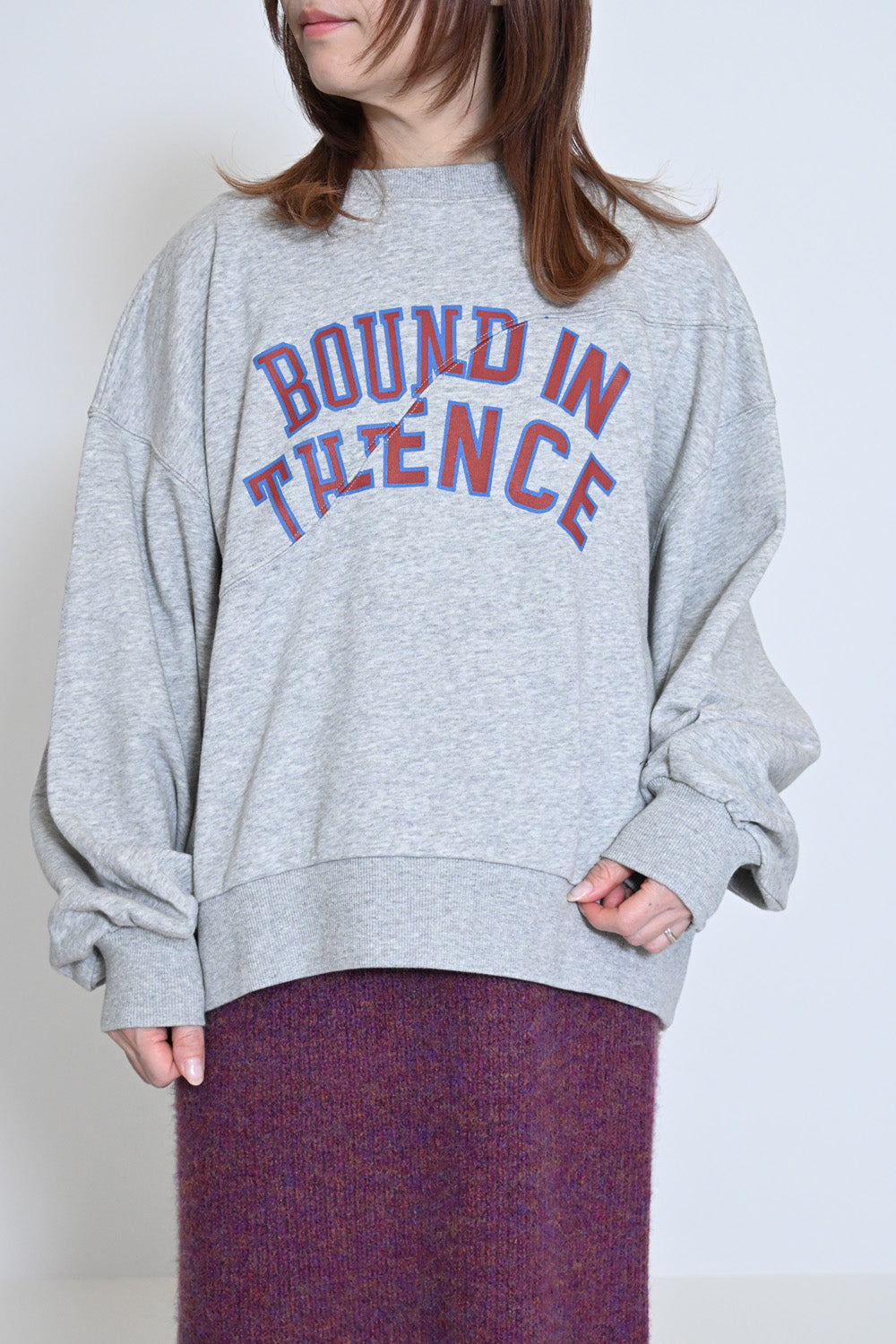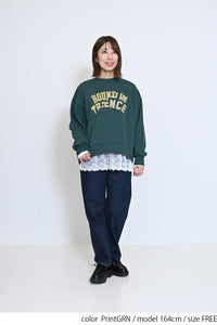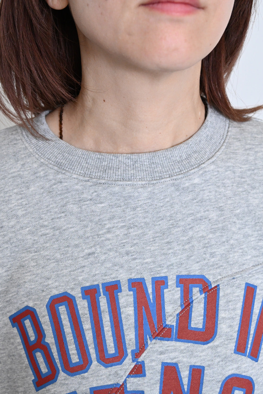 胸もとの波打つような切替デザインが印象的なロゴトレーナー。