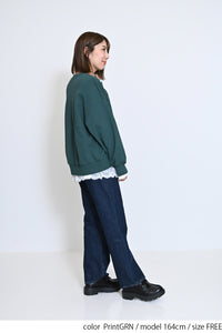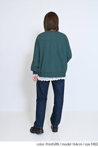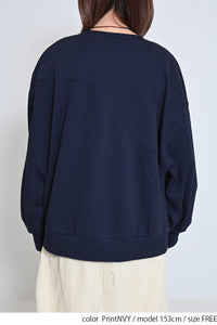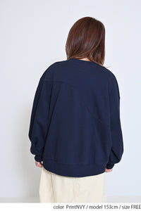 いつものトレーナーとは一味違う、どこかアートな雰囲気を添えた一枚です。