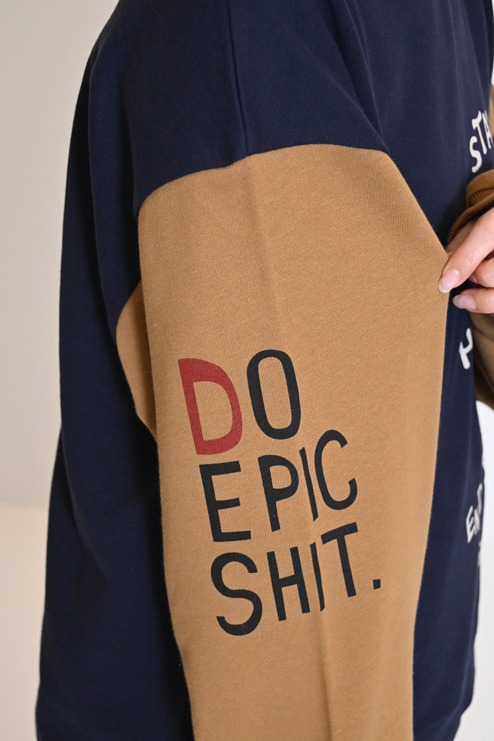 ゆる文字ロゴが散りばめられた、とび柄デザインのプルオーバー。