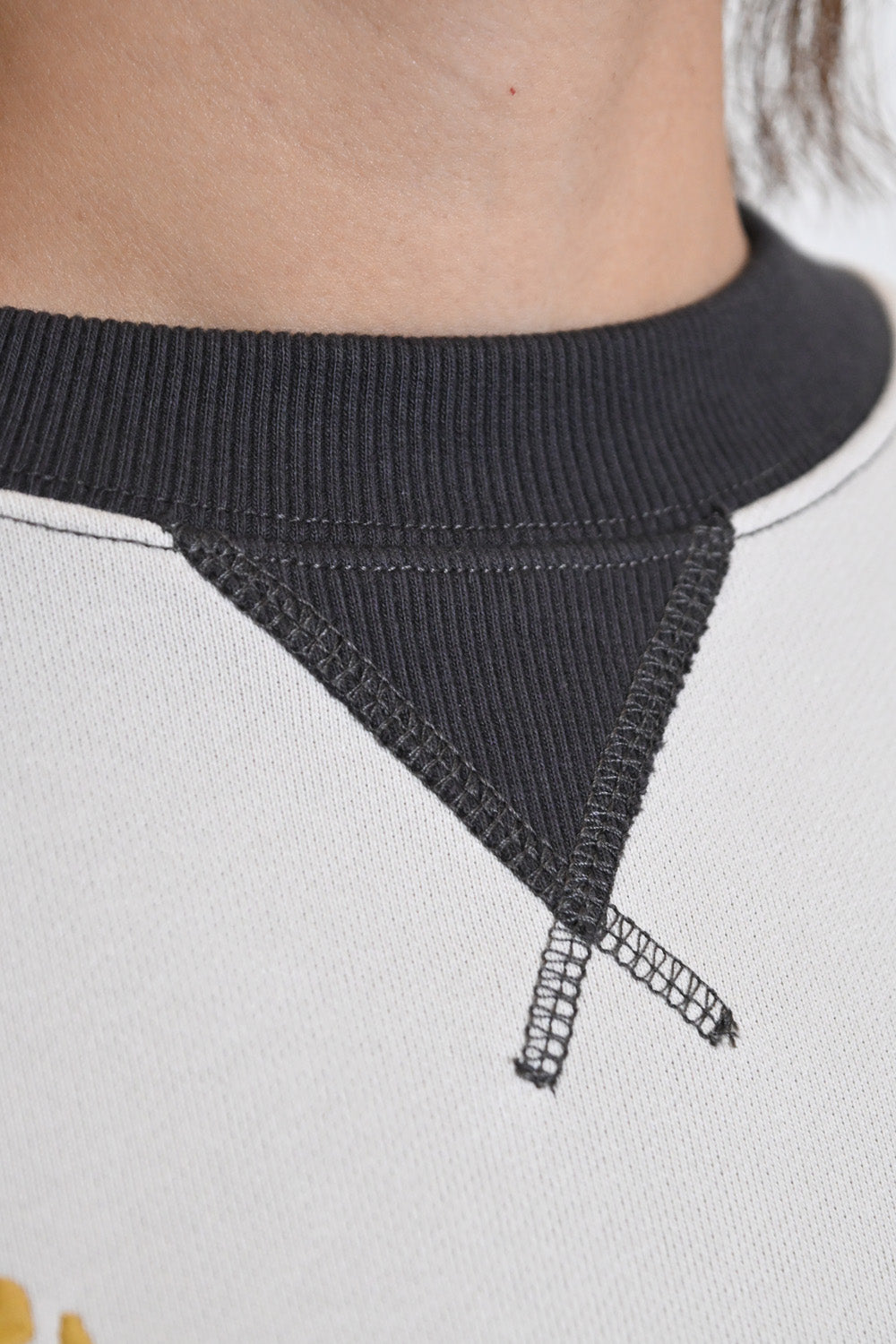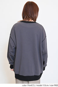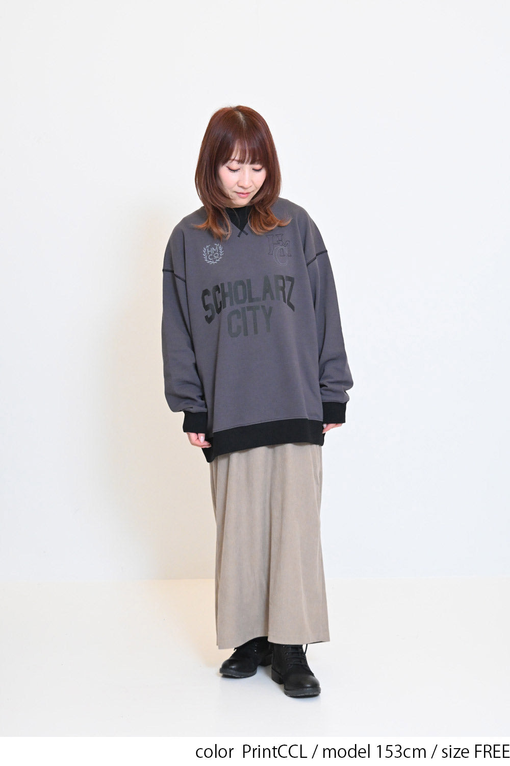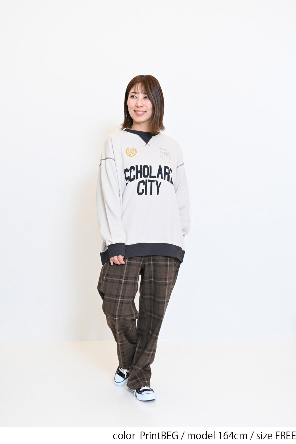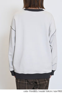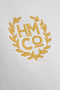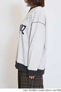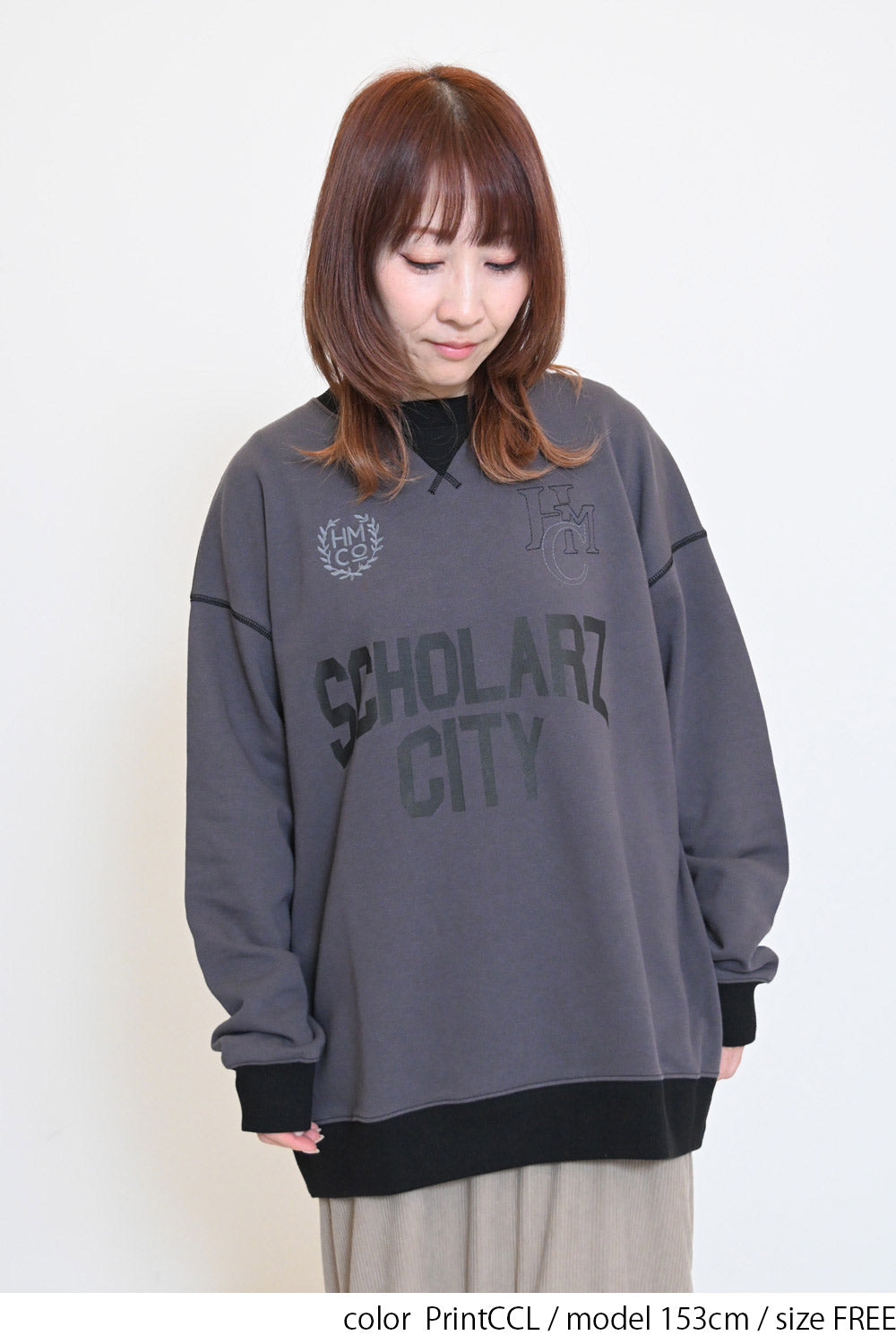 カレッジテイストのプリントと刺繍がポイントになった、HMC刺繍トレーナー。
