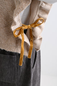 両端に施したフリルが立体感をプラスし、スクエアなフォルムの中にやさしい可愛らしさを添えています。