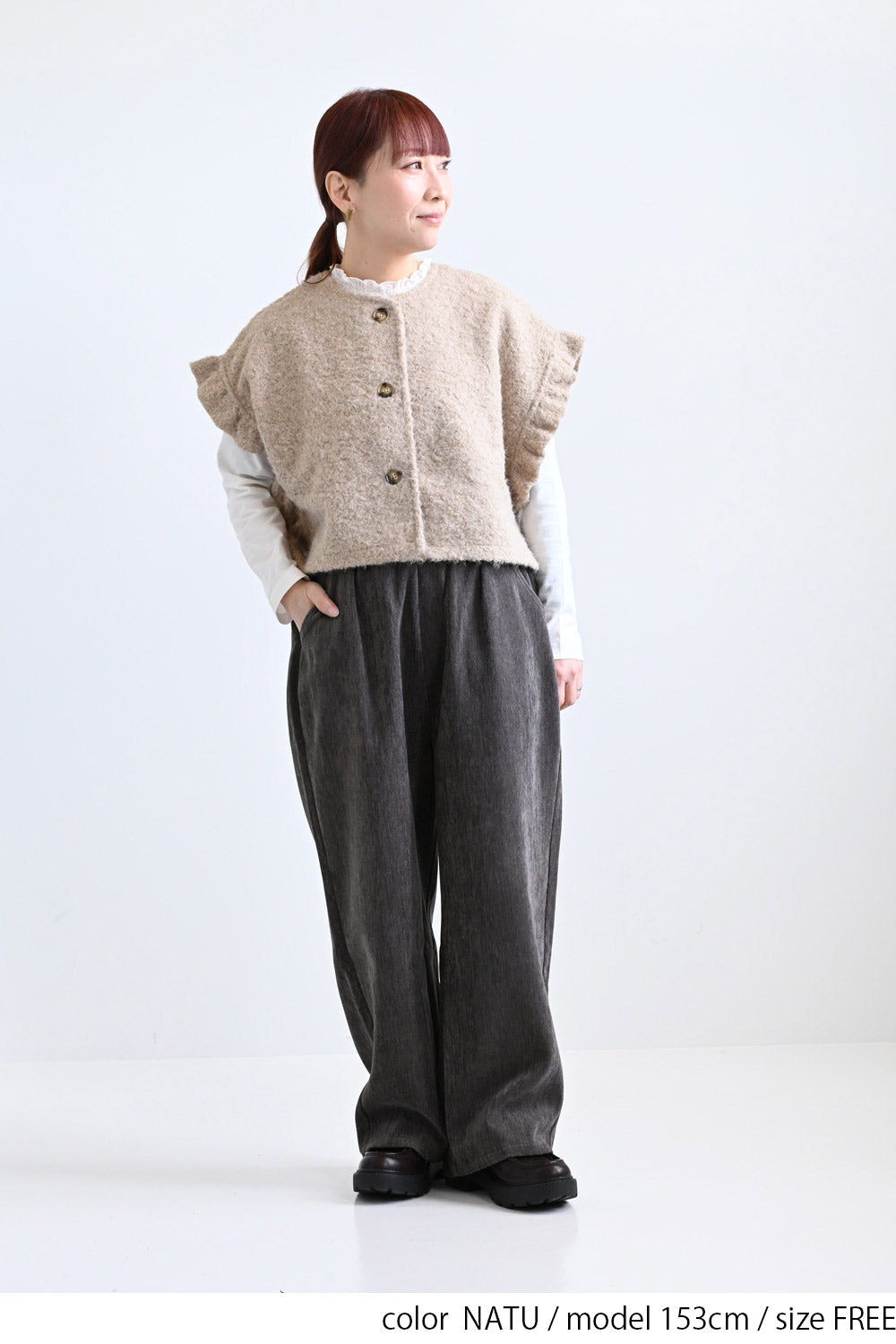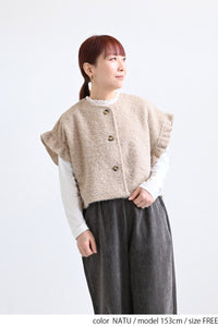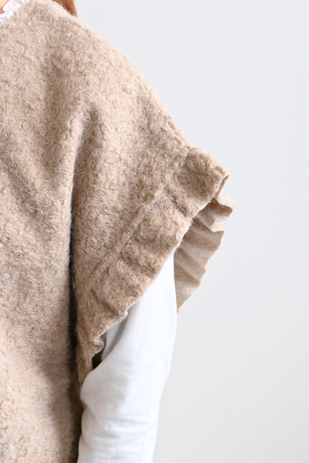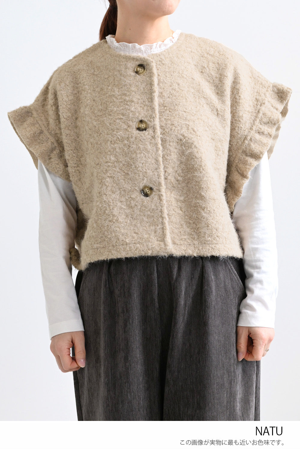 見た目にあたたかみがありながら、軽やかな着心地でレイヤードしやすいのが特徴です。