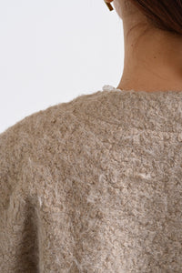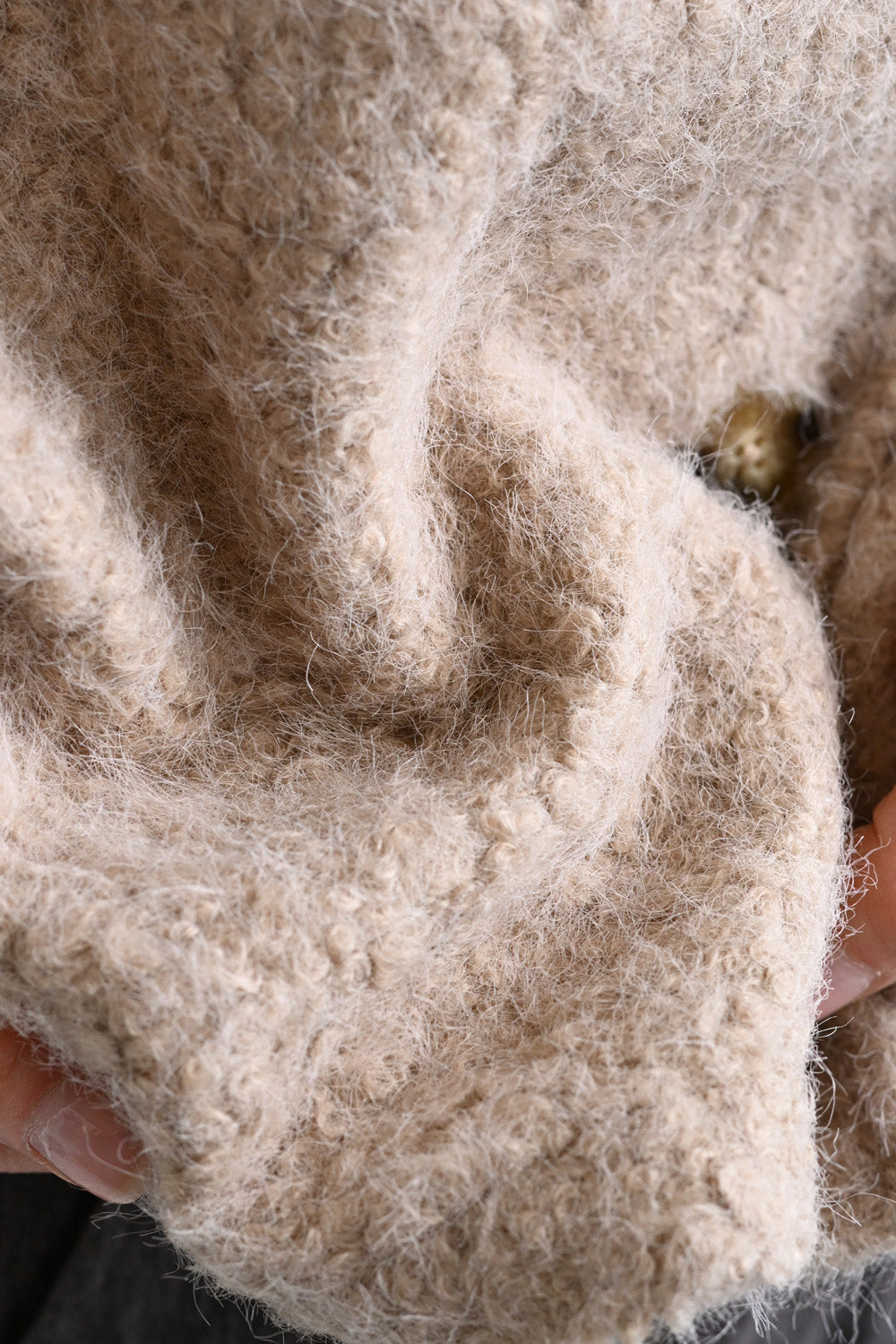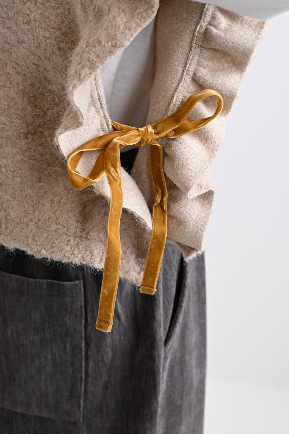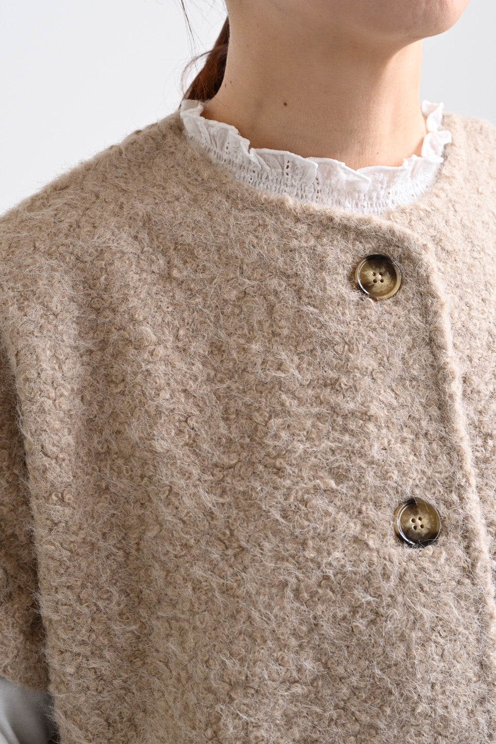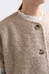 見た目にあたたかみがありながら、軽やかな着心地でレイヤードしやすいのが特徴です。