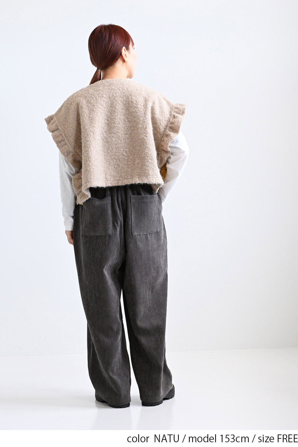 ゆとりのあるシルエットでオーバーサイズのトップスにも重ねていただけます。