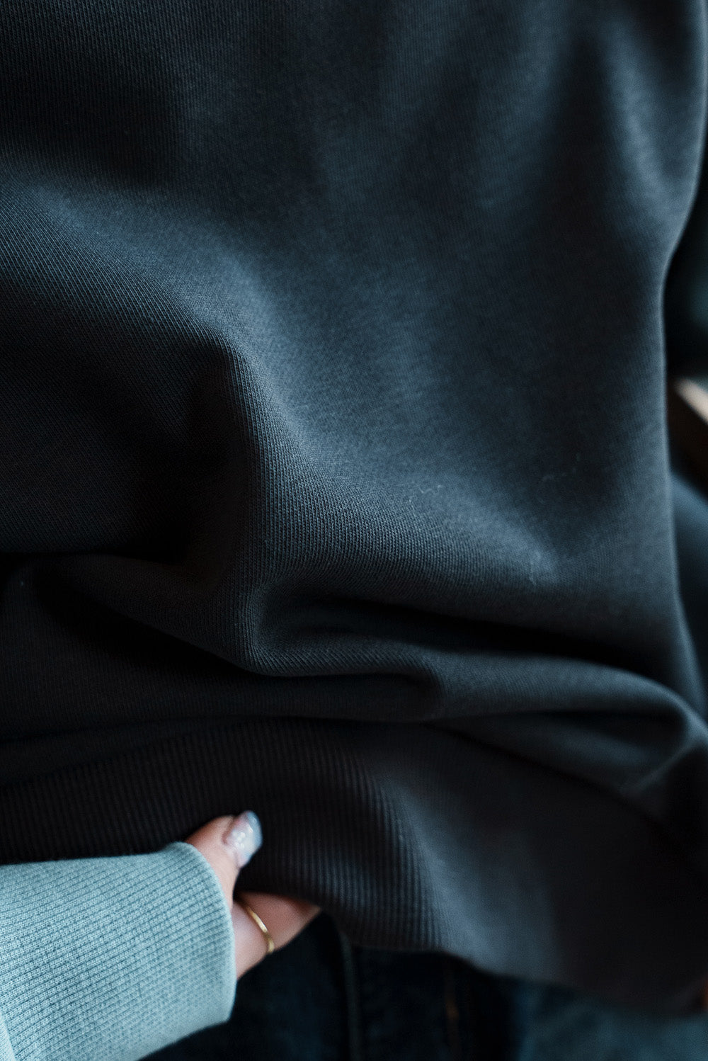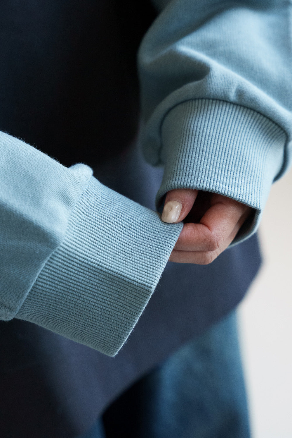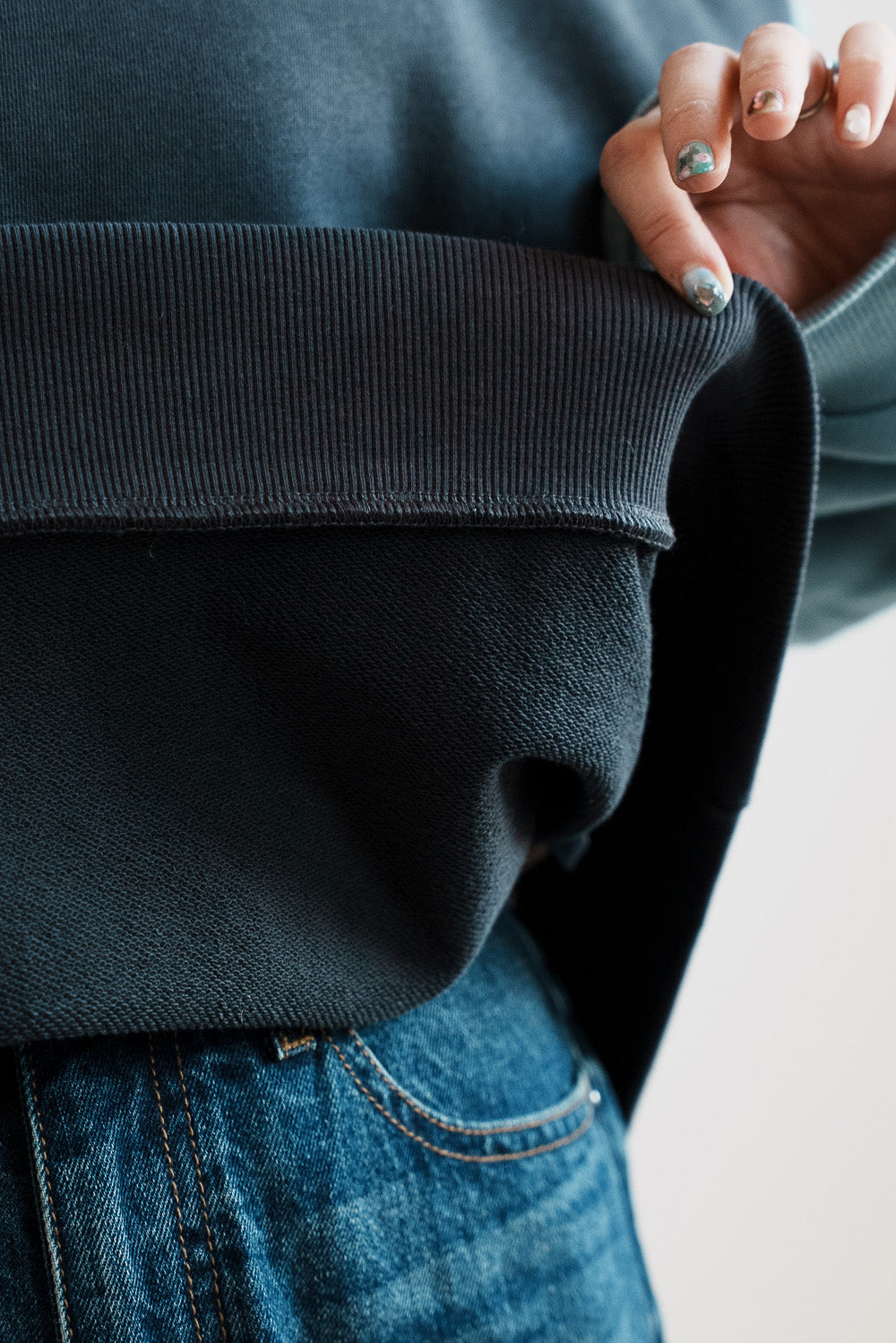 柔らかな裏毛素材を使用しており、肌触りがよく軽やかな着心地です。