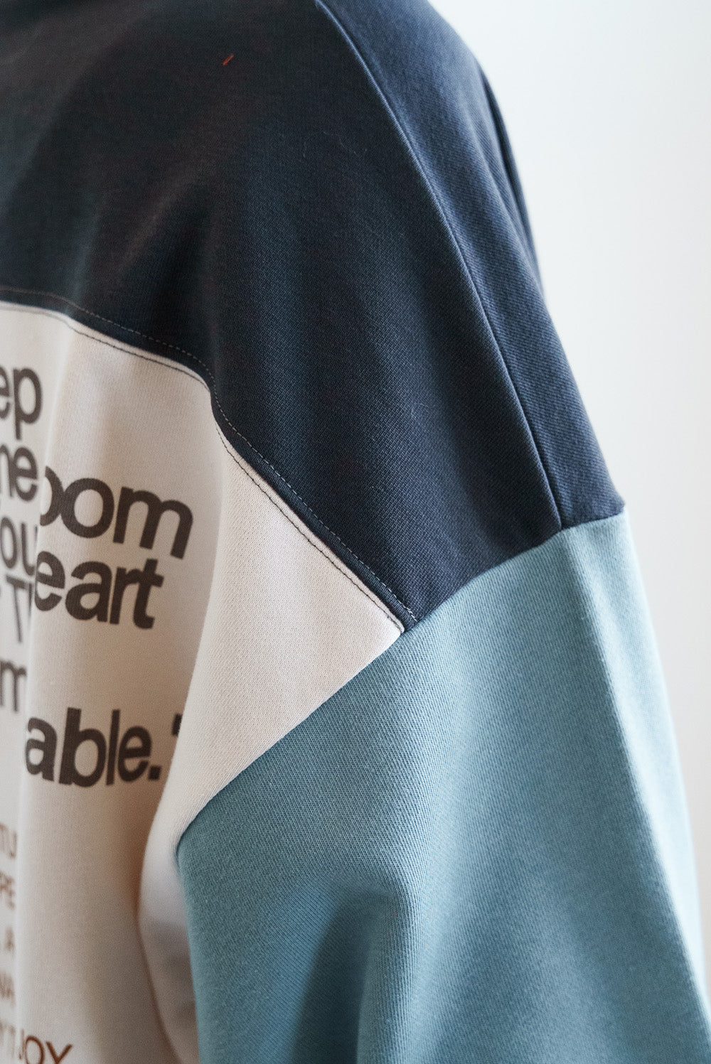 アシンメトリーにデザインされたバックロゴが目を惹く、存在感抜群のプルオーバー。
