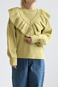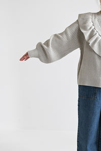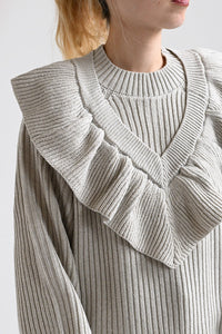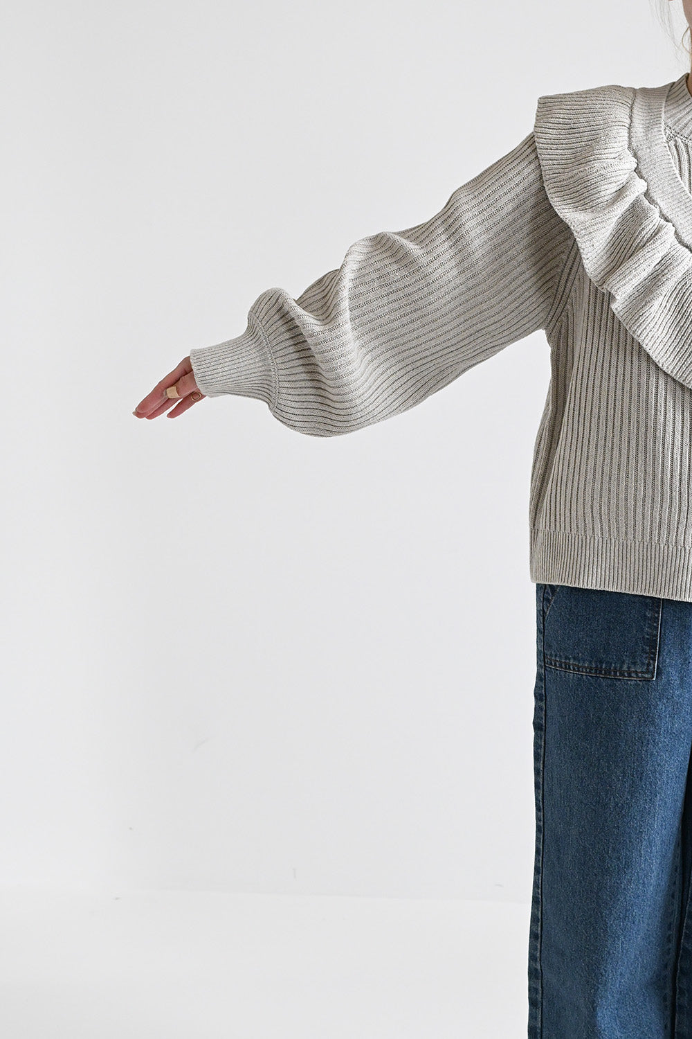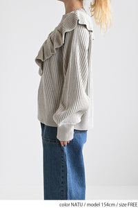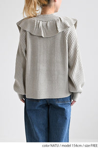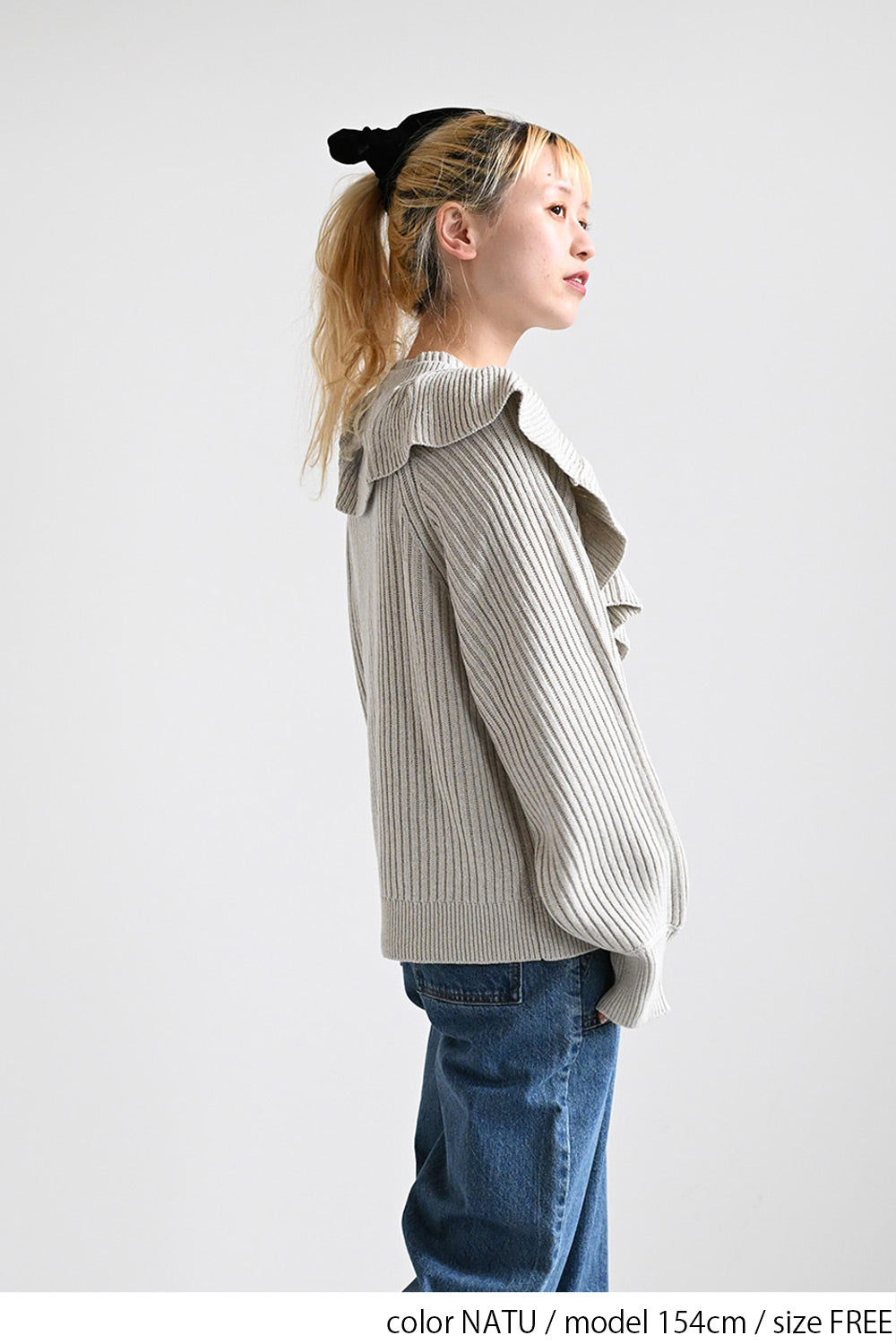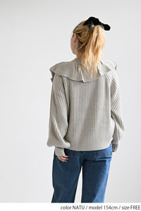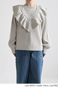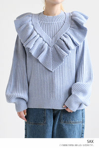 着るだけでコーディネートが決まる、存在感のあるビッグフリルニットです。