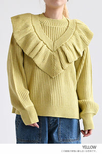 甘すぎないVラインフリルでちょうどいい可愛さをプラスしてくれる華やかな主役ニットです。
