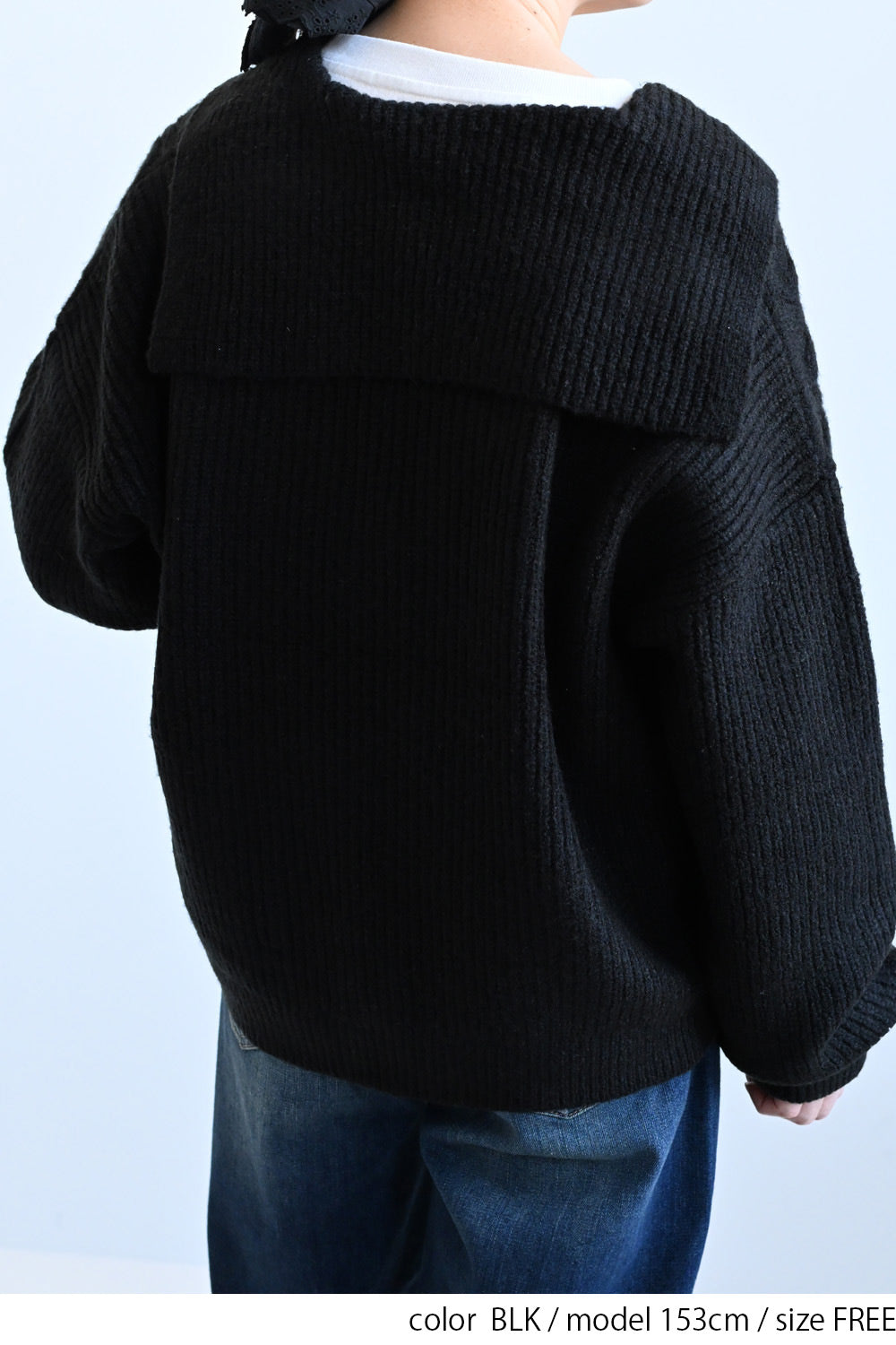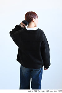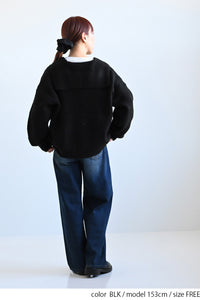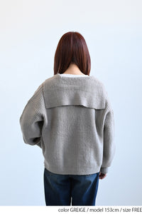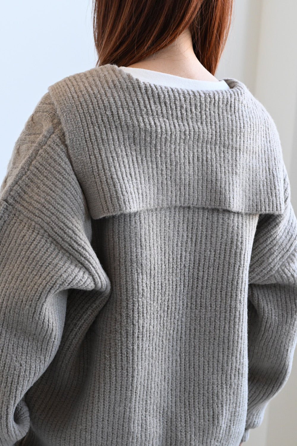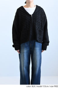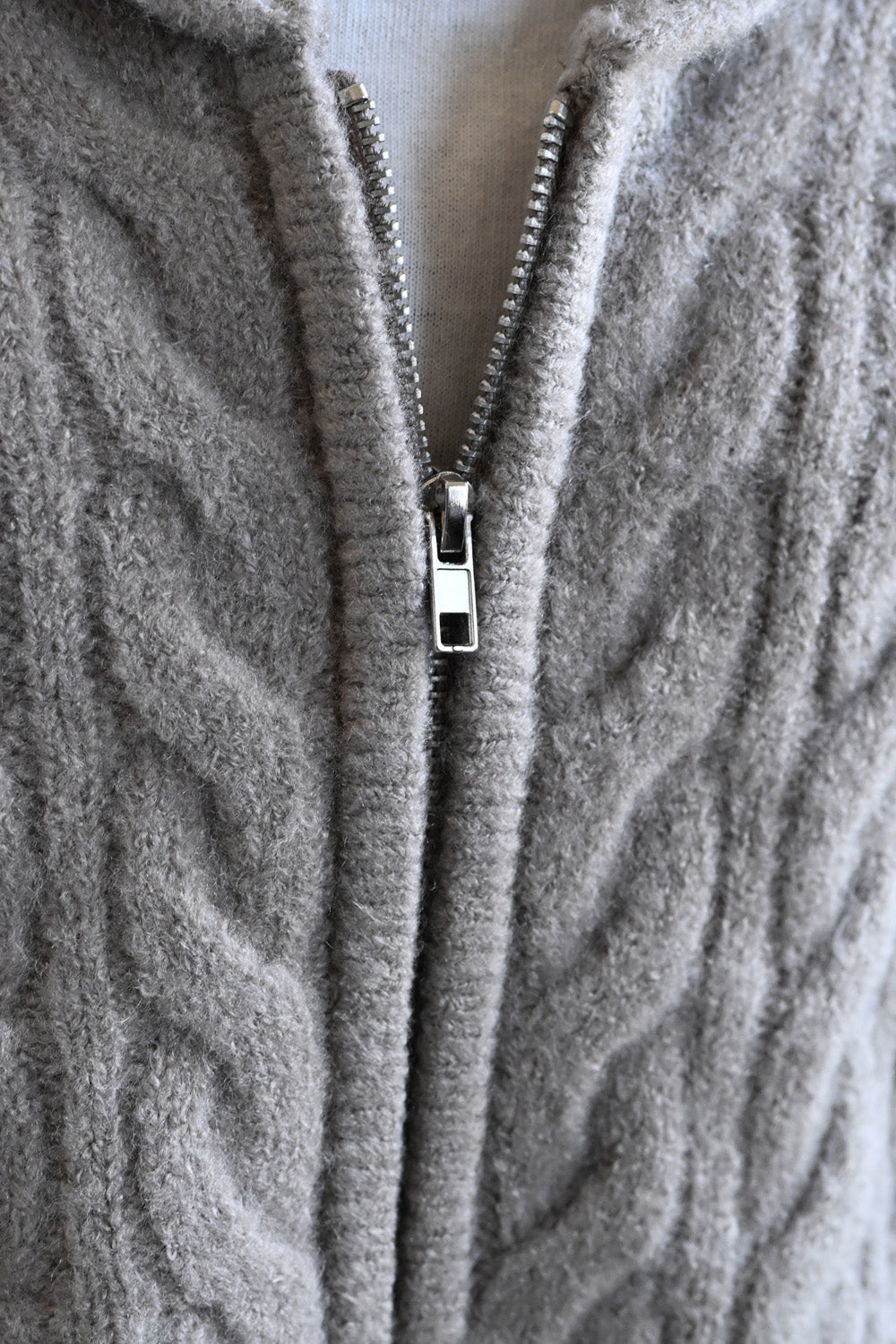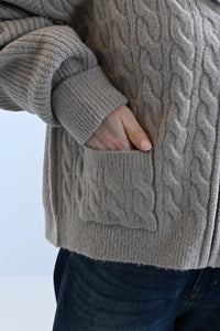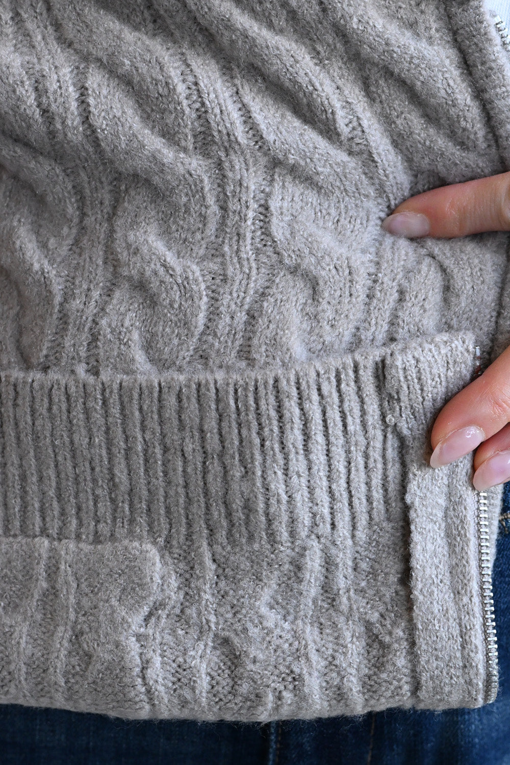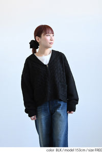 フロント部分にはケーブル編みを施し、シンプルな中にも立体感と表情をプラス。