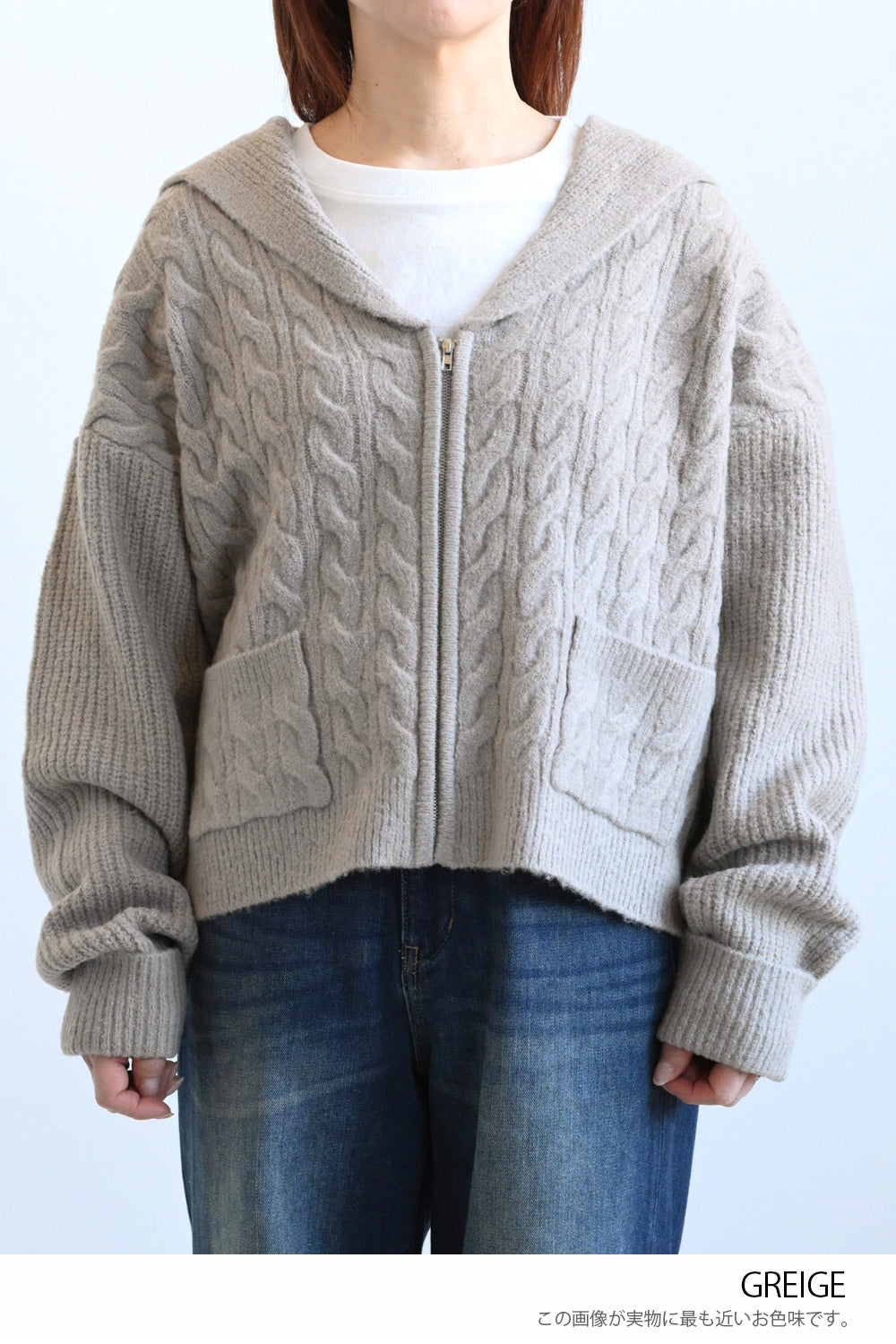 程よい甘さのセーラーカラーデザインが、大人かわいいスタイルを叶えてくれる前ジップカーディガン。