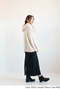 | サイズ | 身幅 | 肩幅 | 着丈 | 袖丈 | アームホール | フード高さ |