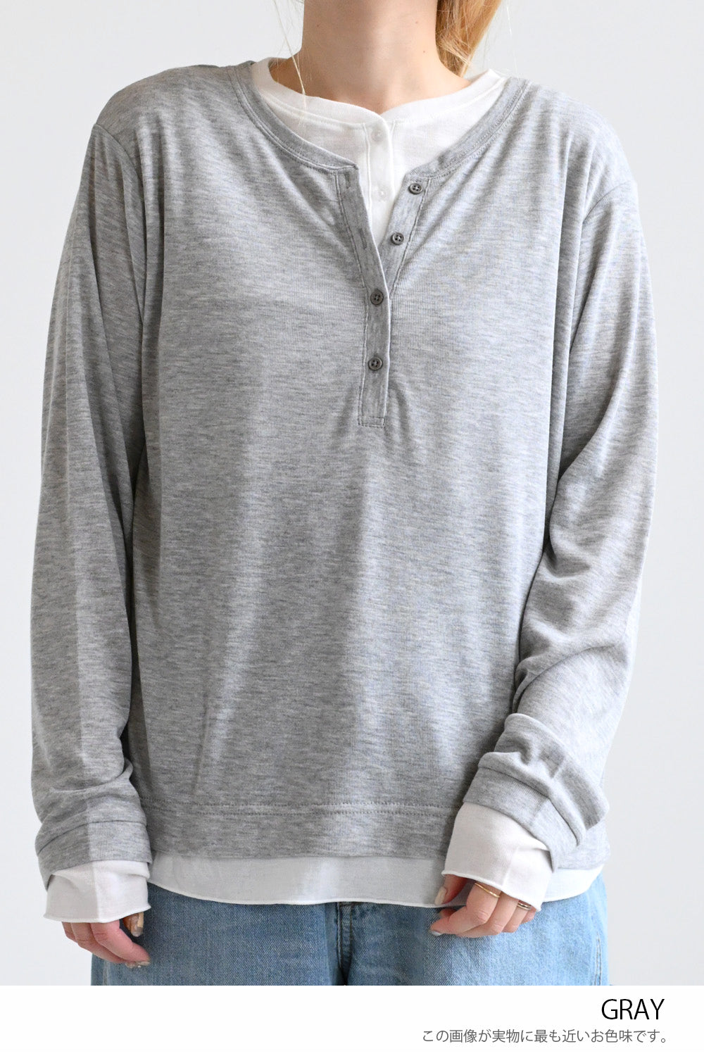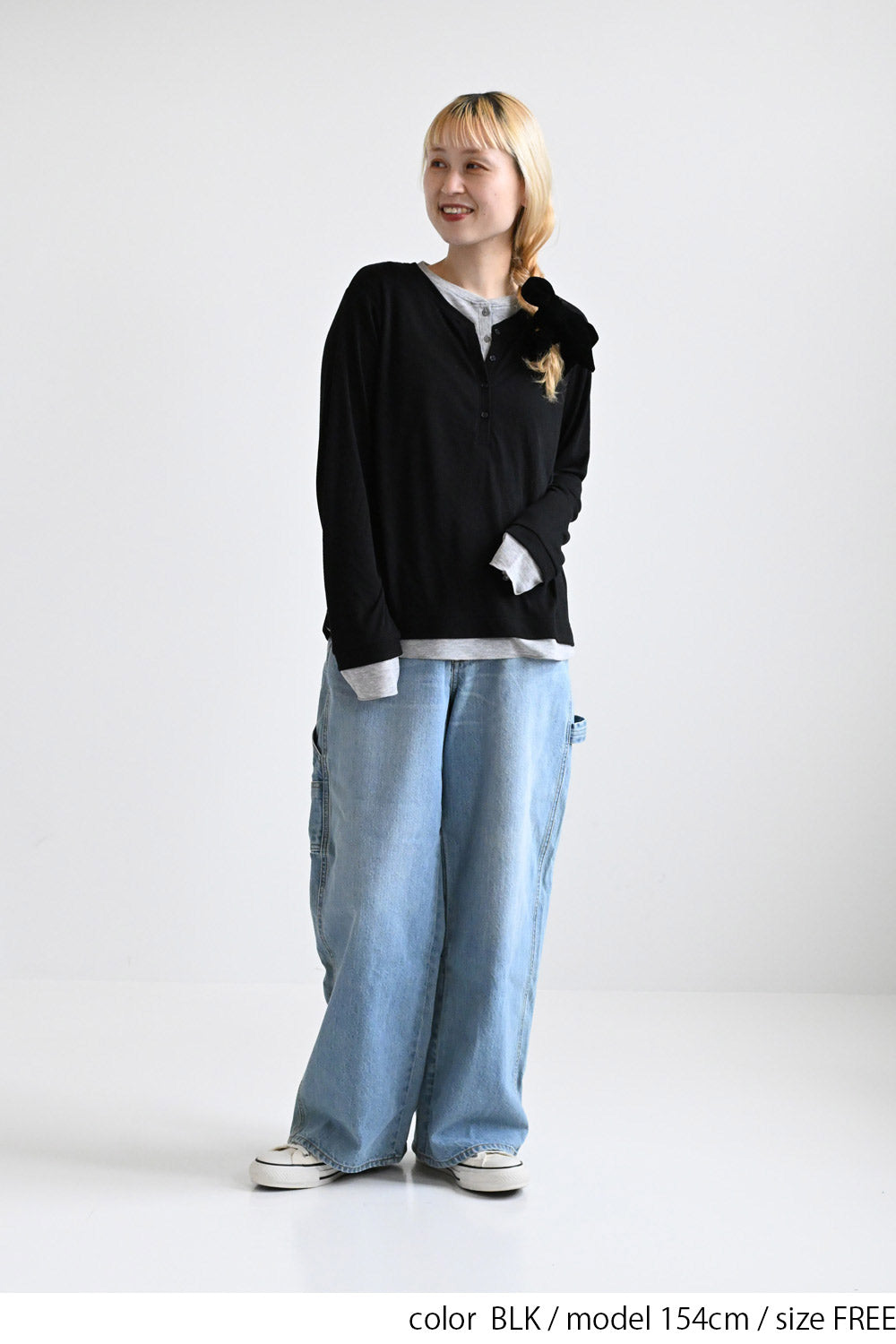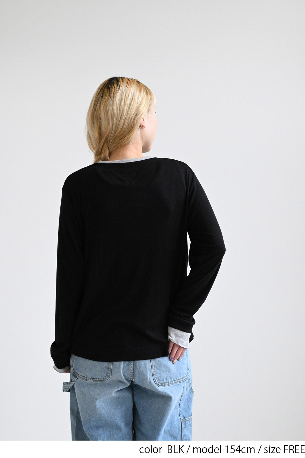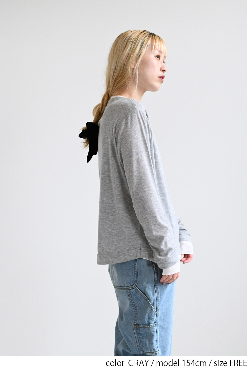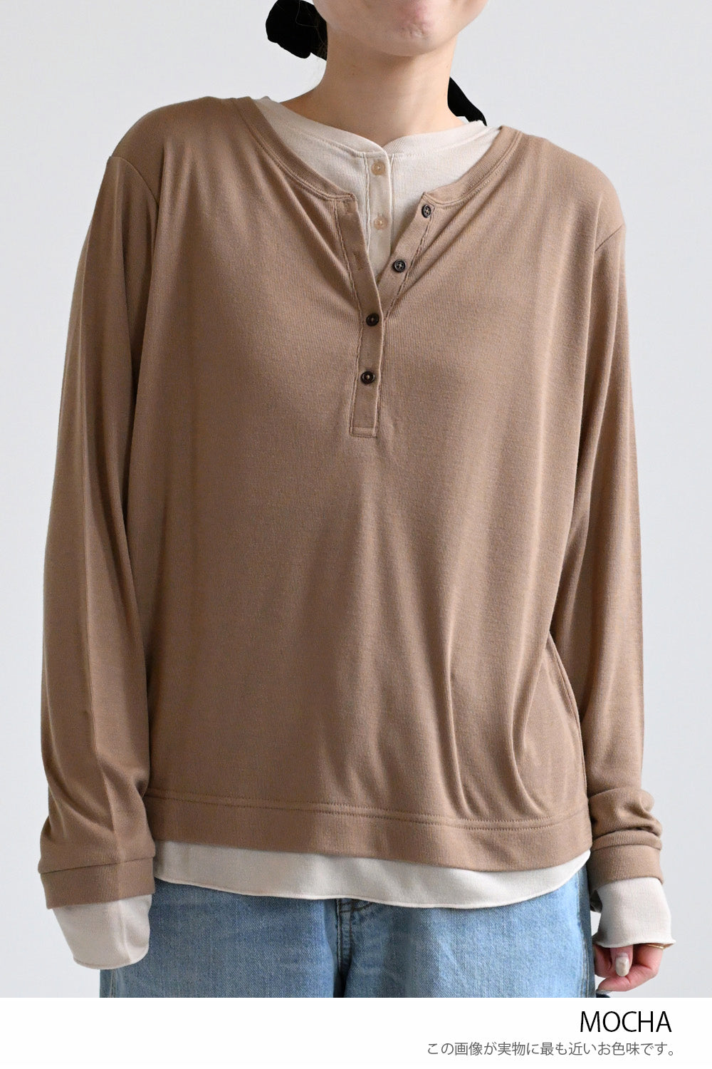 襟元、袖口、裾から覗く、重ね着しているようなディテールがポイント。