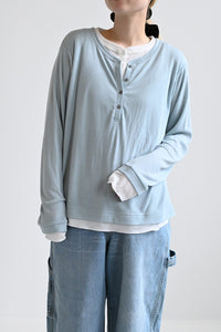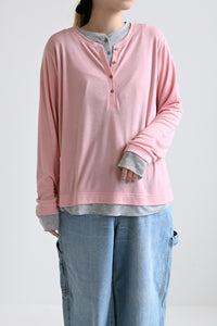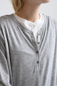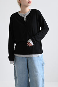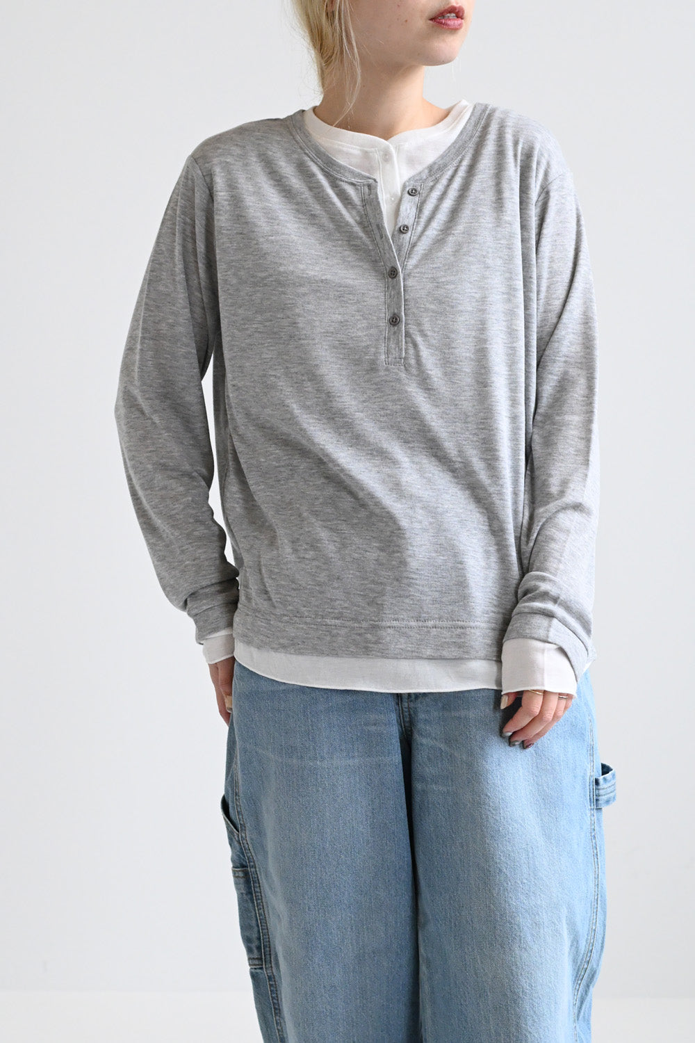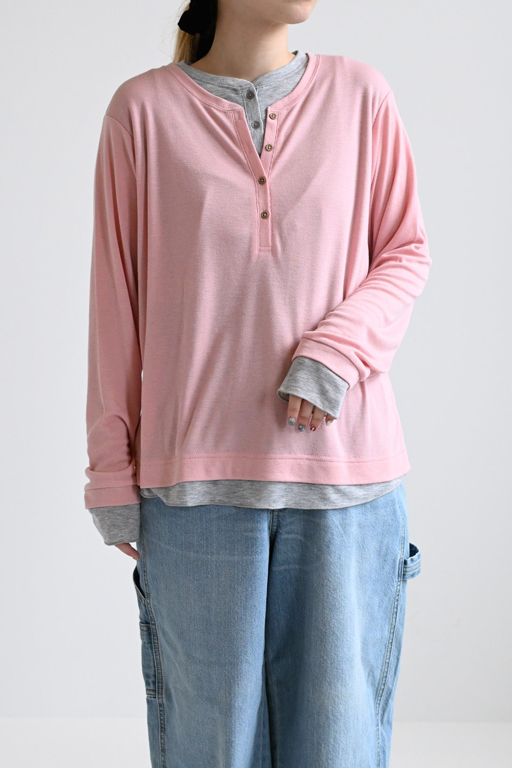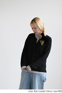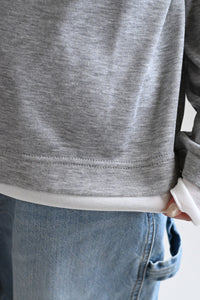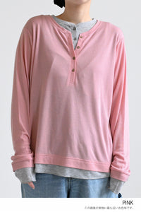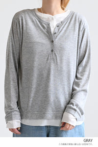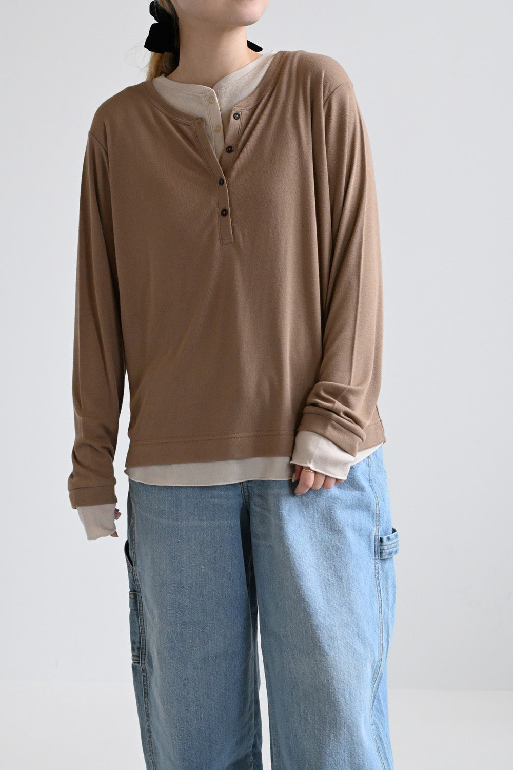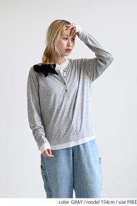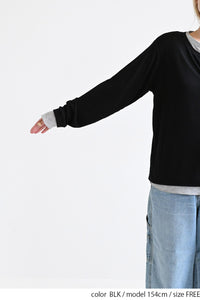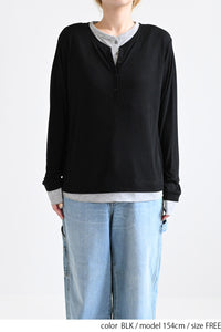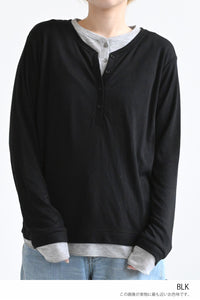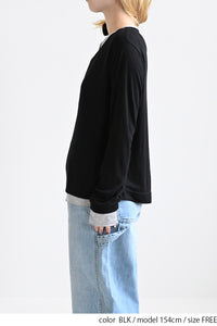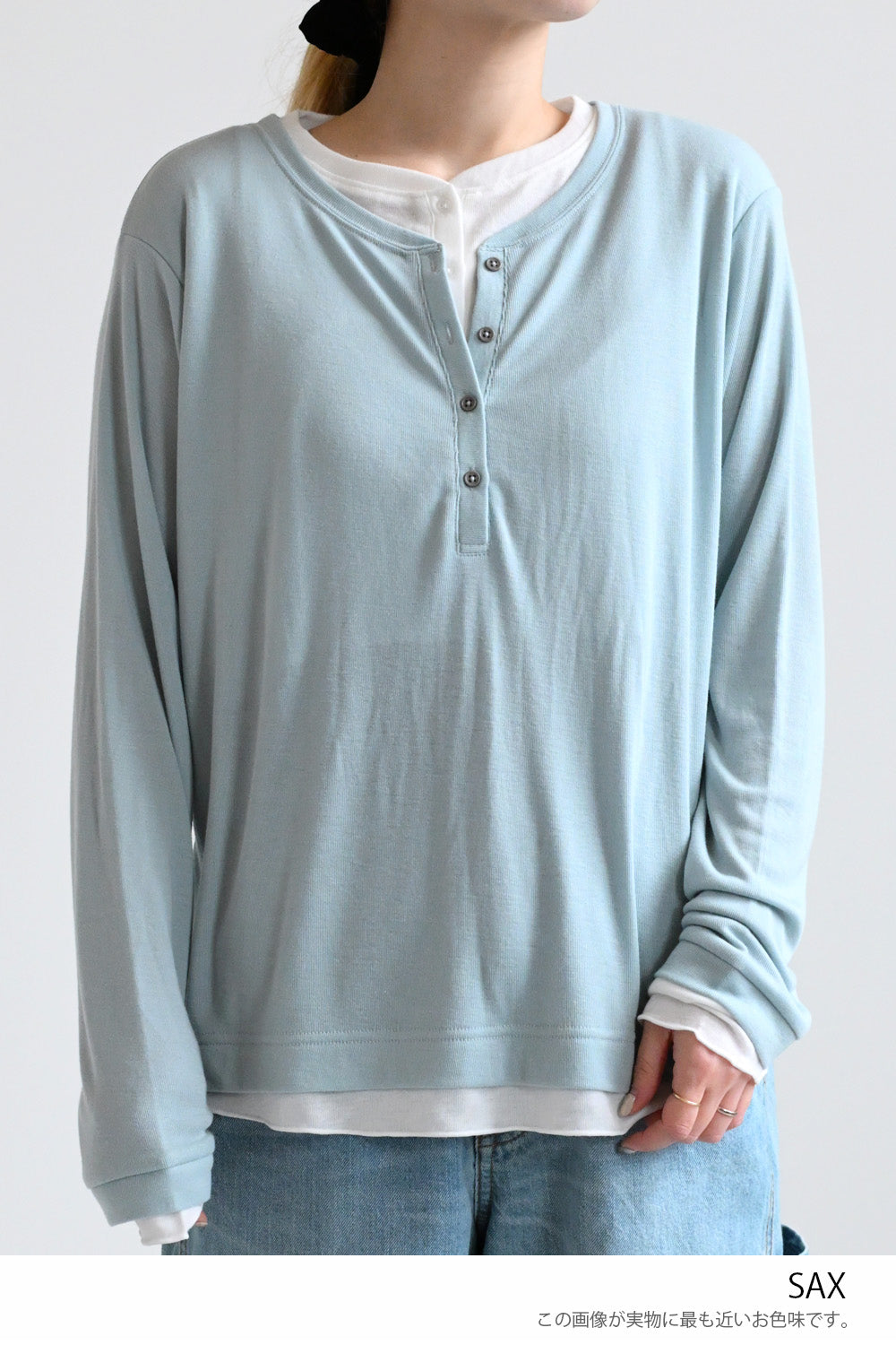 襟元、袖口、裾から覗く、重ね着しているようなディテールがポイント。