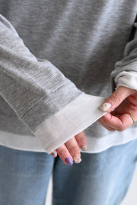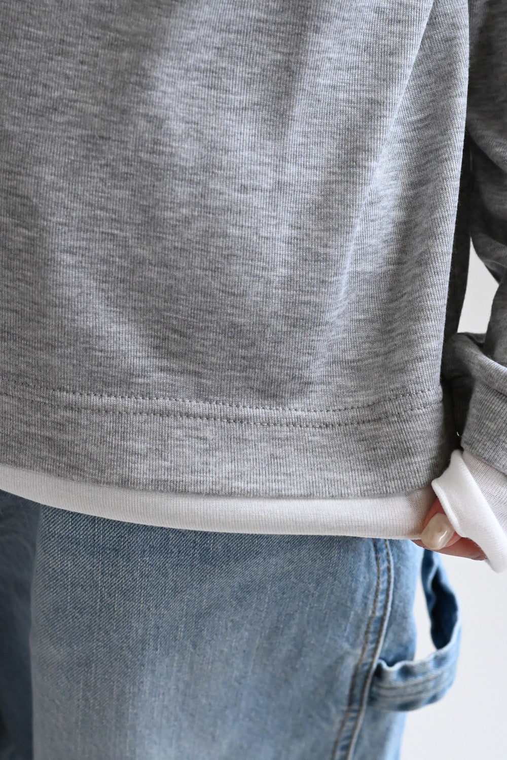 ベーシックなボトムと合わせても、配色レイヤードが効いて手抜き感のないコーデに。