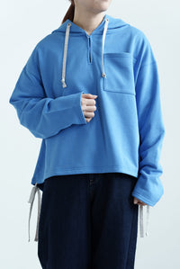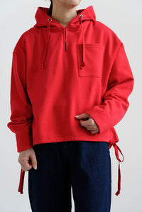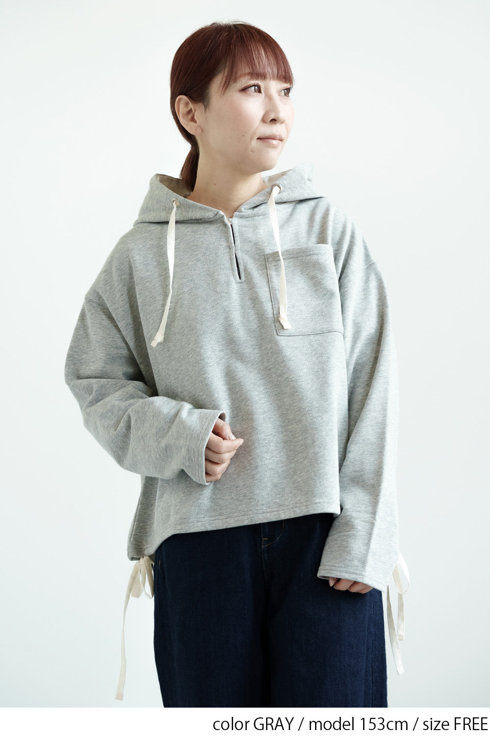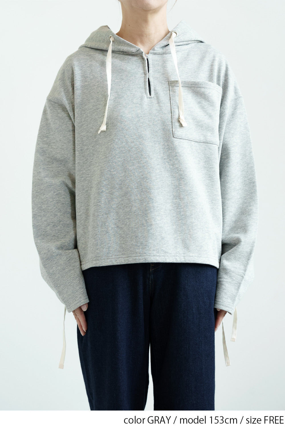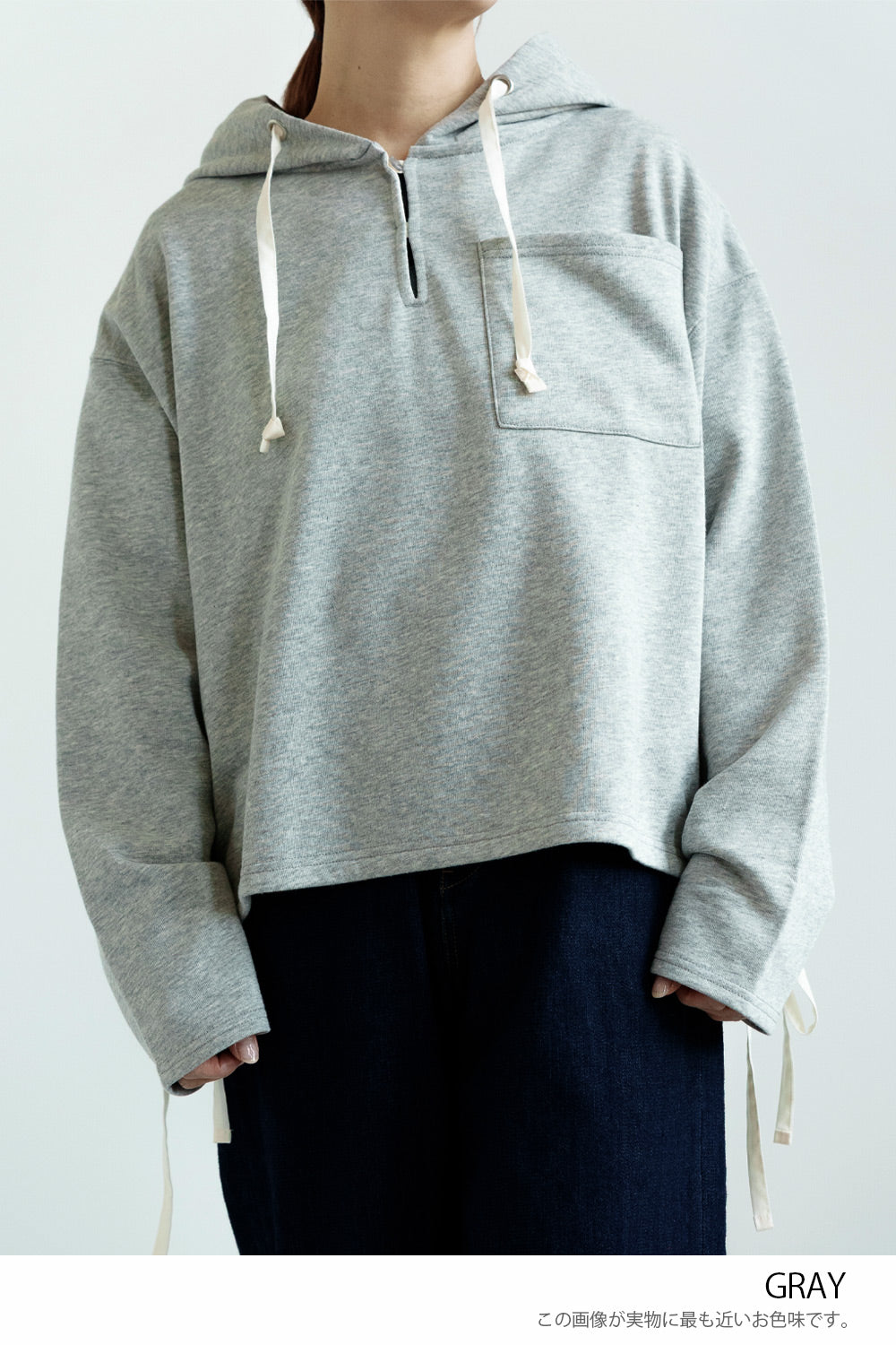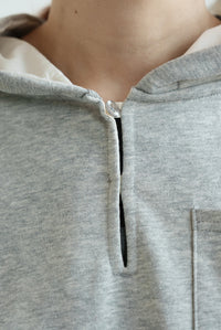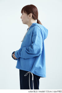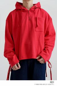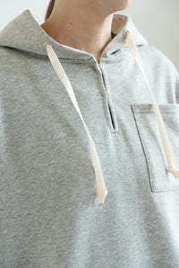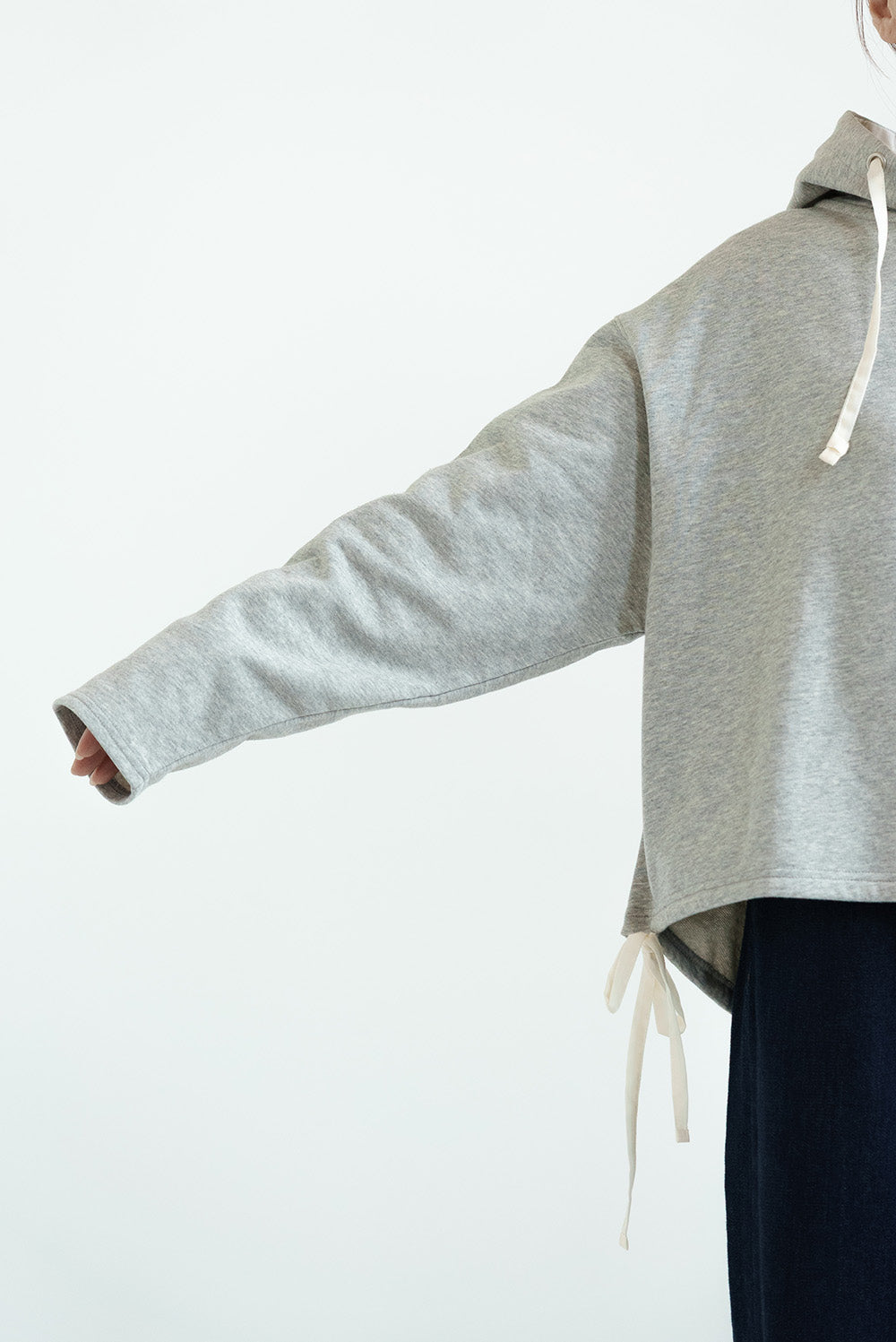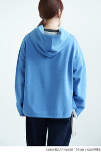 スキッパーデザインとフードを組み合わせた、抜け感のある裏毛プルオーバー。