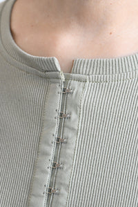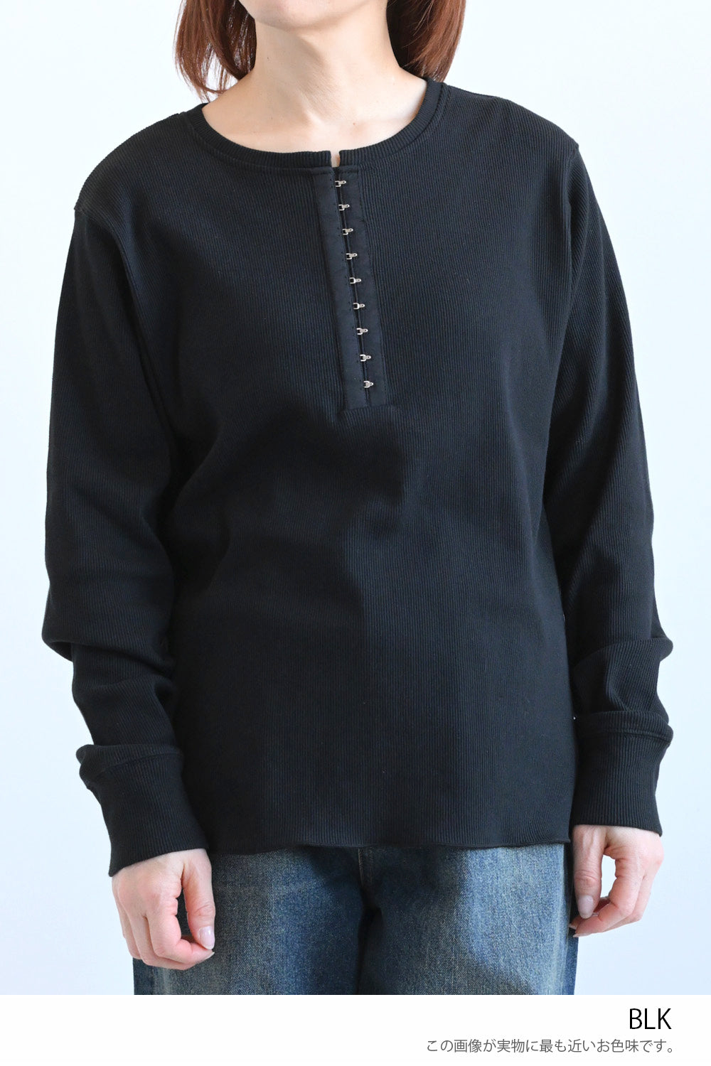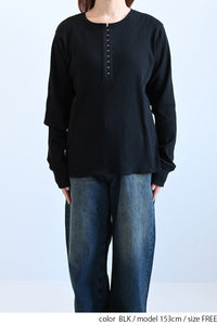 フロントホックがコーデのアクセントになるカットソーです。