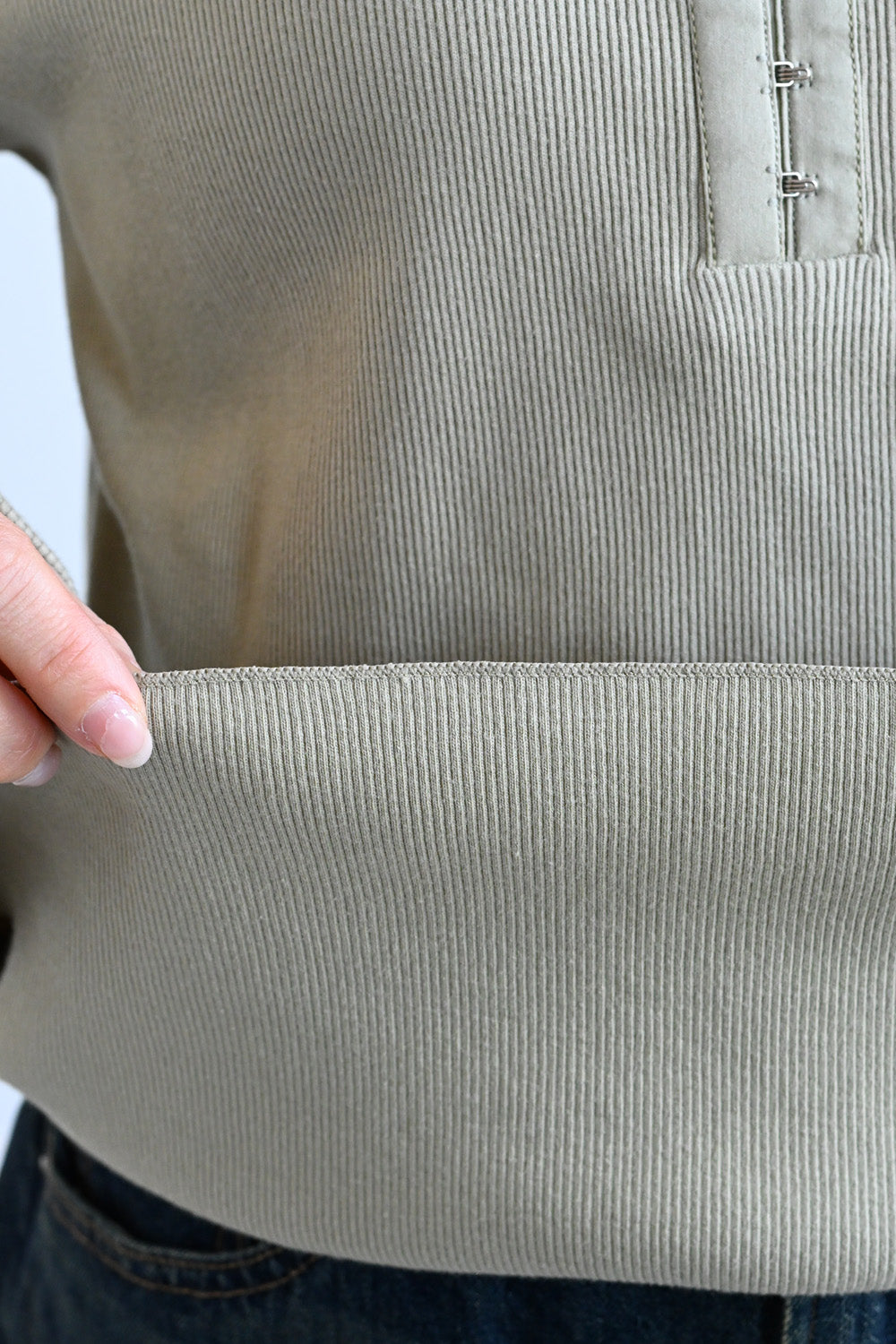 伸縮性に優れたテレコ素材を使用し、身体にやさしくフィットしながらもストレスフリーな着心地を叶えます。
