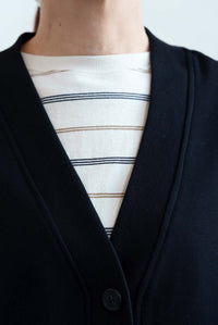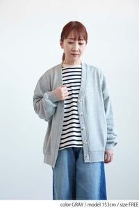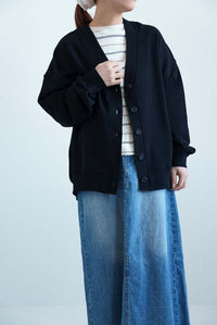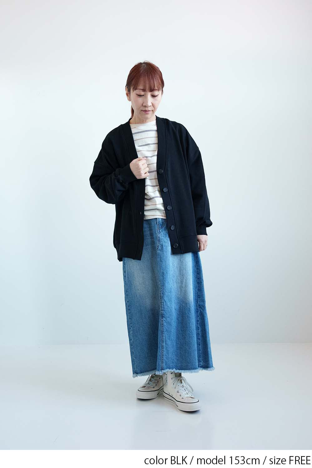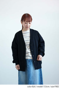 フロントはボタン仕様で、カーディガンはもちろんライトアウター感覚でも着用可能で、デイリーに気負わず使える1枚です。