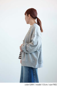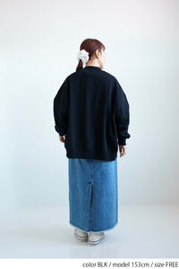 スウェット素材でもラフになりすぎず、女性らしいシルエットを演出します。
