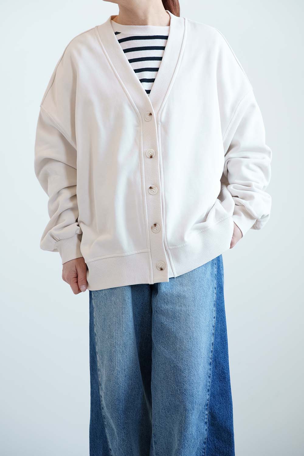 程よくゆとりのあるシルエットでリラックス感がありながら、きちんと見えも叶える袖ギャザー裏毛カーディガン。