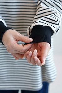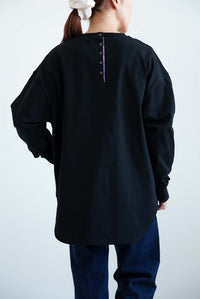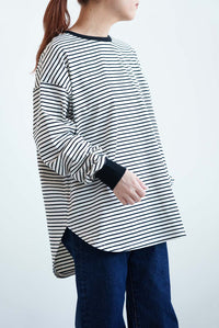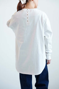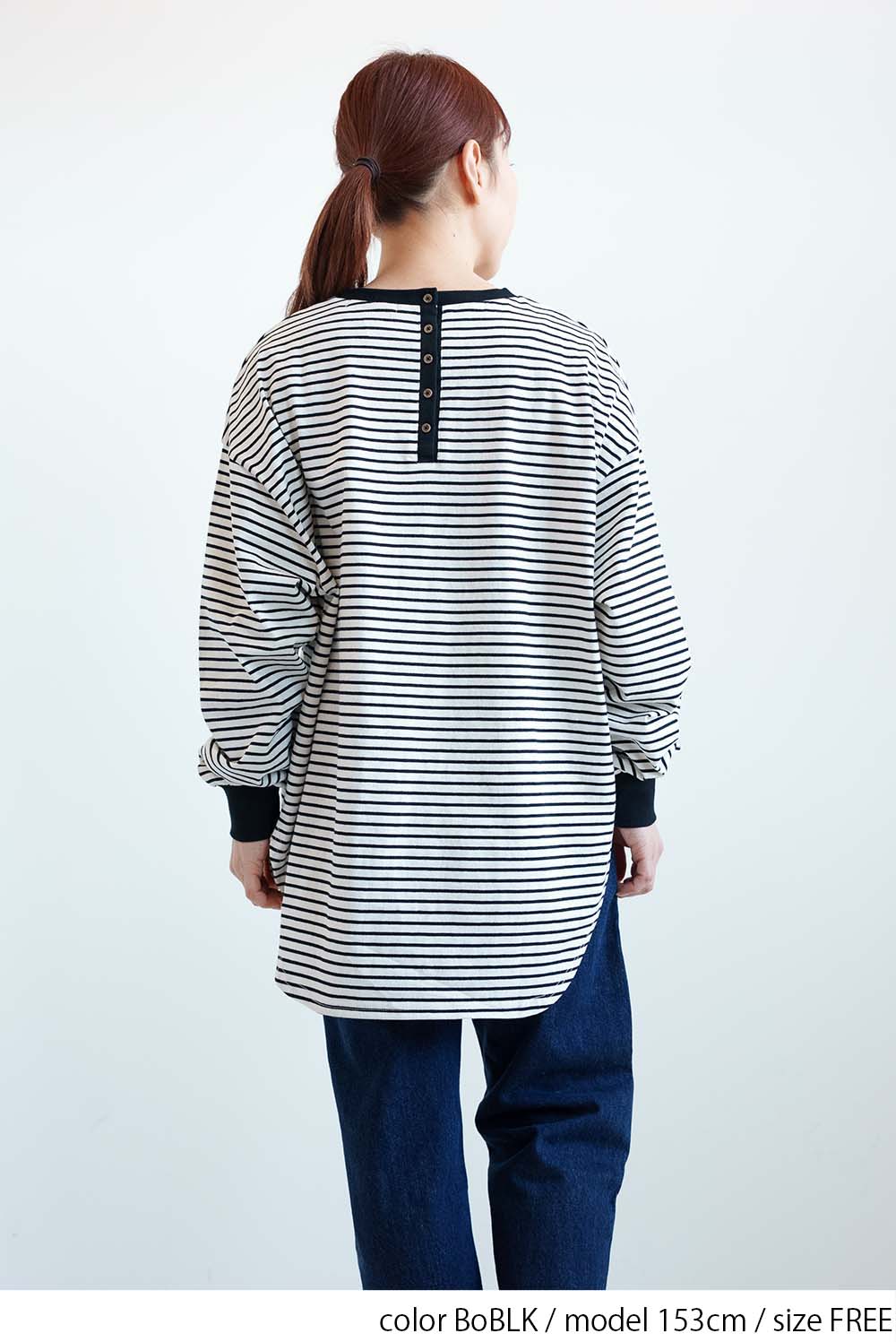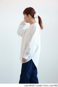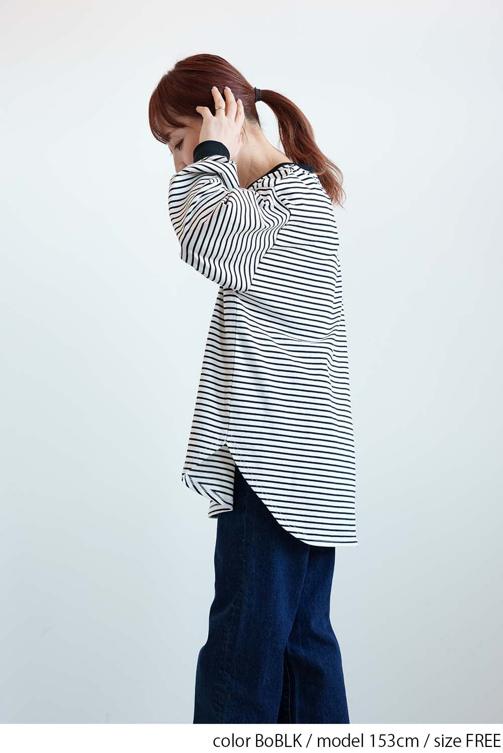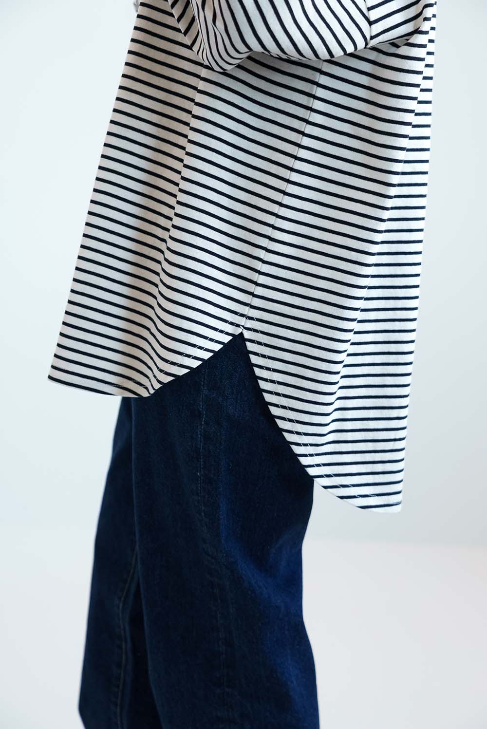 シンプルながらもさりげないこだわりが光り、裾ラウンドのチュニック丈が体のラインをやさしくカバーします。