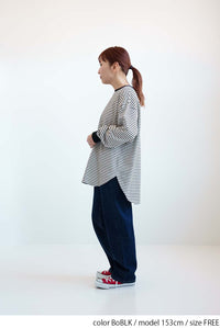 デニムやワイドパンツでカジュアルに、スカートと合わせれば程よくきれいめな印象に。