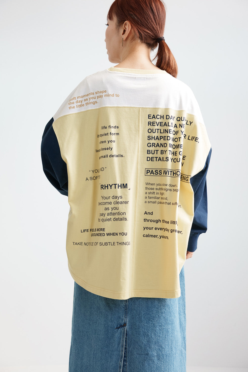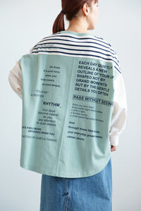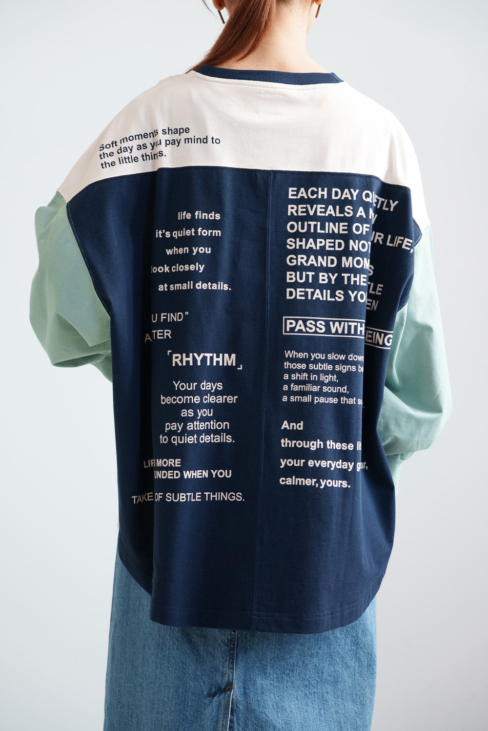 背中には切り替えデザインと、大きめのメッセージグラフィックを配置し、後ろ姿まで印象的な仕上がりに。