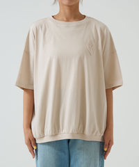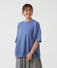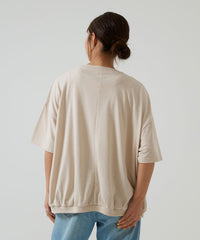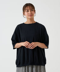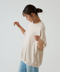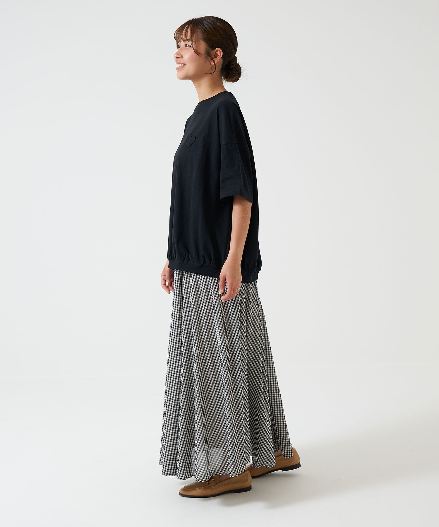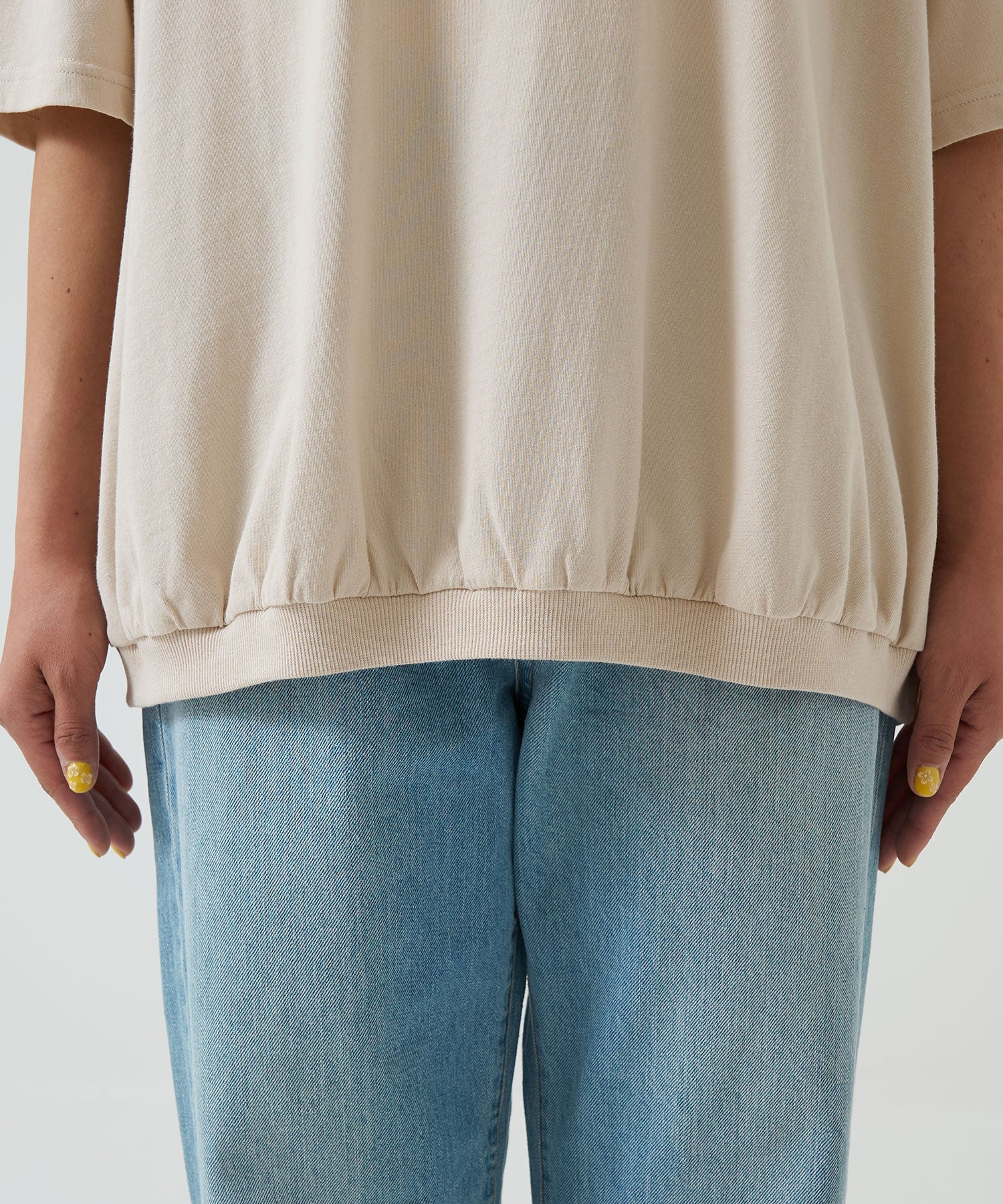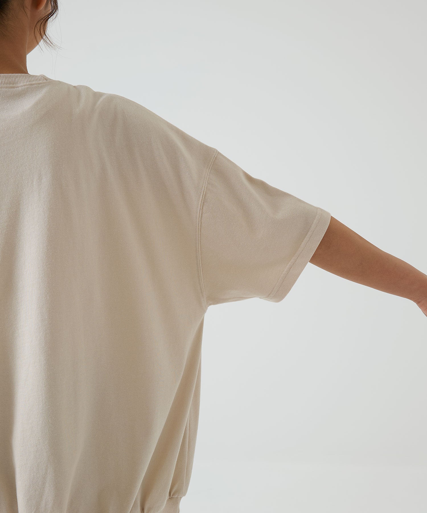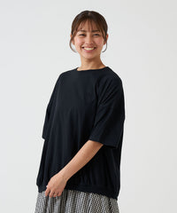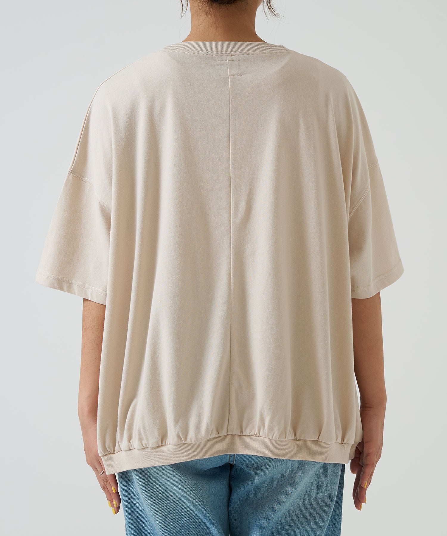 裾のギャザーがあることで、ボリュームのあるスカートに合わせても上半身がまとまりやすくなっています。