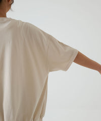 裾に入れたギャザーが、シンプルな中にほどよく動きをつけてくれます。