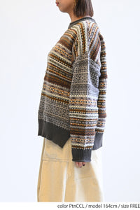 存在感のあるデザインながら、どのカラーも落ち着いたトーンで着こなしやすく、冬の主役ニットとして活躍します。