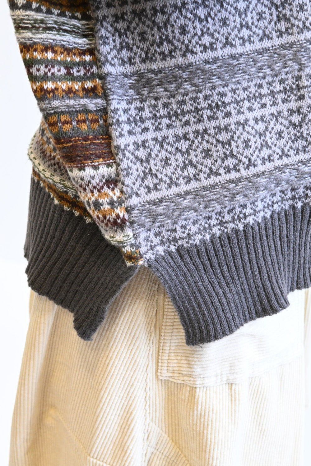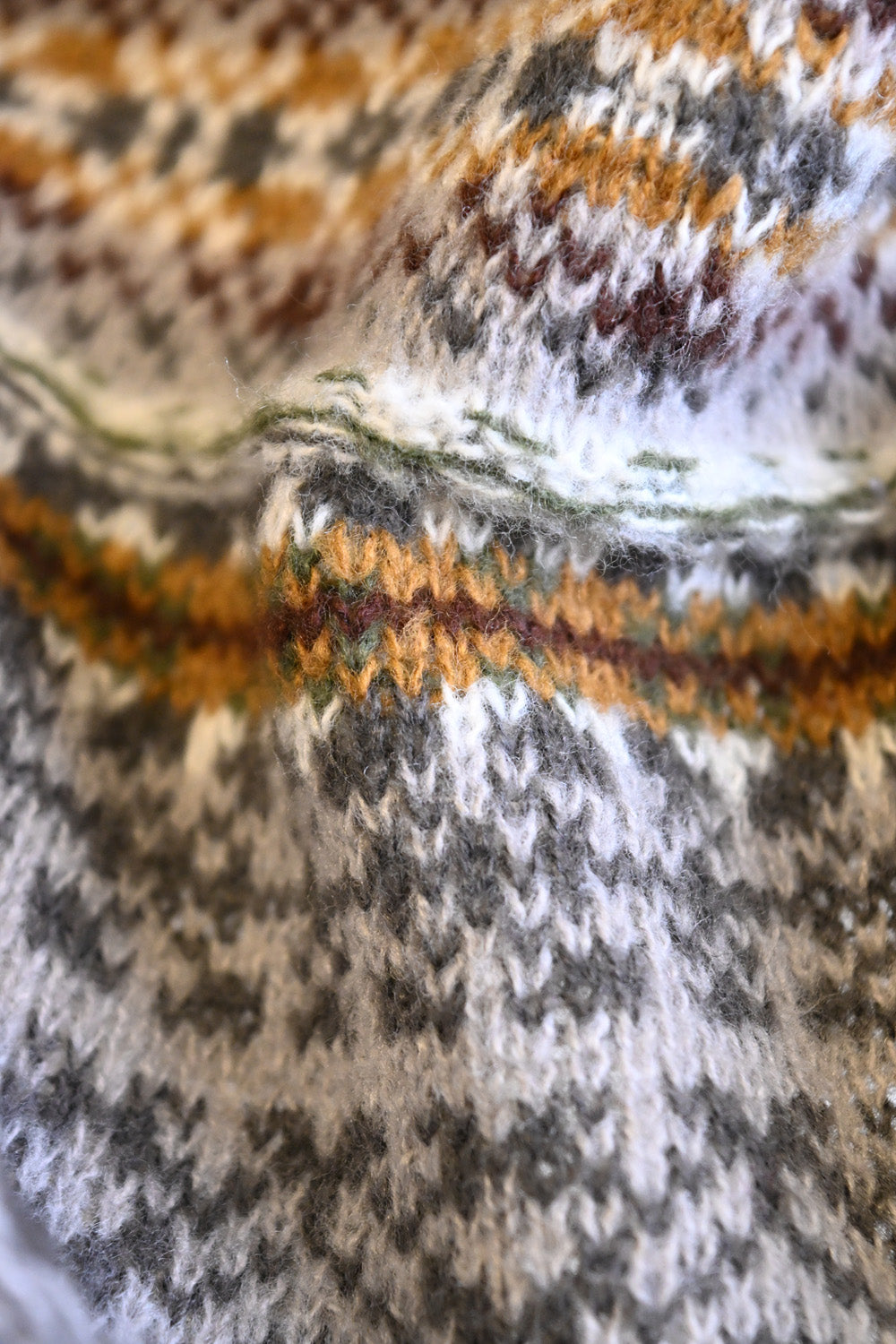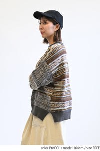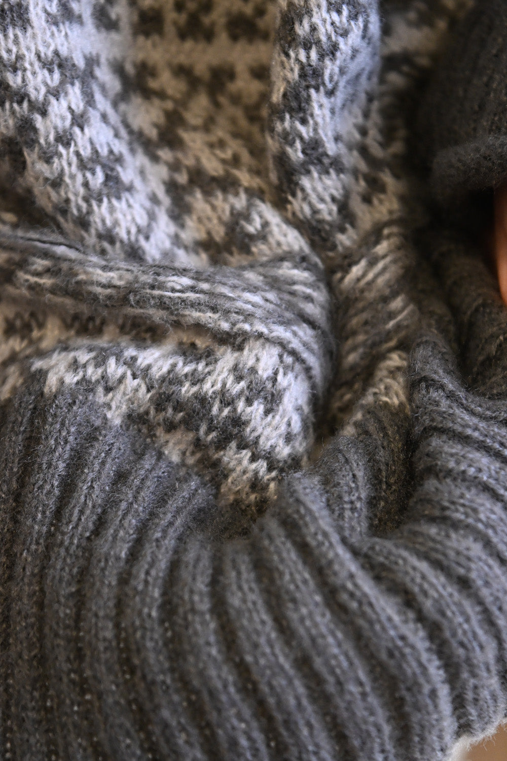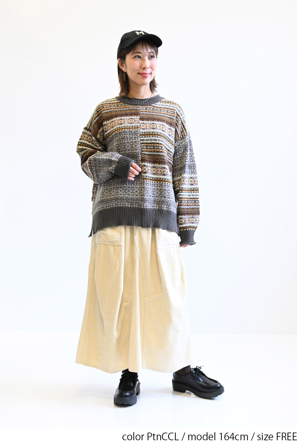 幾何学模様を組み合わせたノルディック柄に、編地の切り替えをプラスして、表情豊かに仕上げました。